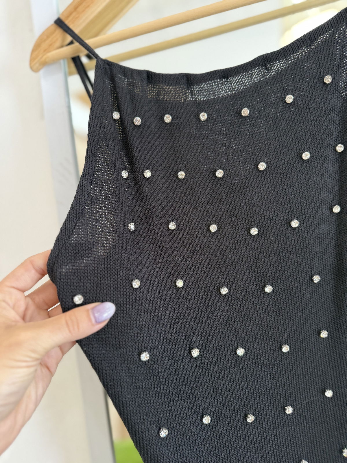 Musculosa tejida importada, espalda descubierta con tiras regulables, y apliques en el frente quela hacen única y delicadísima!}
