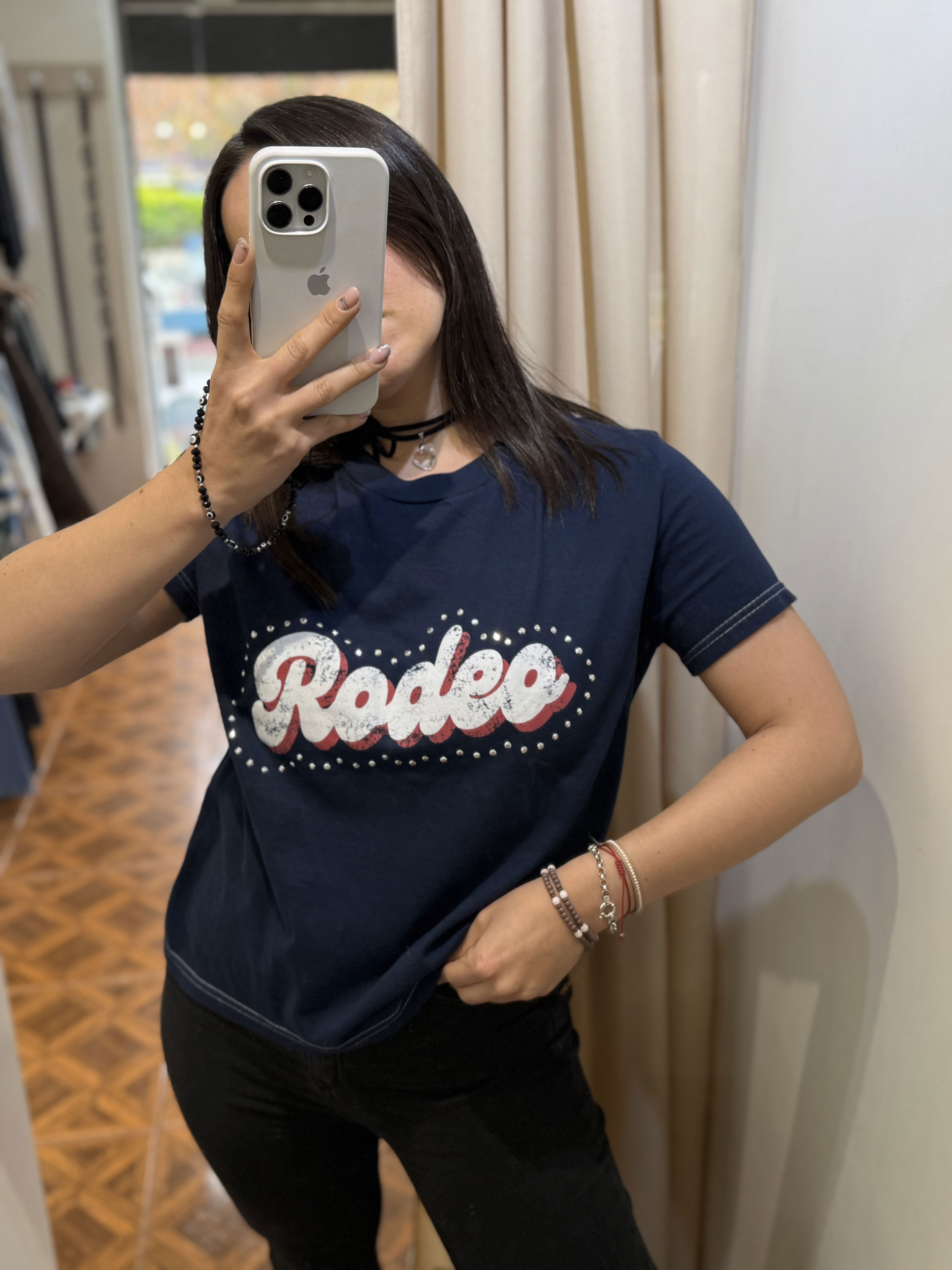 Remera Manga corta, algodón con estampa en el frente y strass.