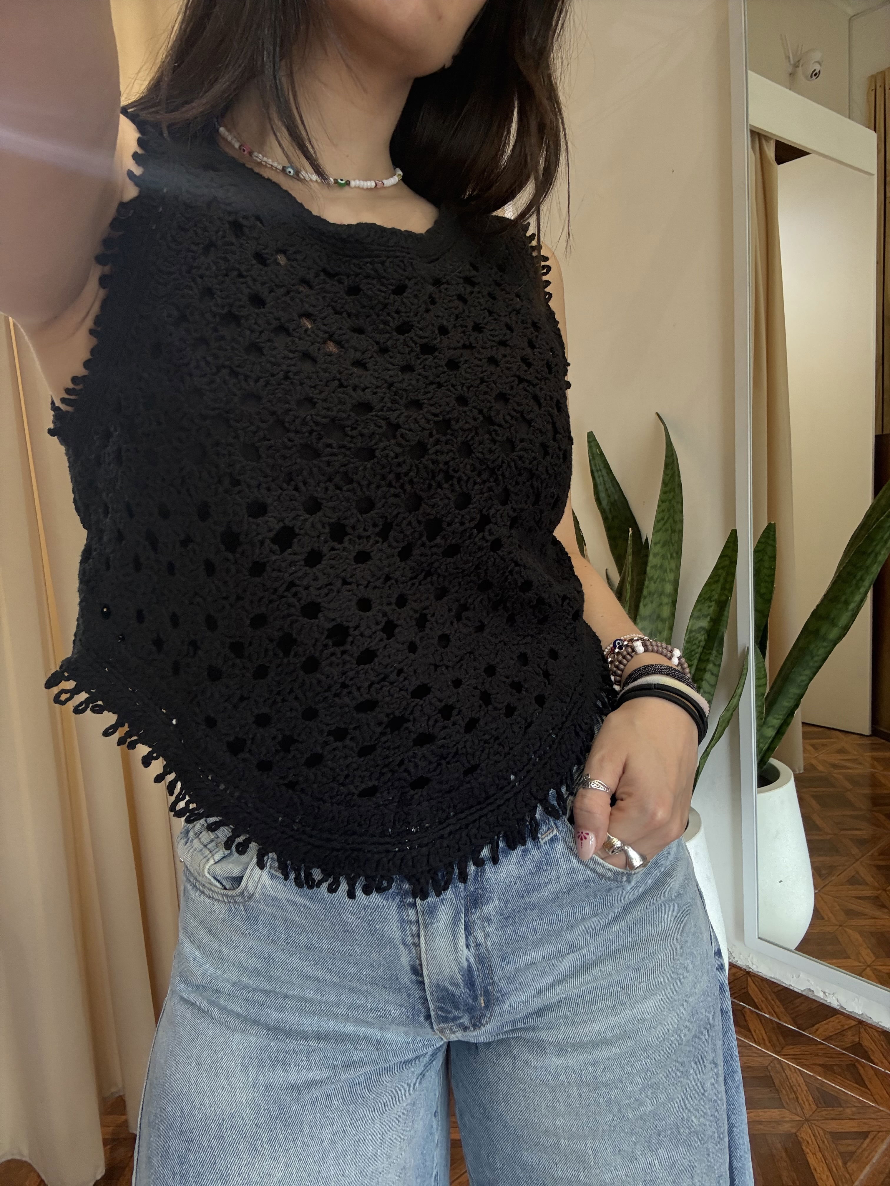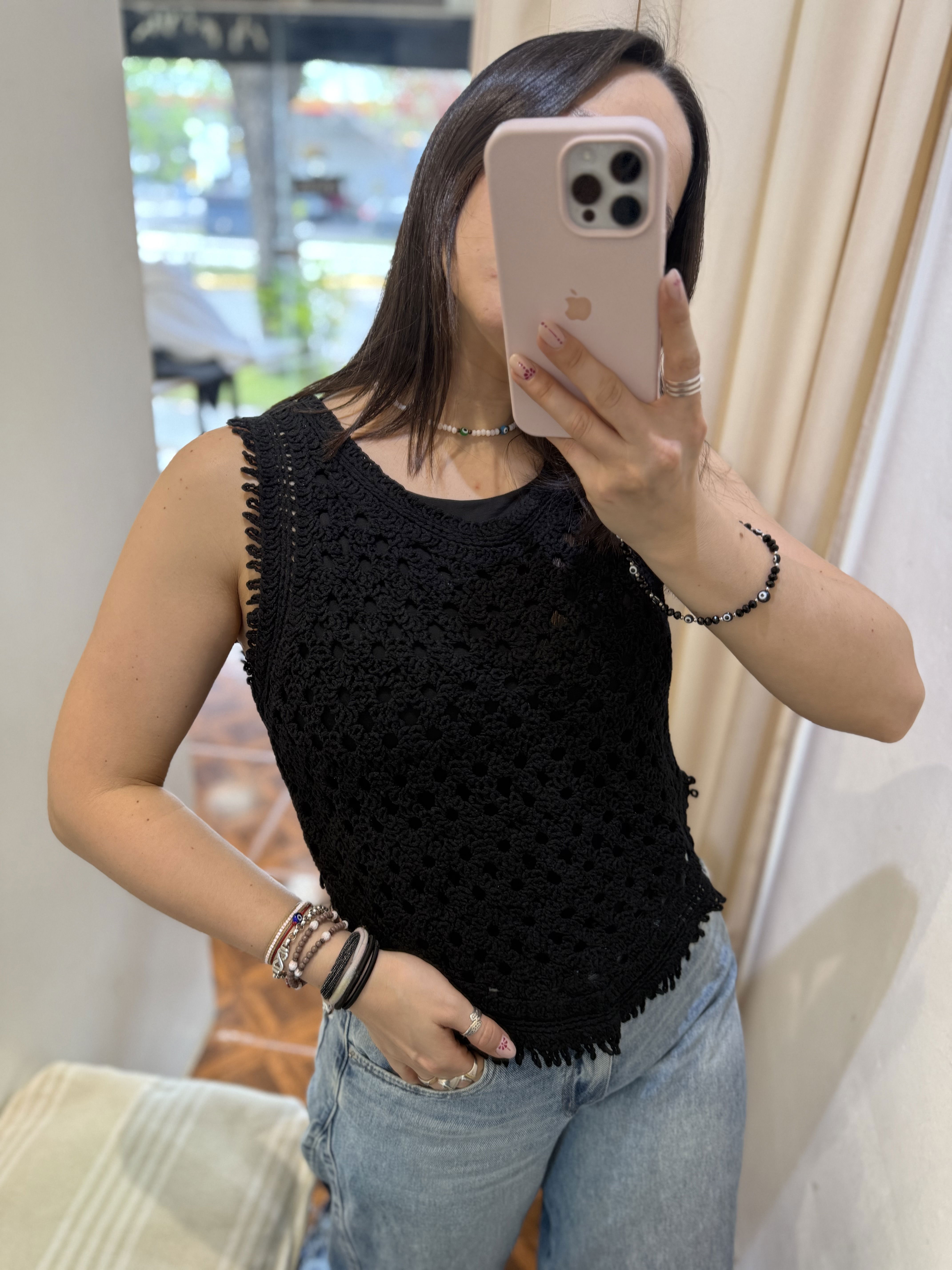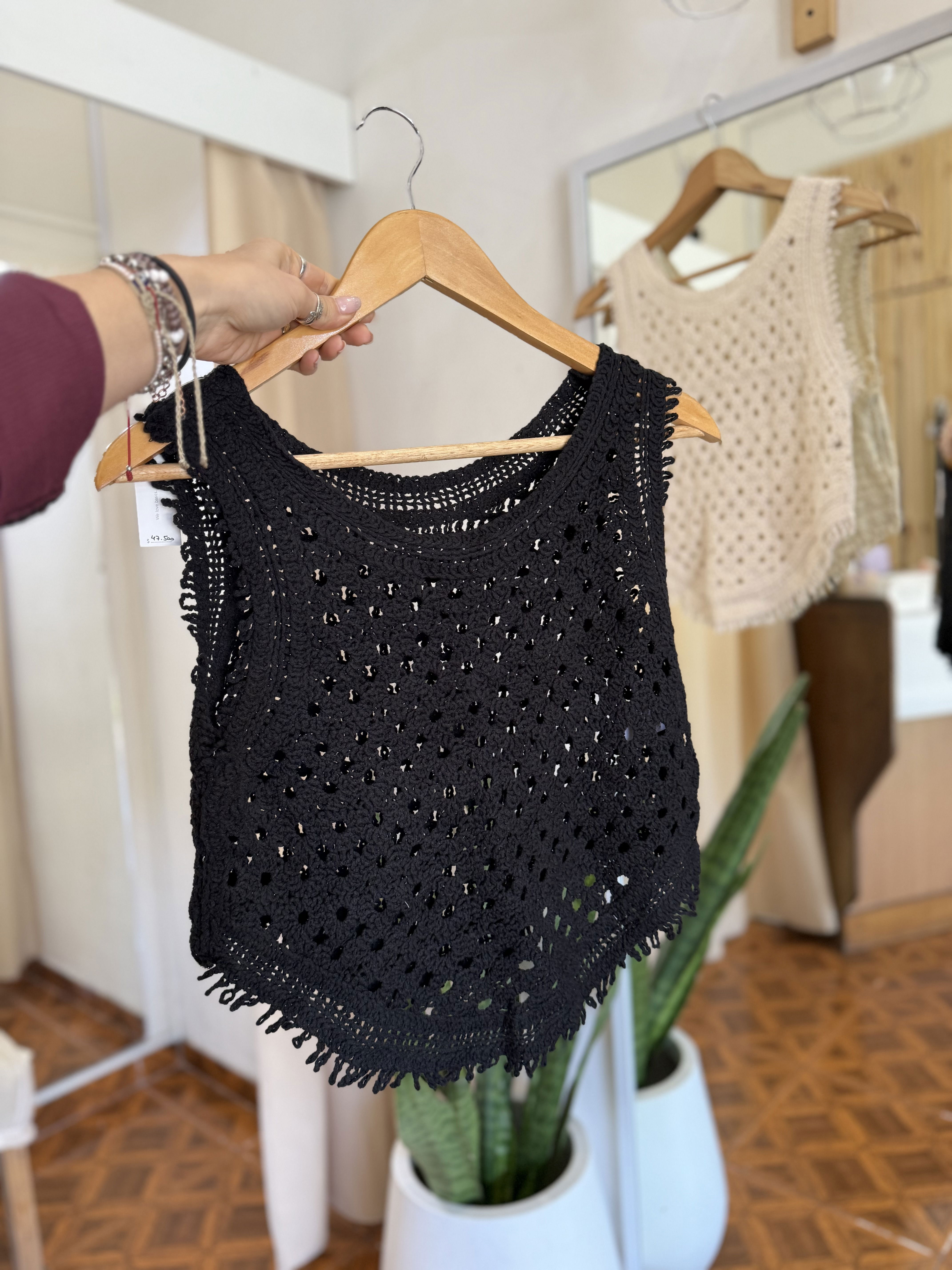 Hermosa remerita tejida, con detalle de terminación en pico.