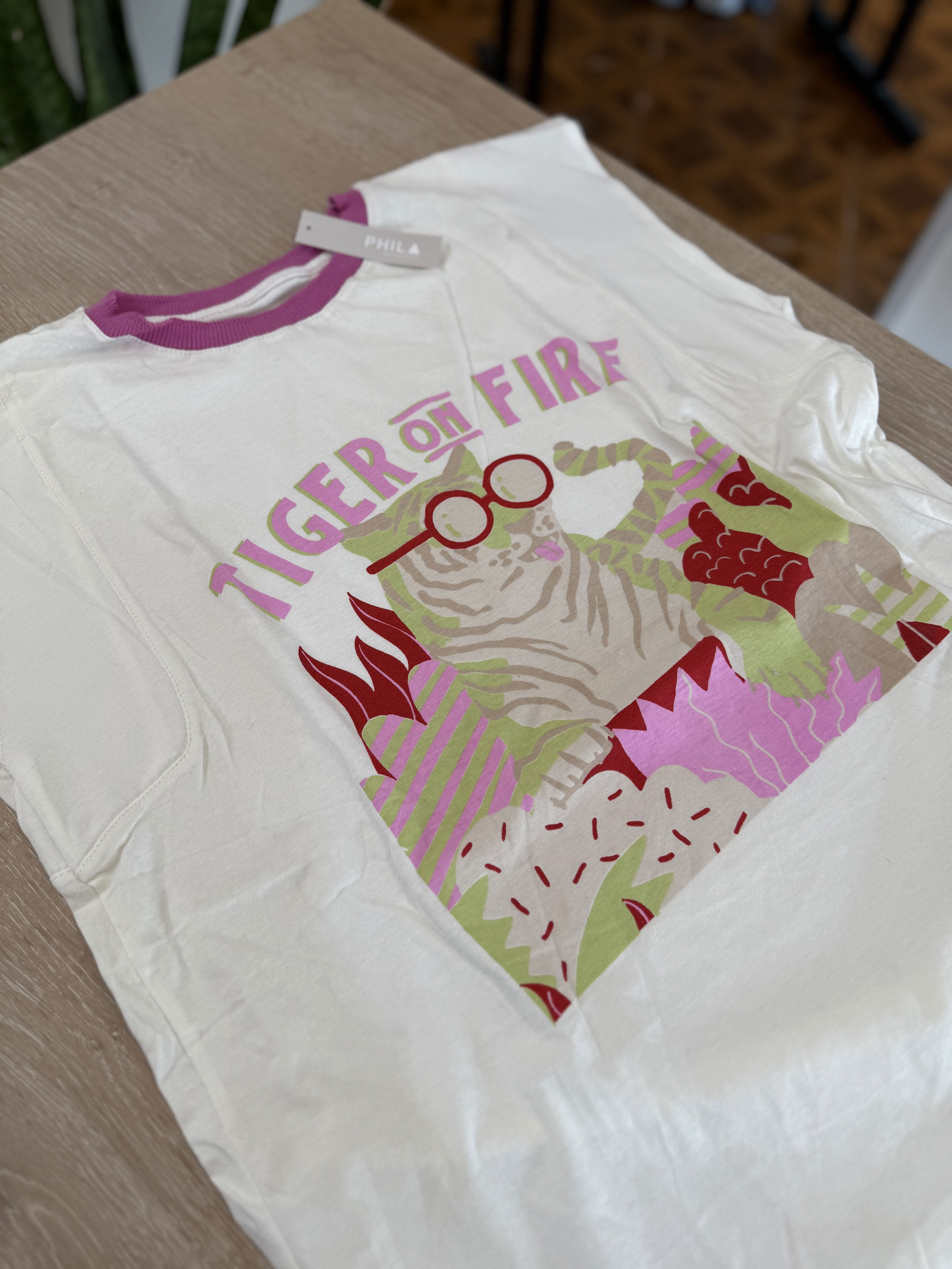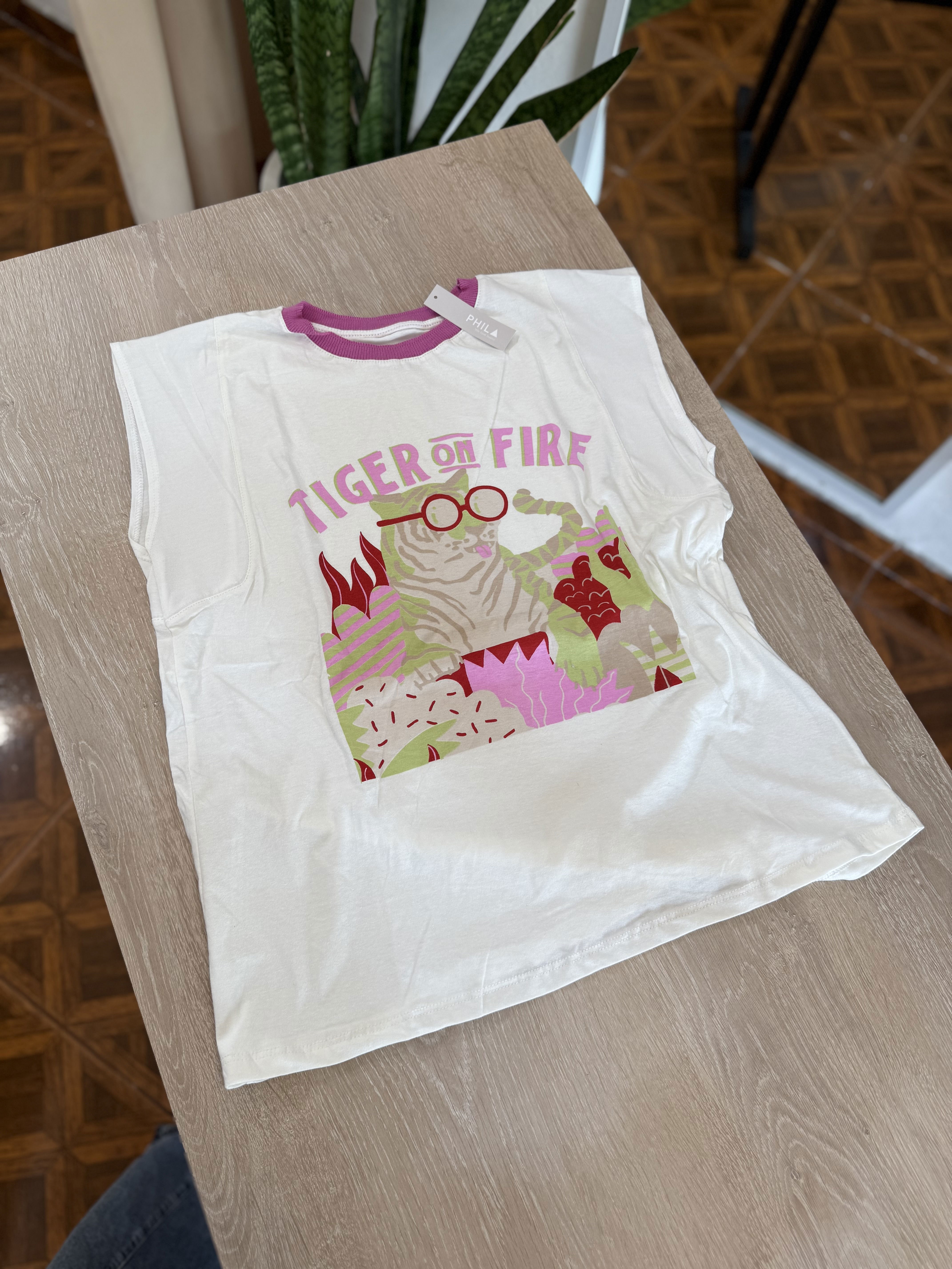 Musculosa de algodón con estampa, full color hermosa! Cuellito en combinación.