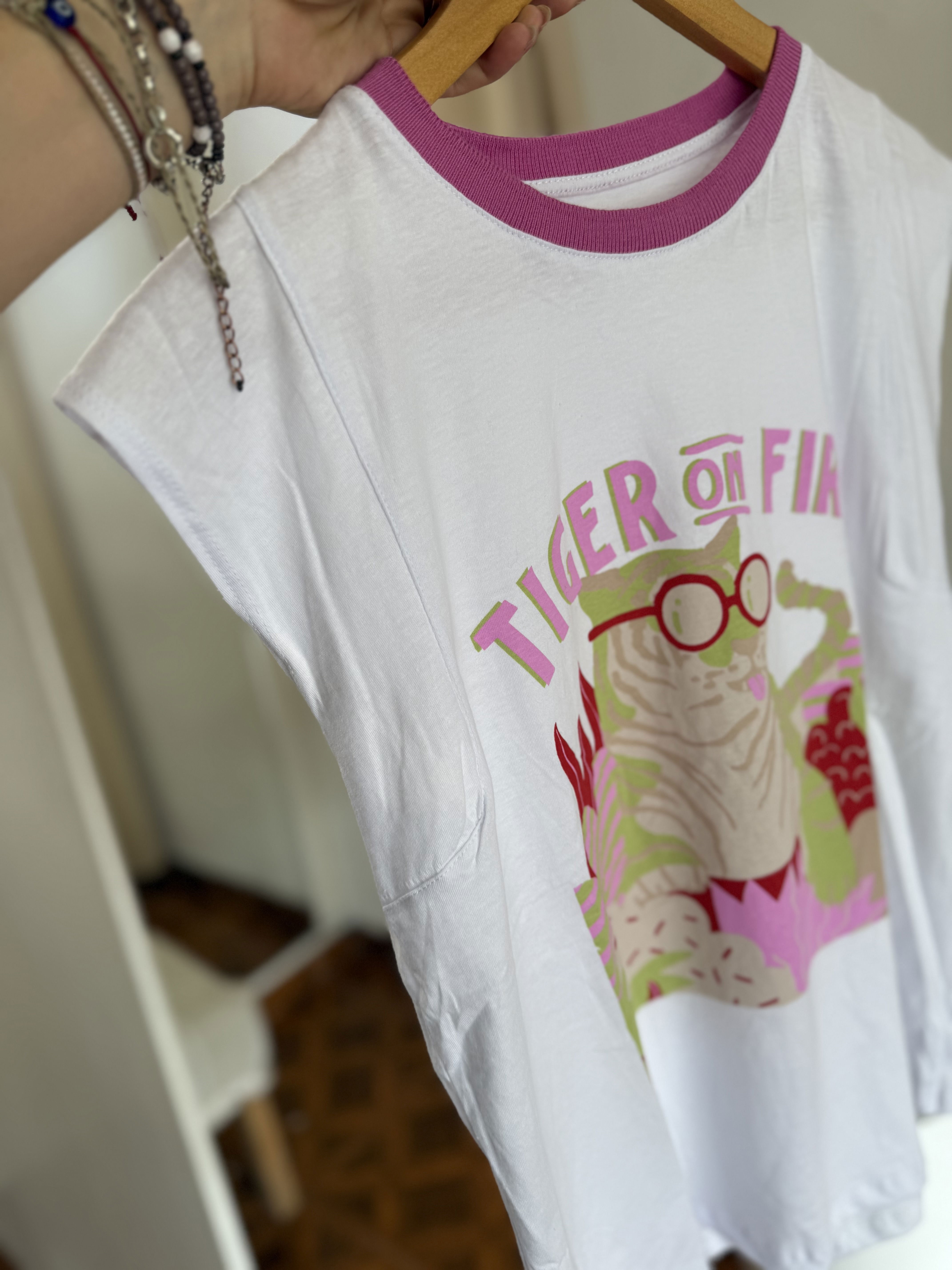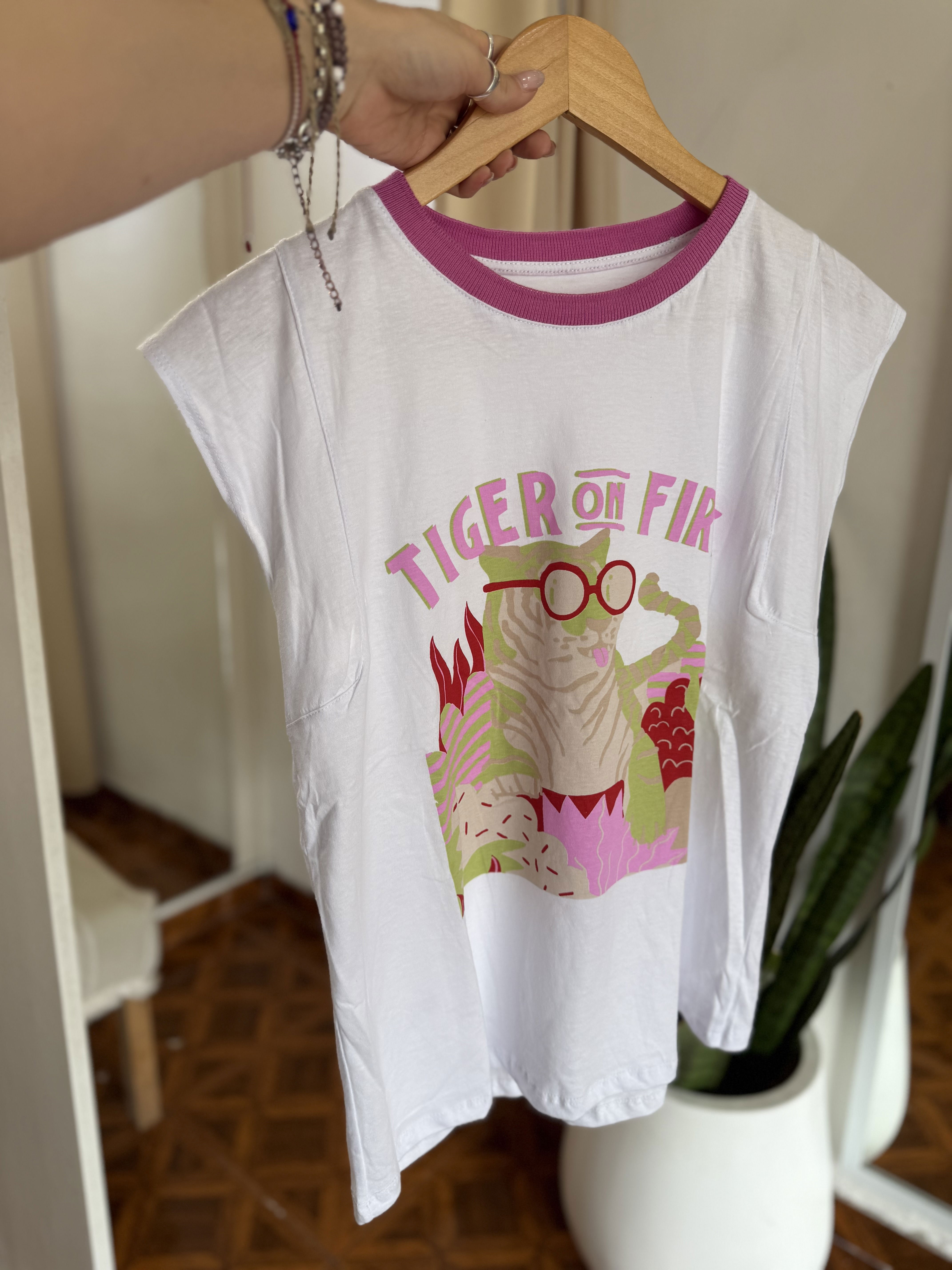 Musculosa de algodón con estampa, full color hermosa! Cuellito en combinación.