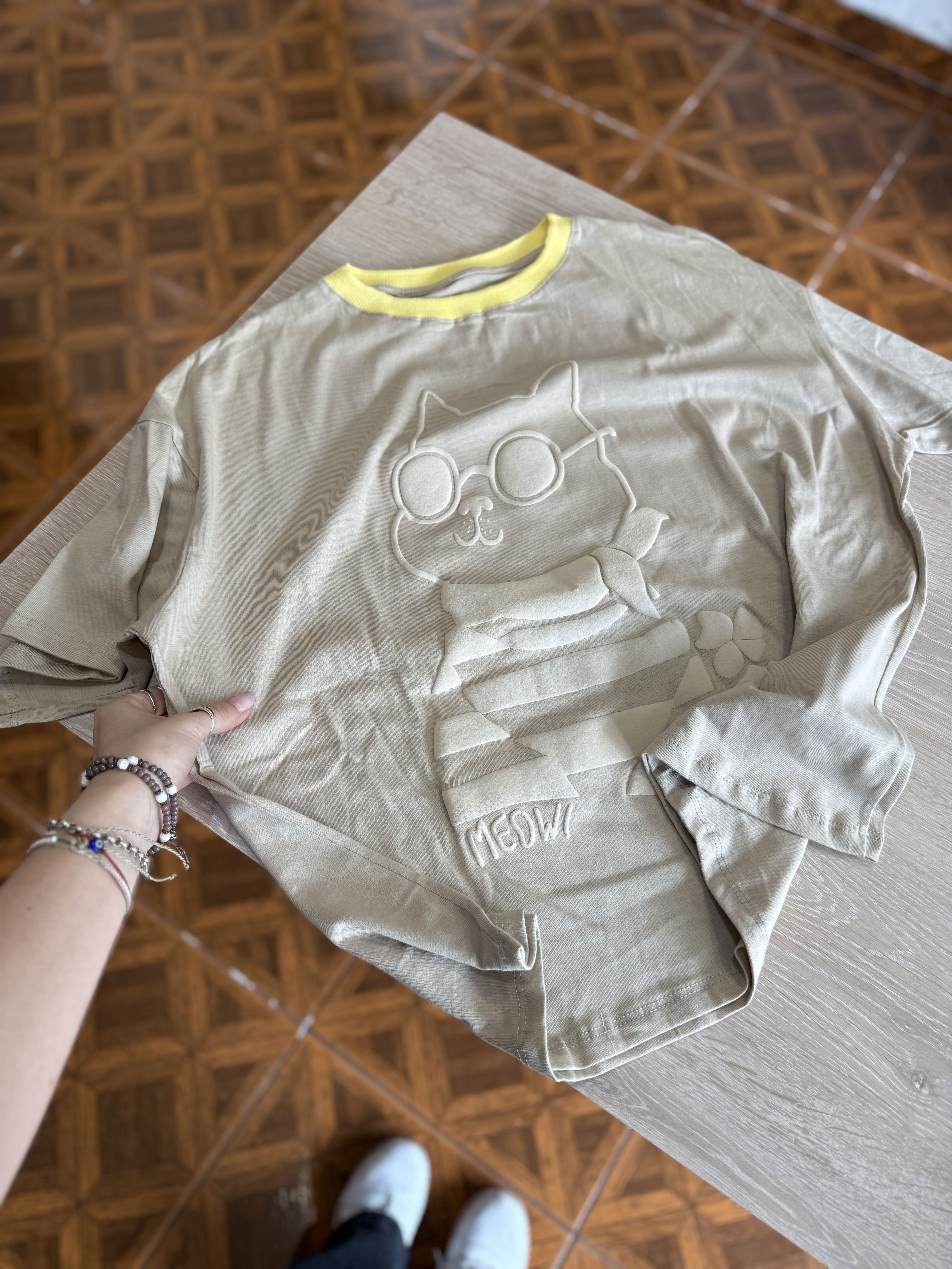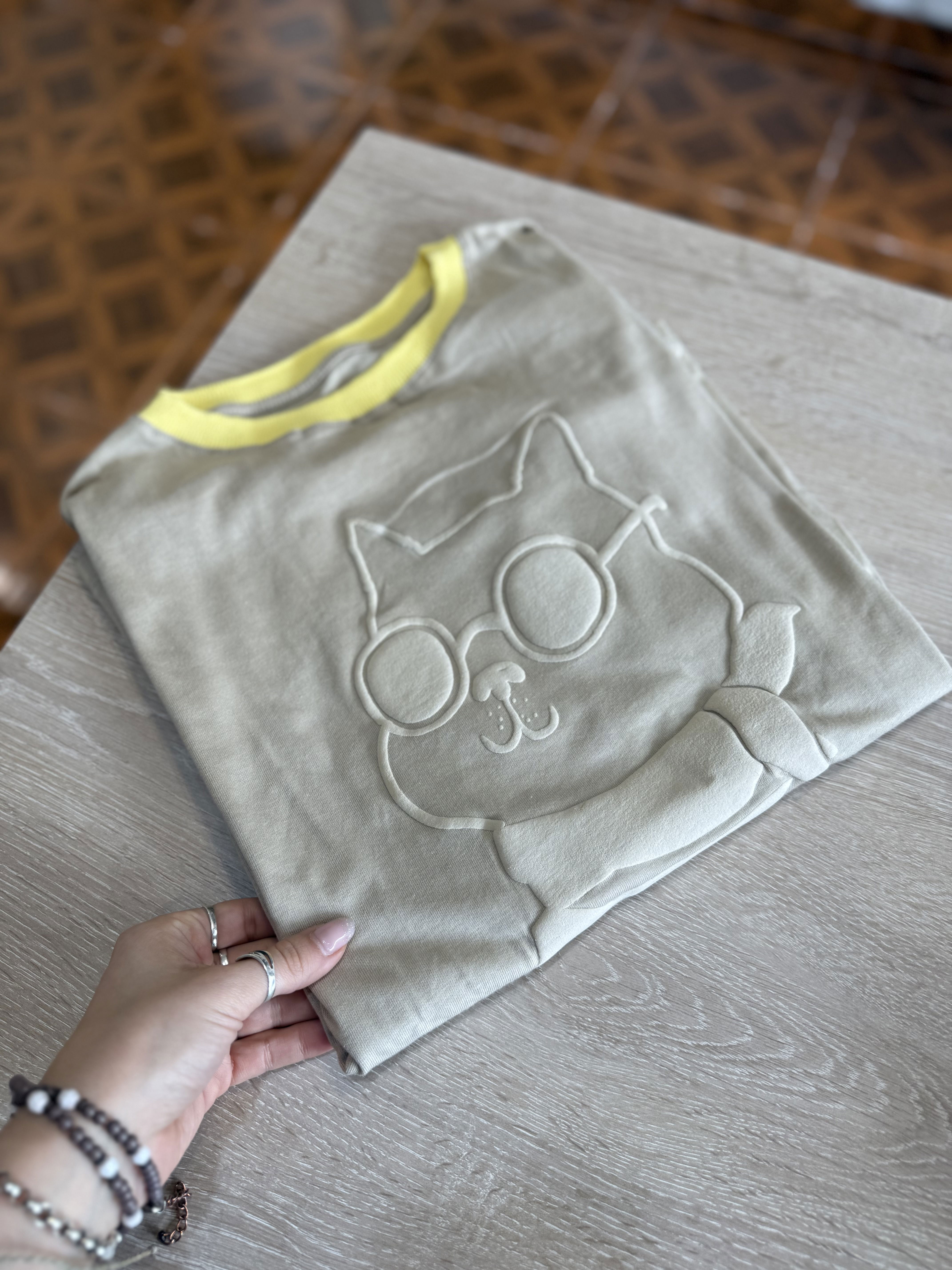 Remera de algodón con estampa EN RELIEVE y cuello combinado, divinas !