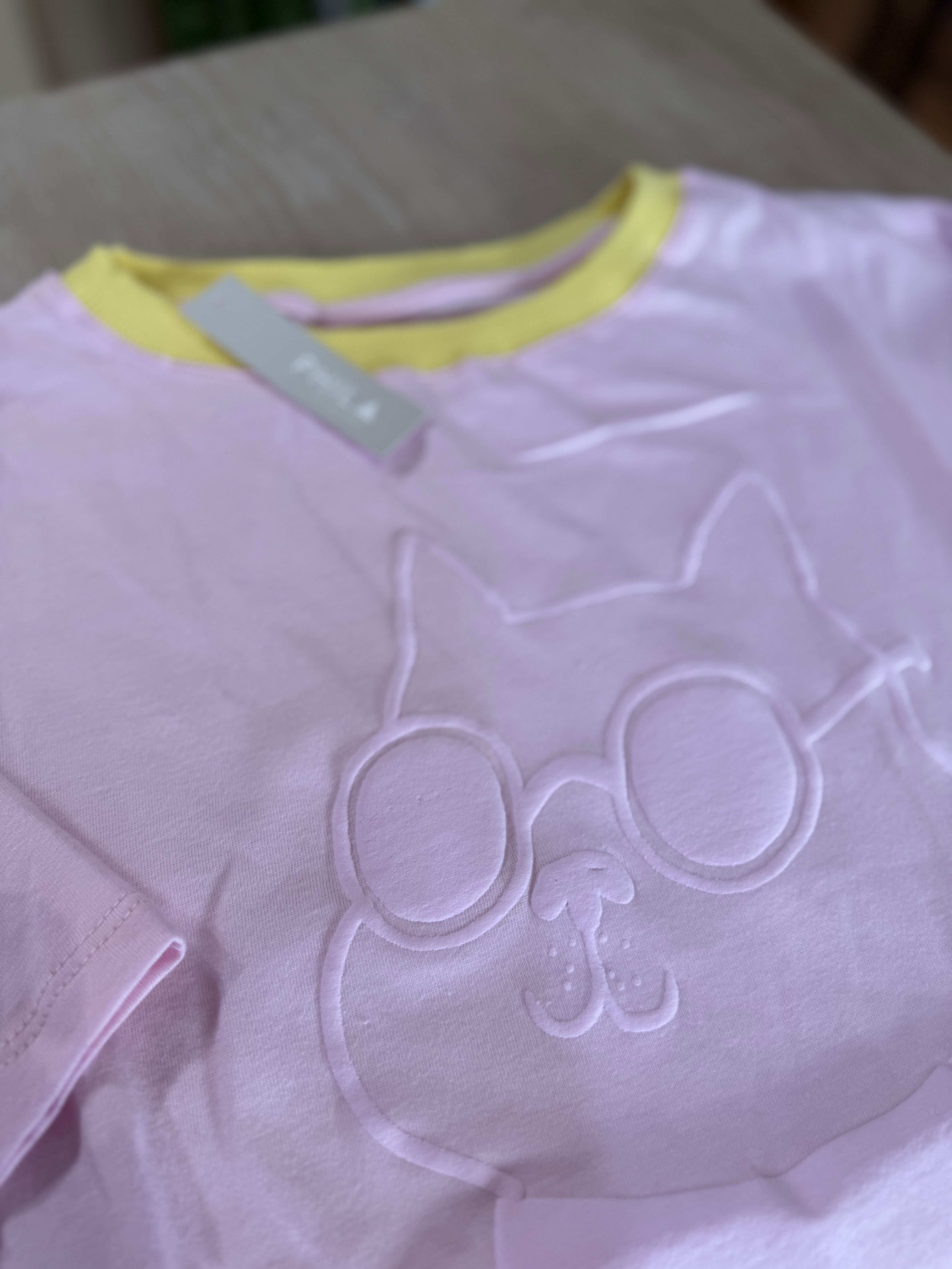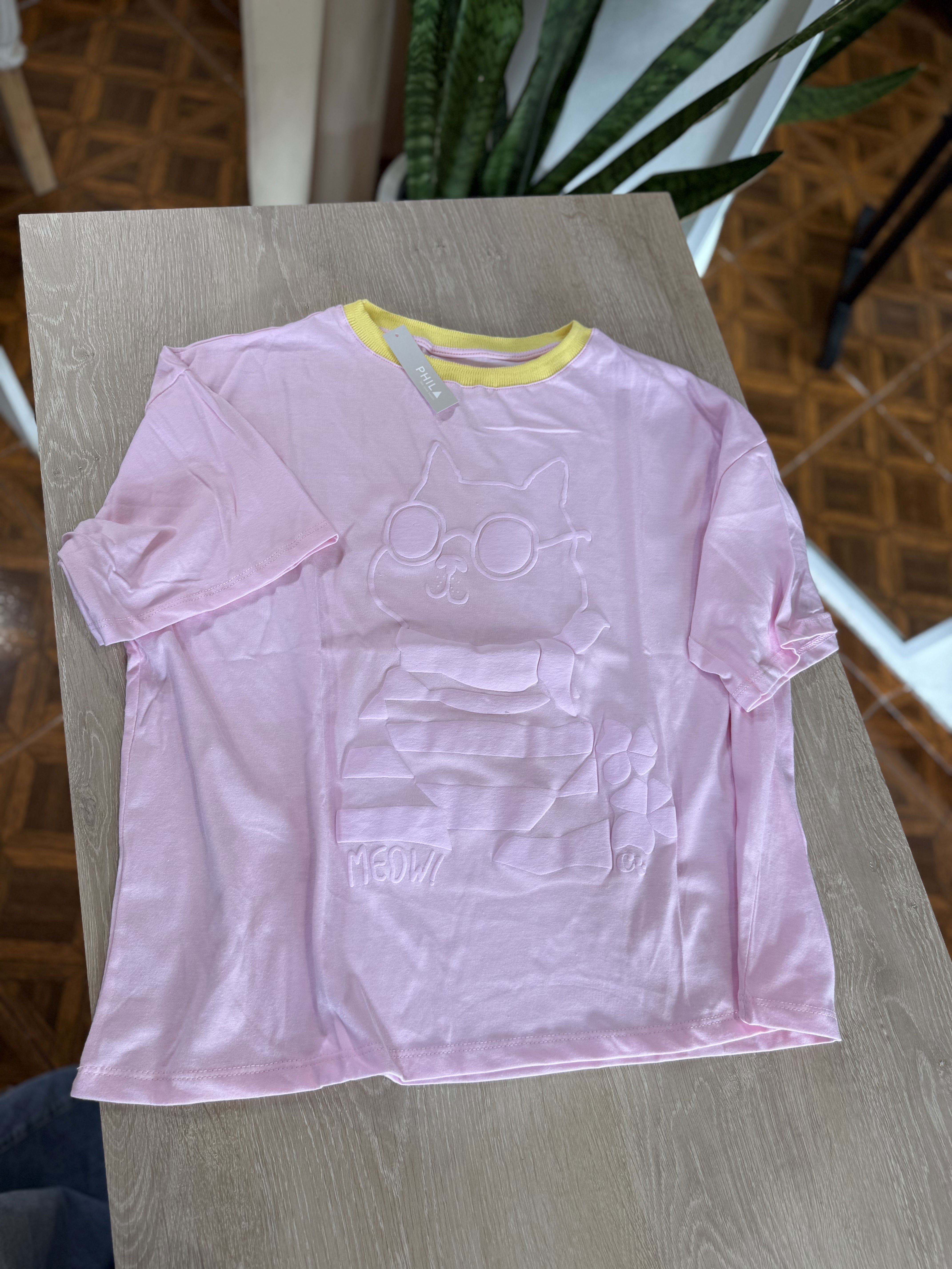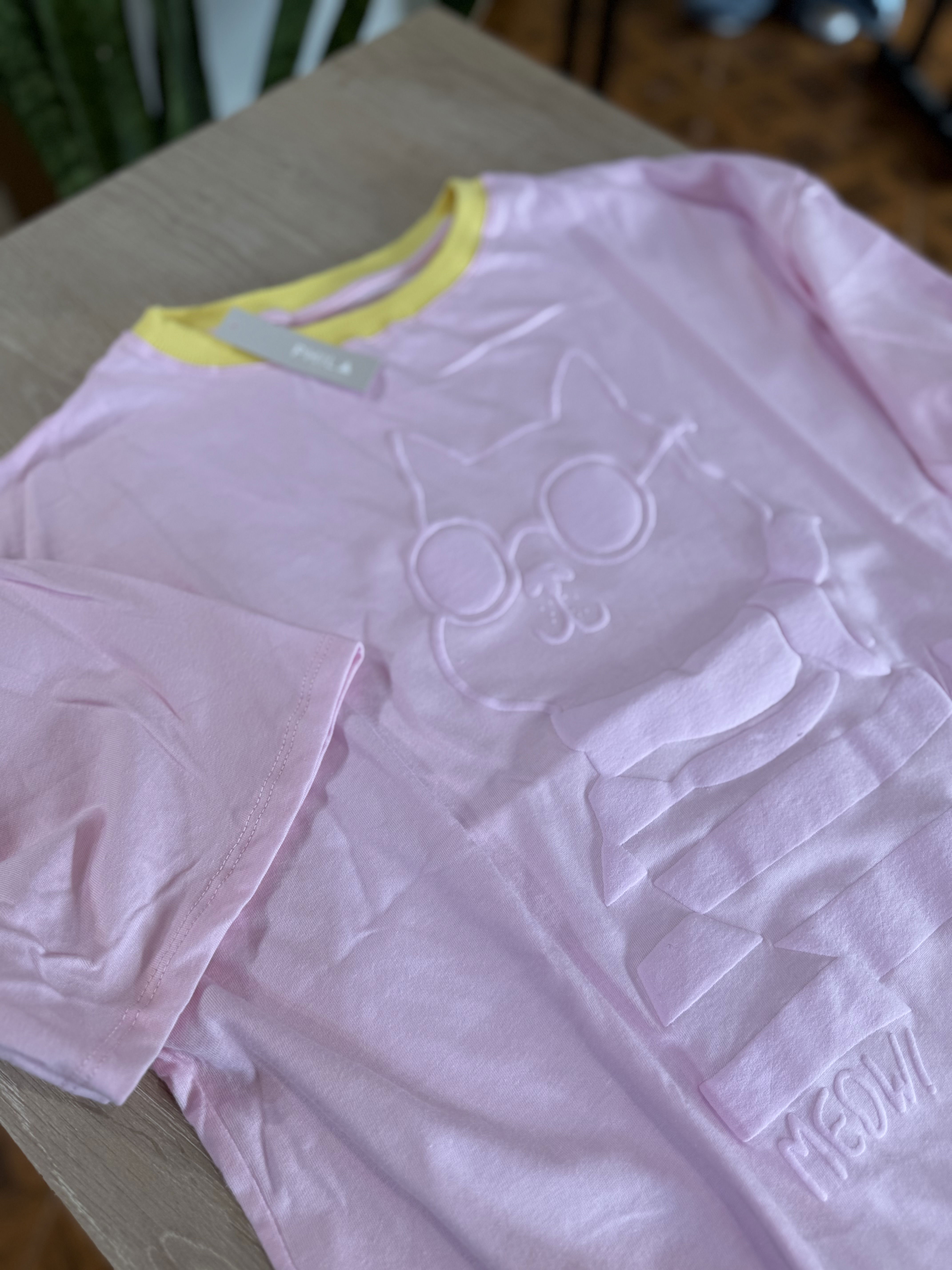 Remera de algodón con estampa EN RELIEVE y cuello combinado, divinas !