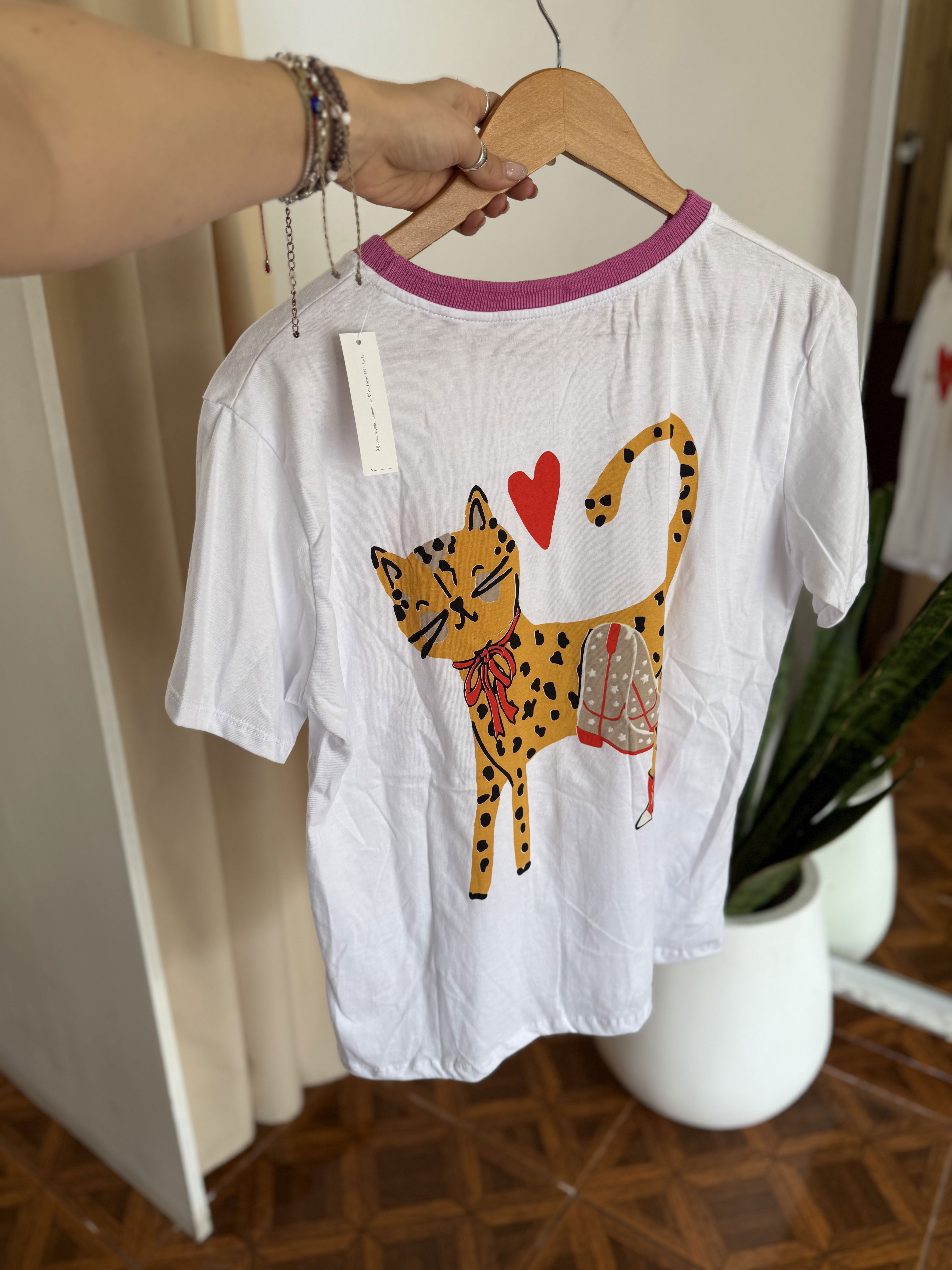 Remera de algodón con pequeña estampa al frente, y full estampa en espalda, cuello combinado, divinas !