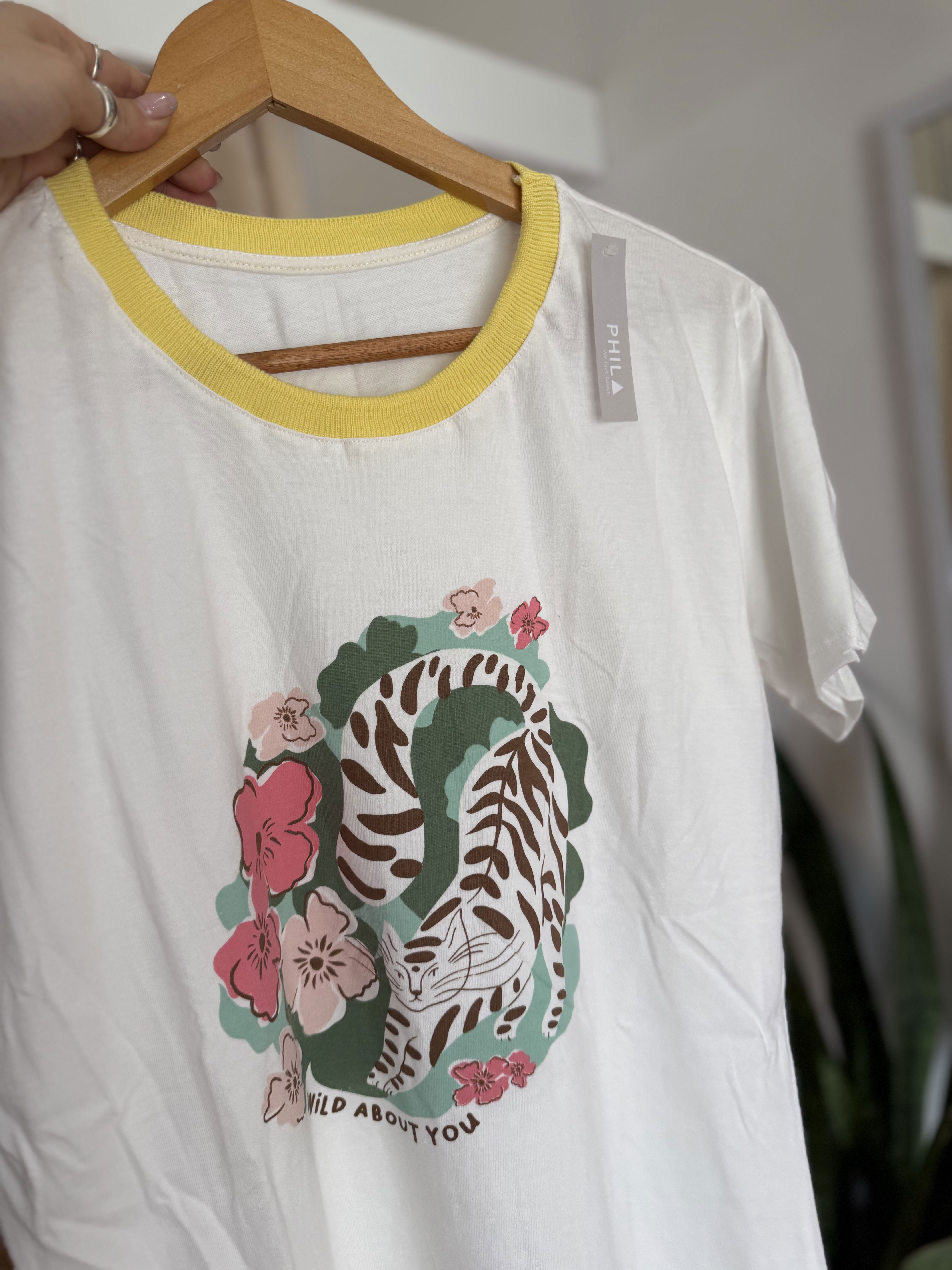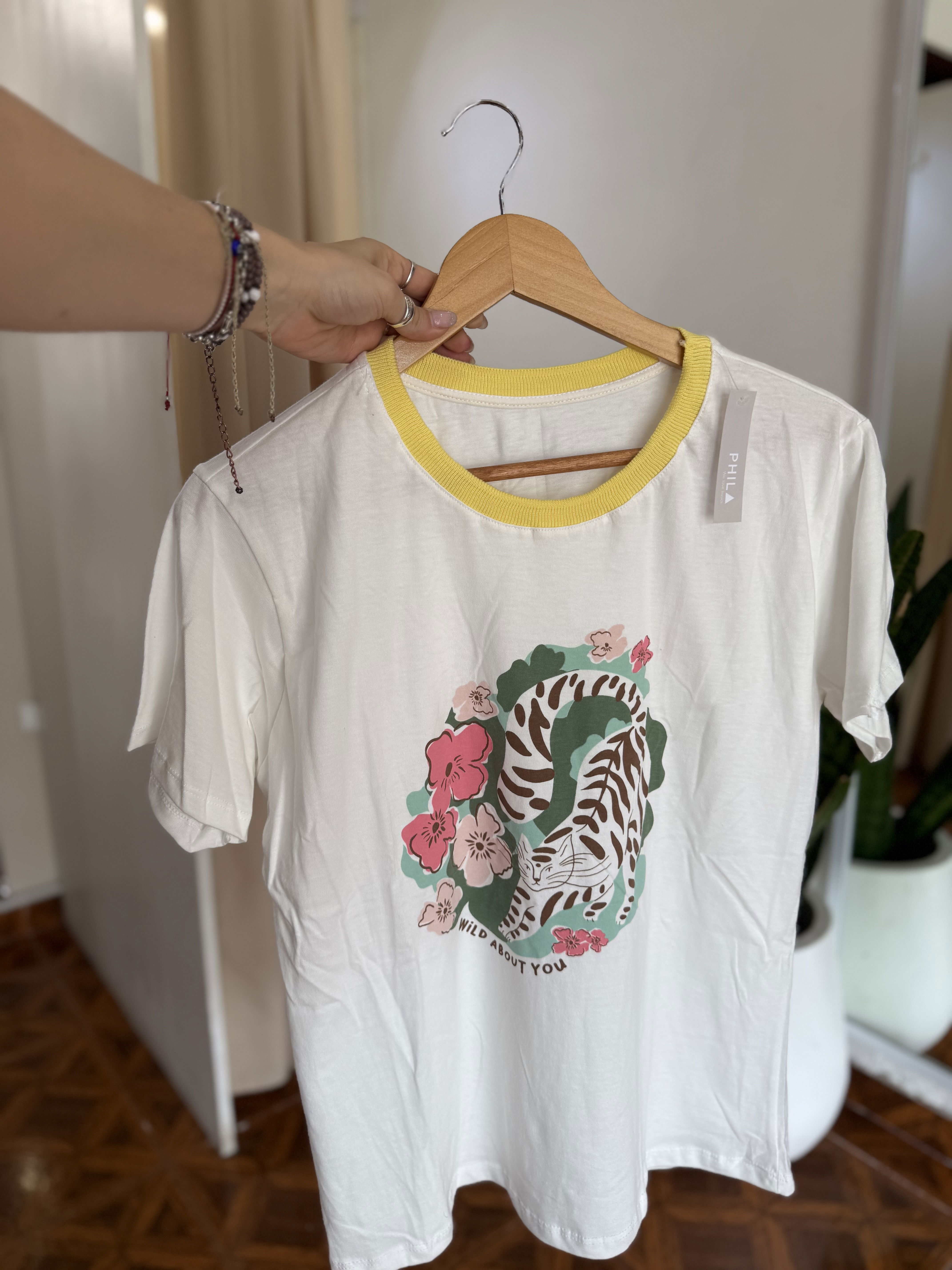 Remera de algodónestampa al frente, cuello combinado, divinas !