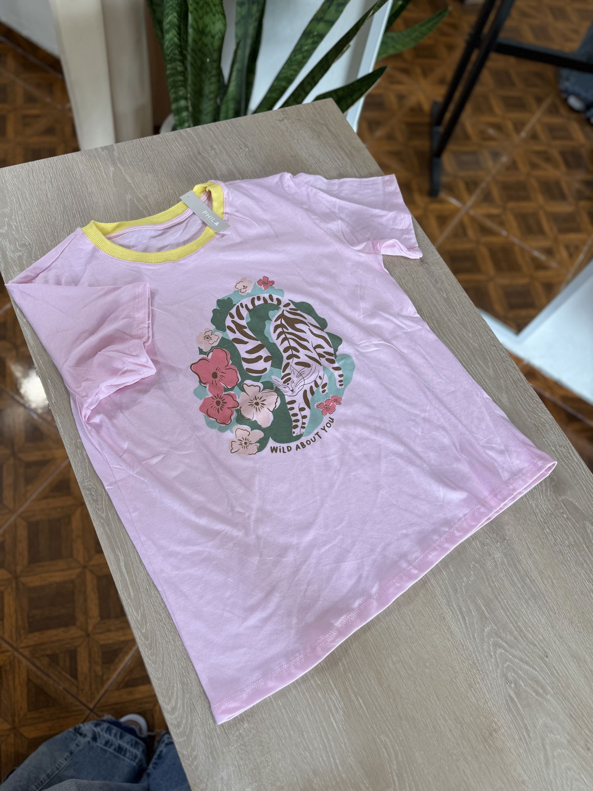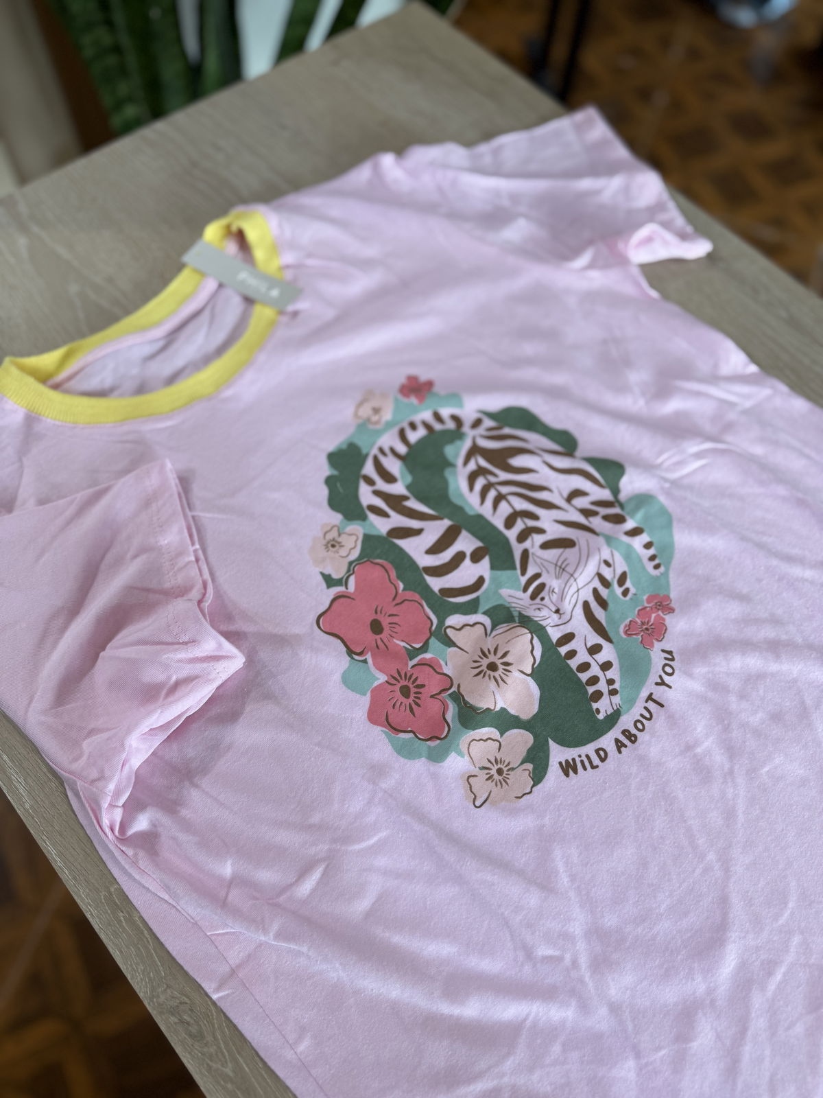 Remera de algodón estampa al frente, cuello combinado, divinas !