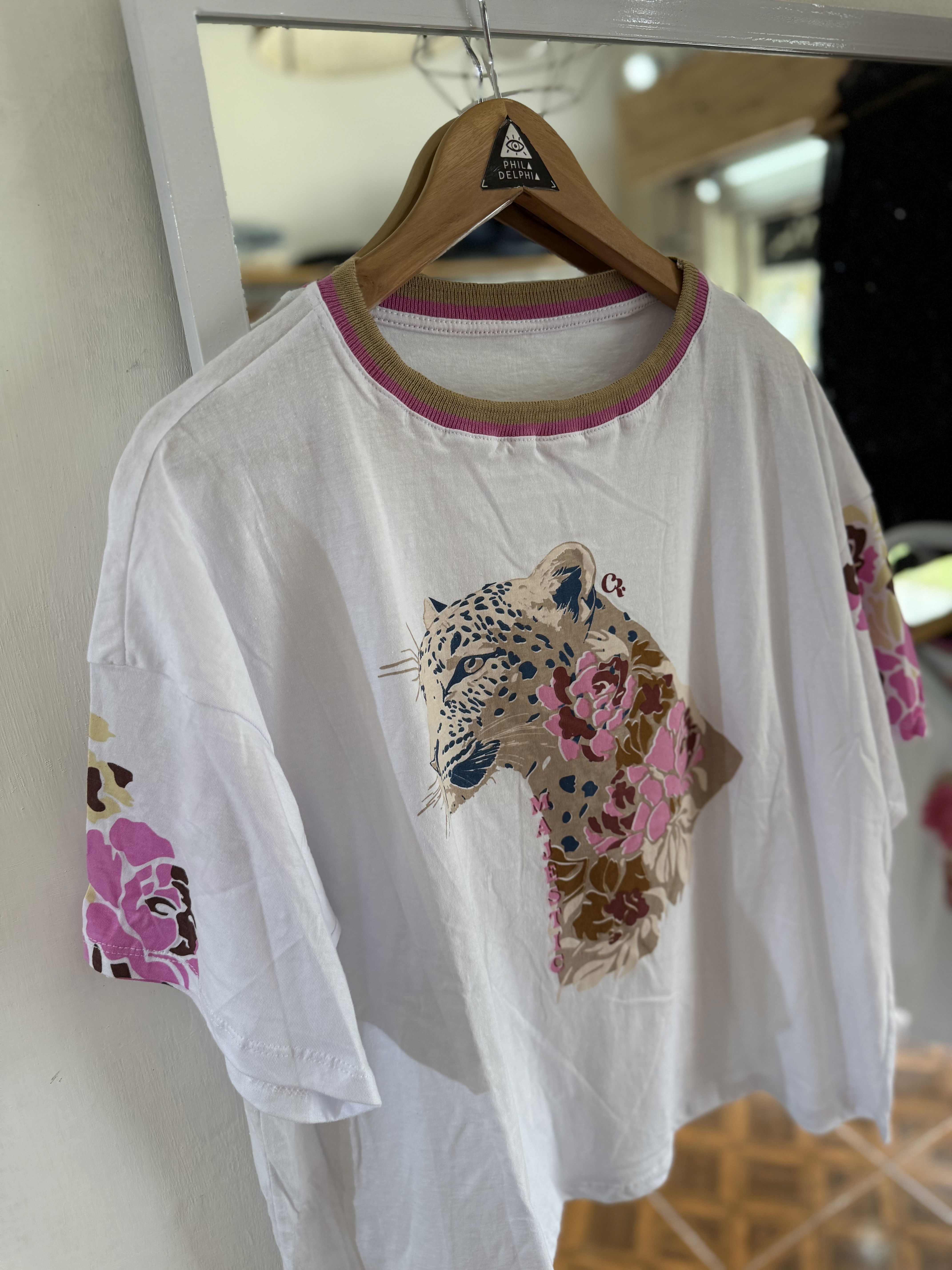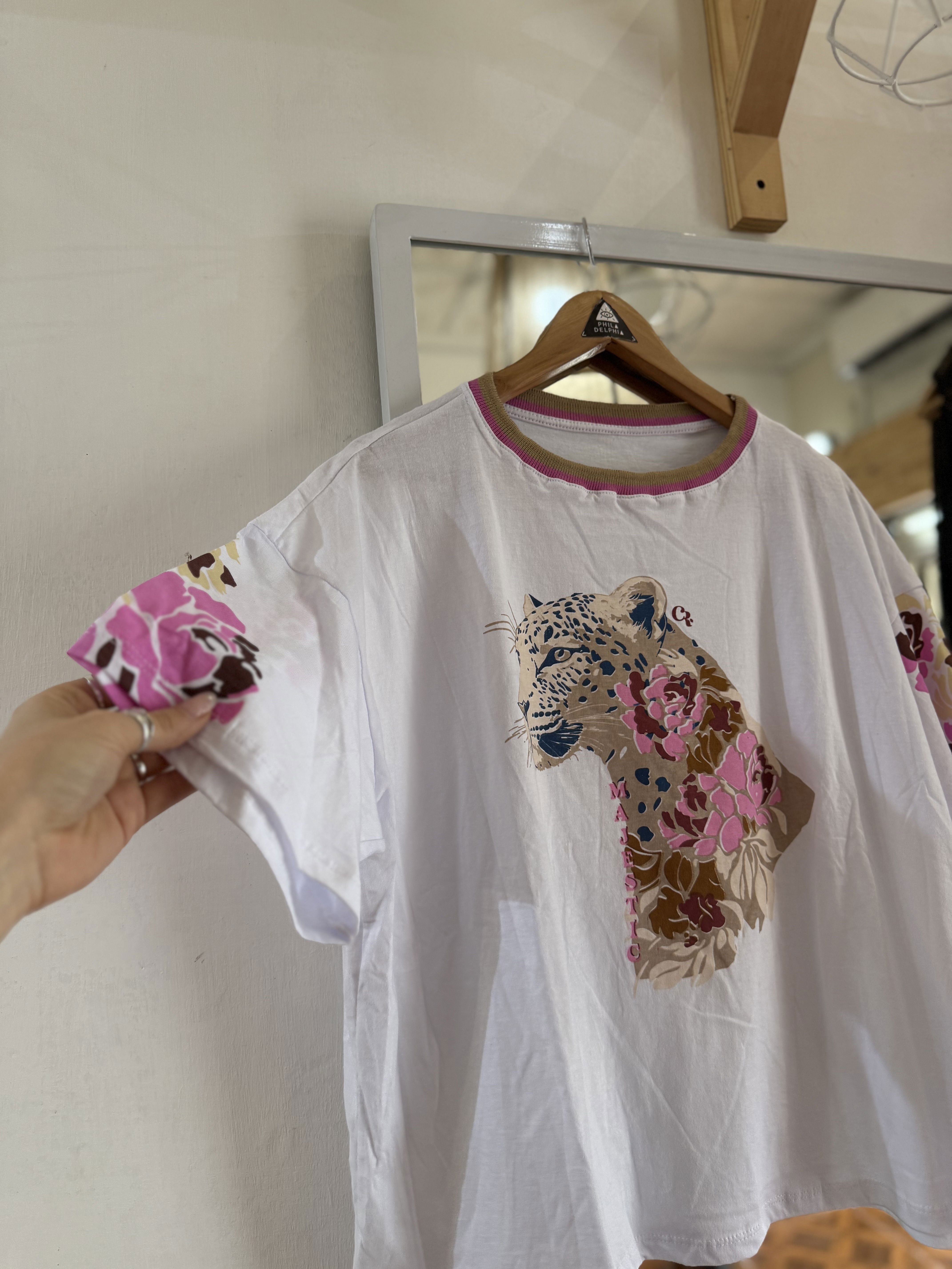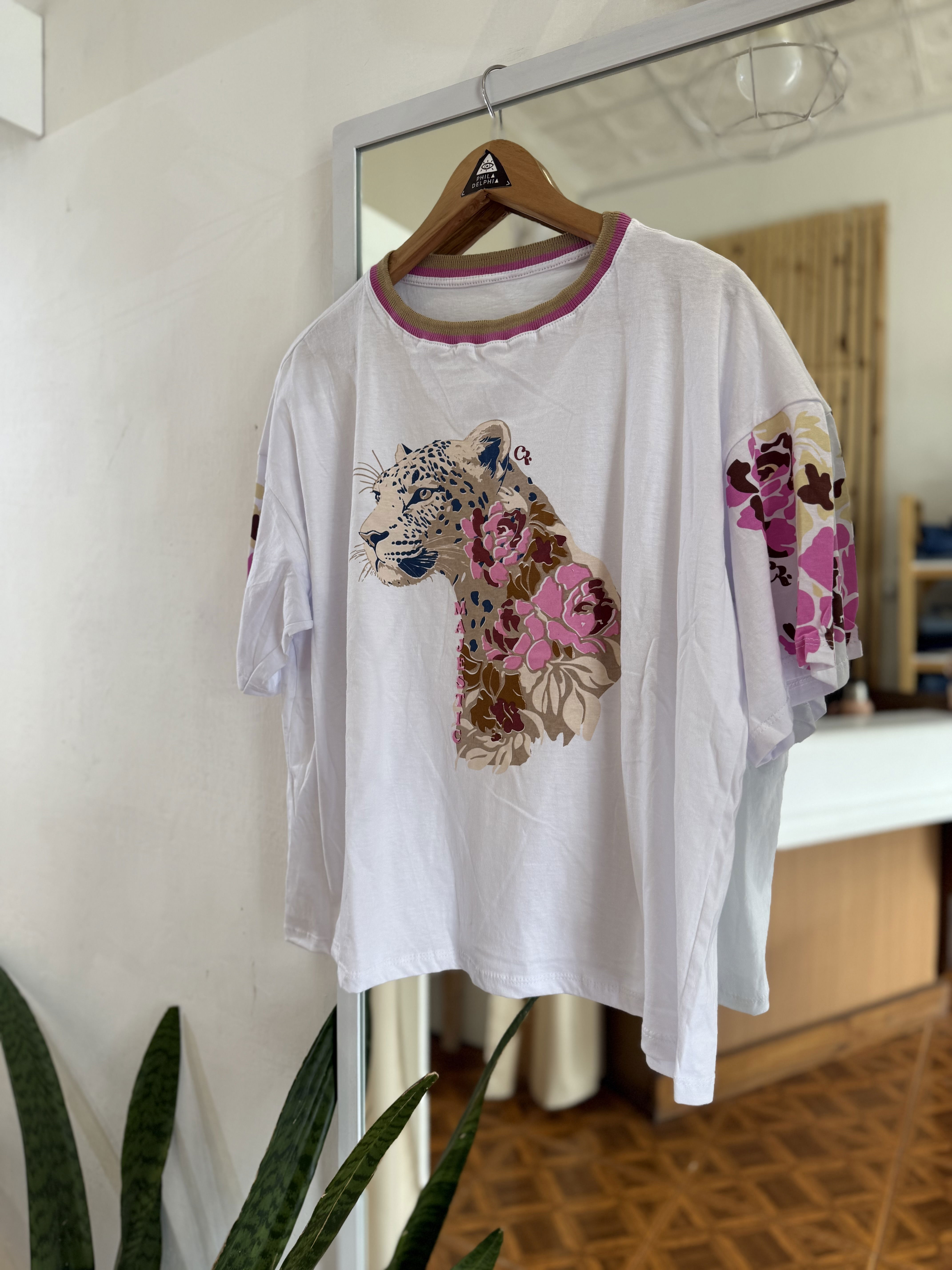Remera de algodón estampa al frente, cuello combinado, divinas !