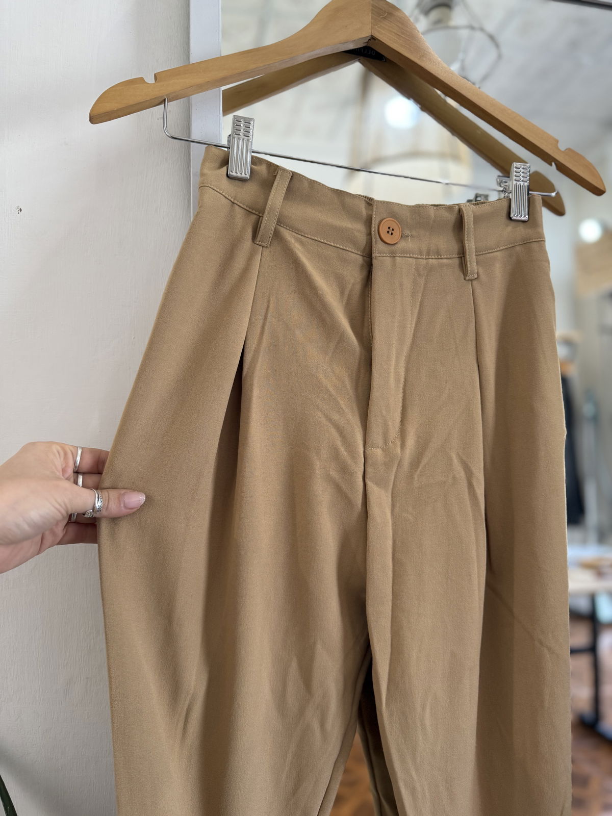 Pant sastrero corte clásico, elastizado. Tiene pinzas y elástico en la parte trasera de la cintura.