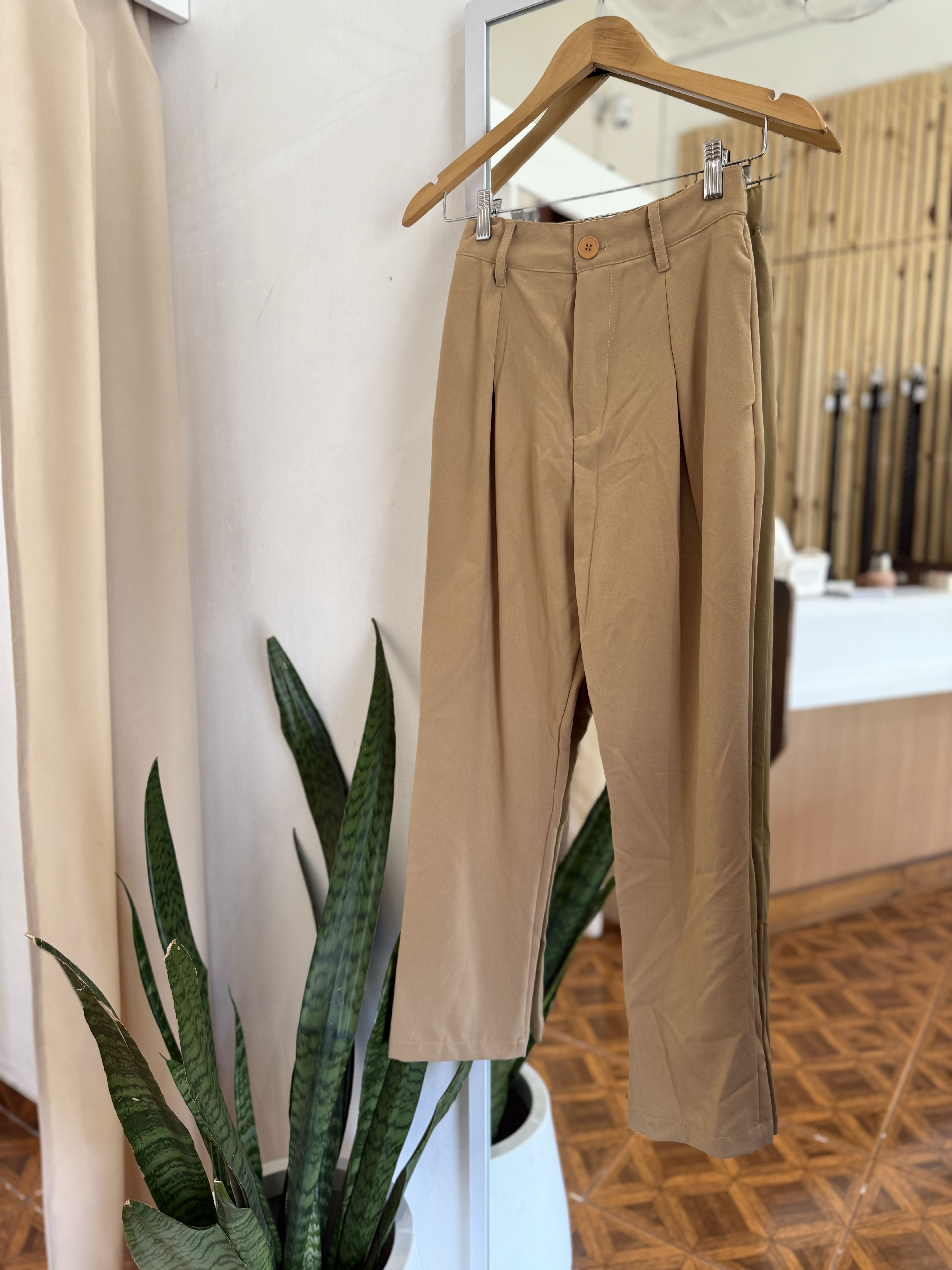 Pant sastrero corte clásico, elastizado. Tiene pinzas y elástico en la parte trasera de la cintura.