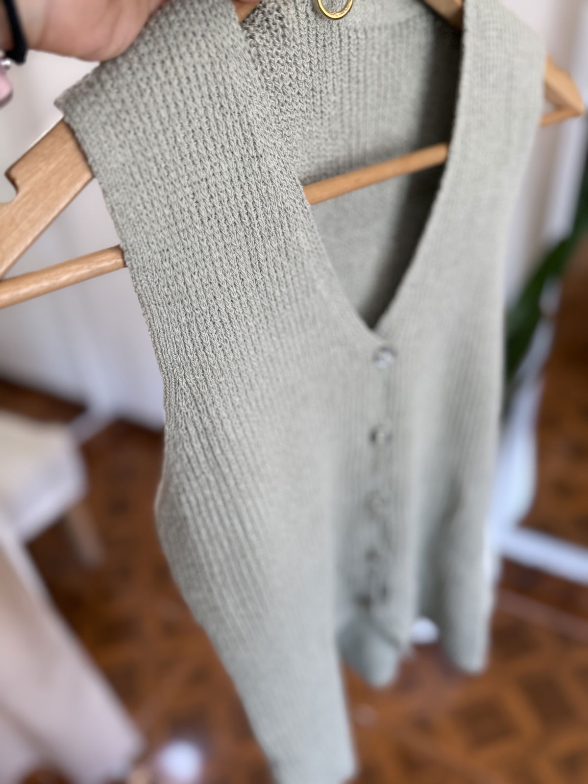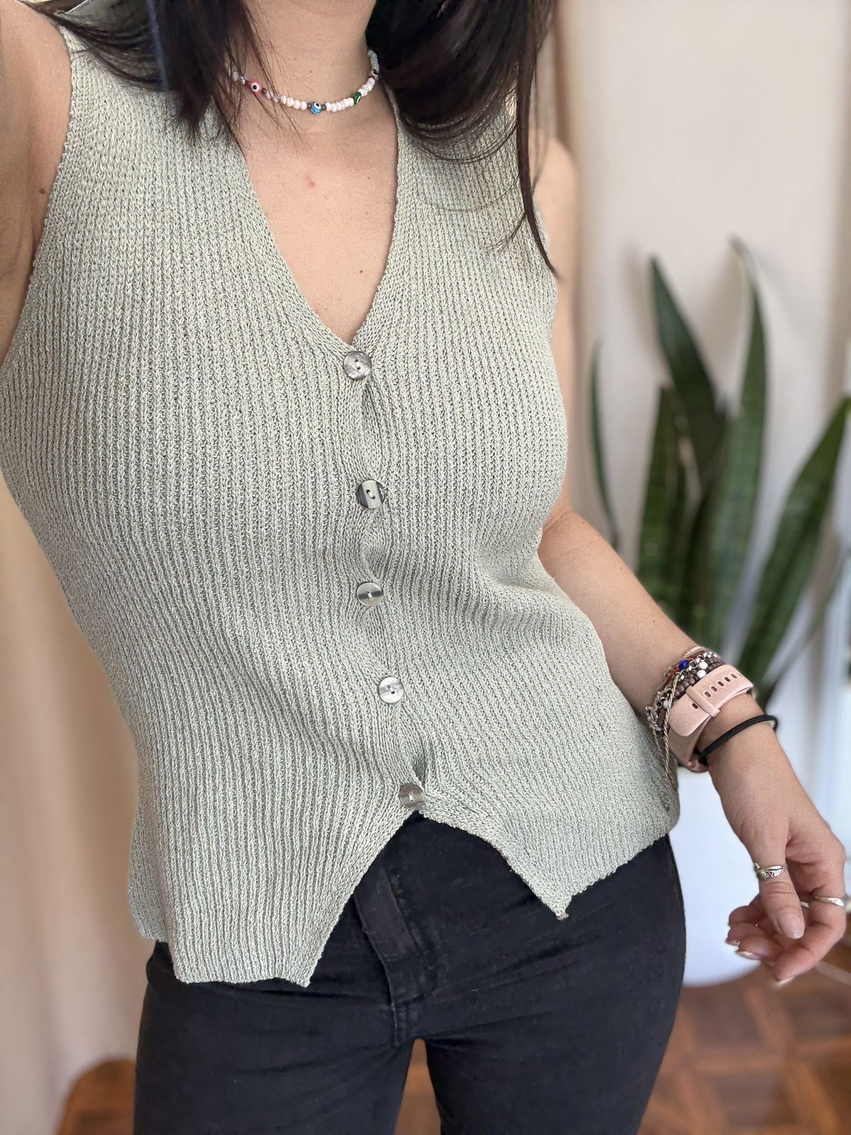 Musculosa de tejida gruesita, con botoncitos al frente tipo chaleco. Mega clásica y divina!