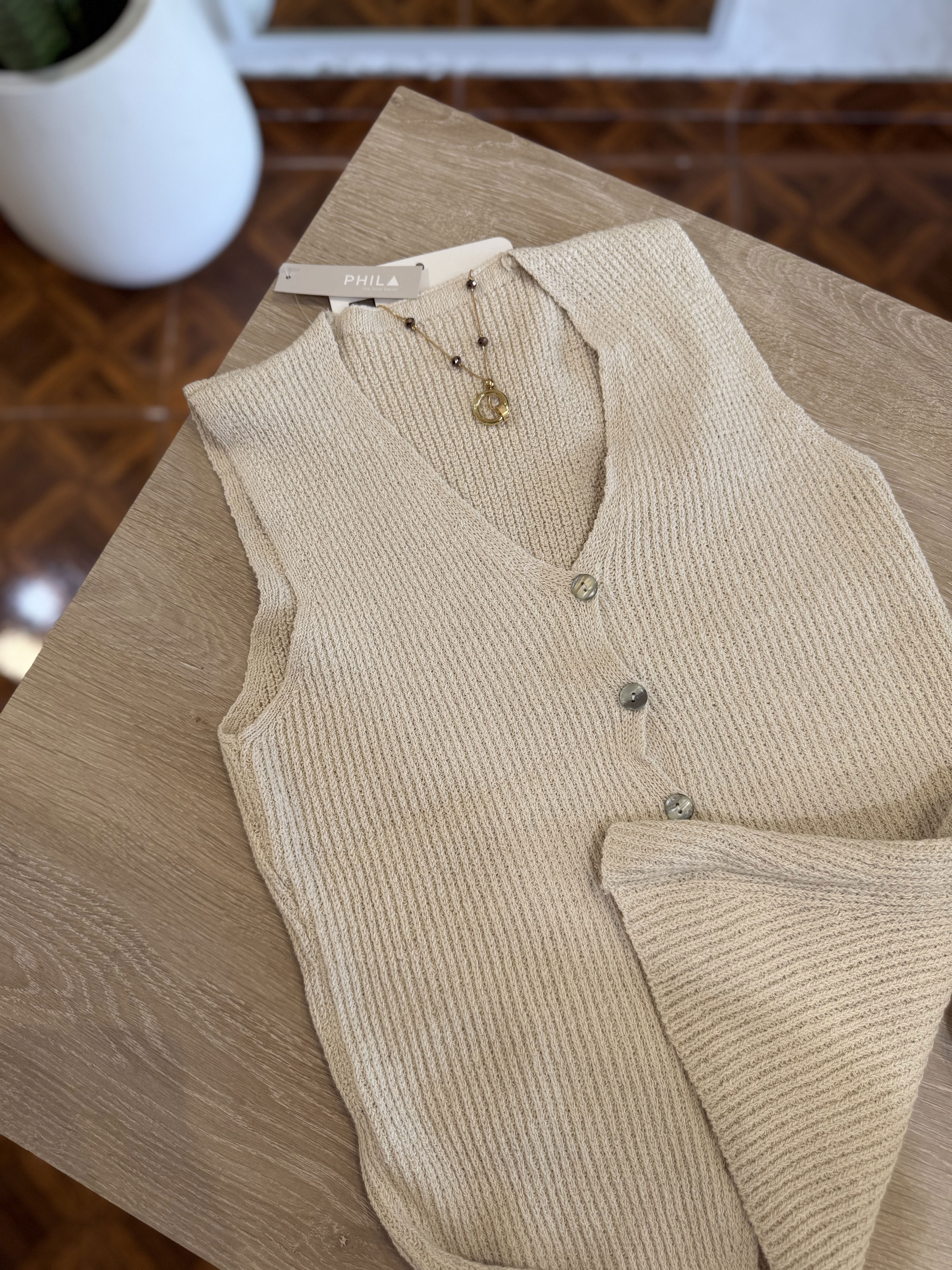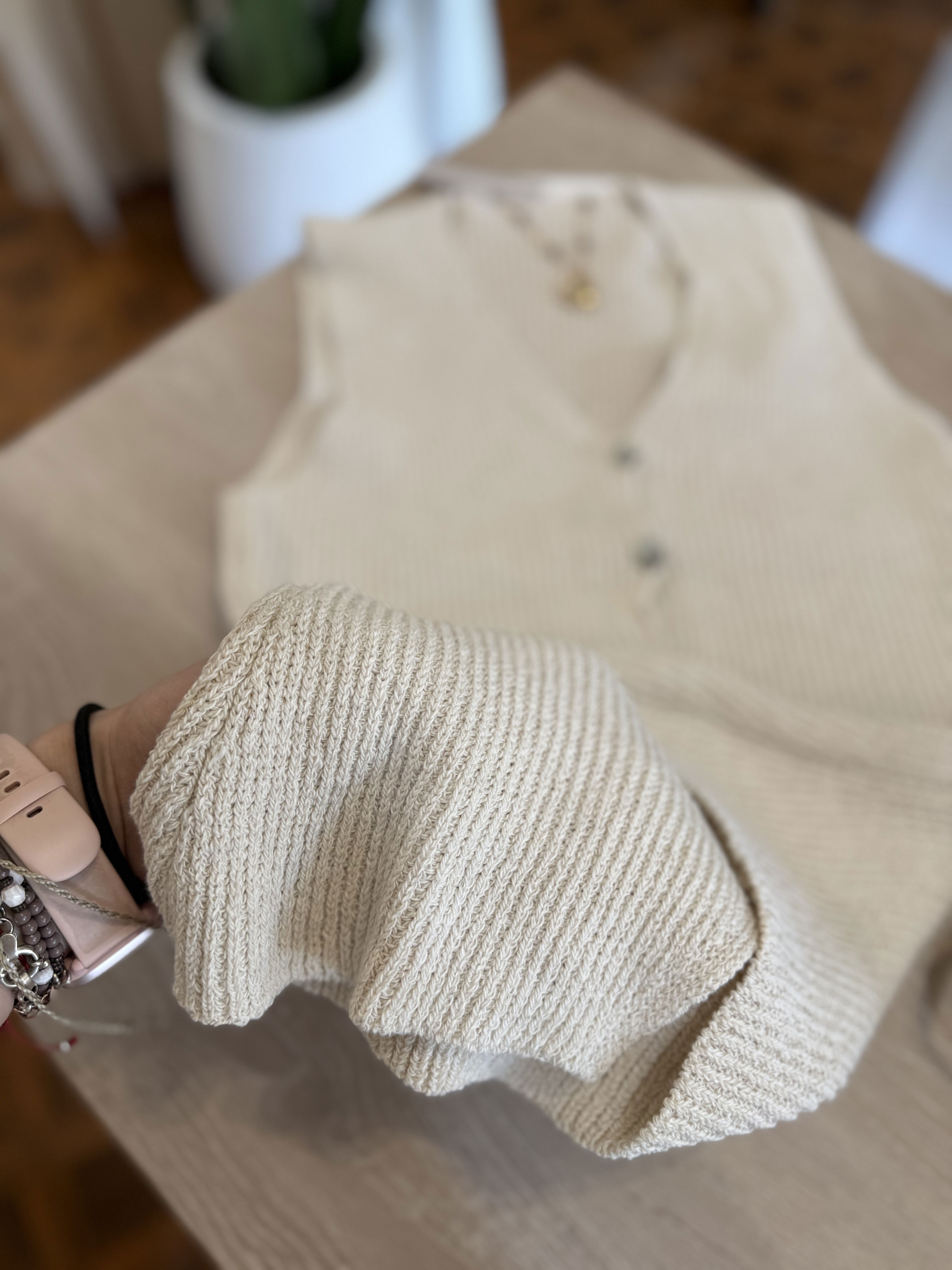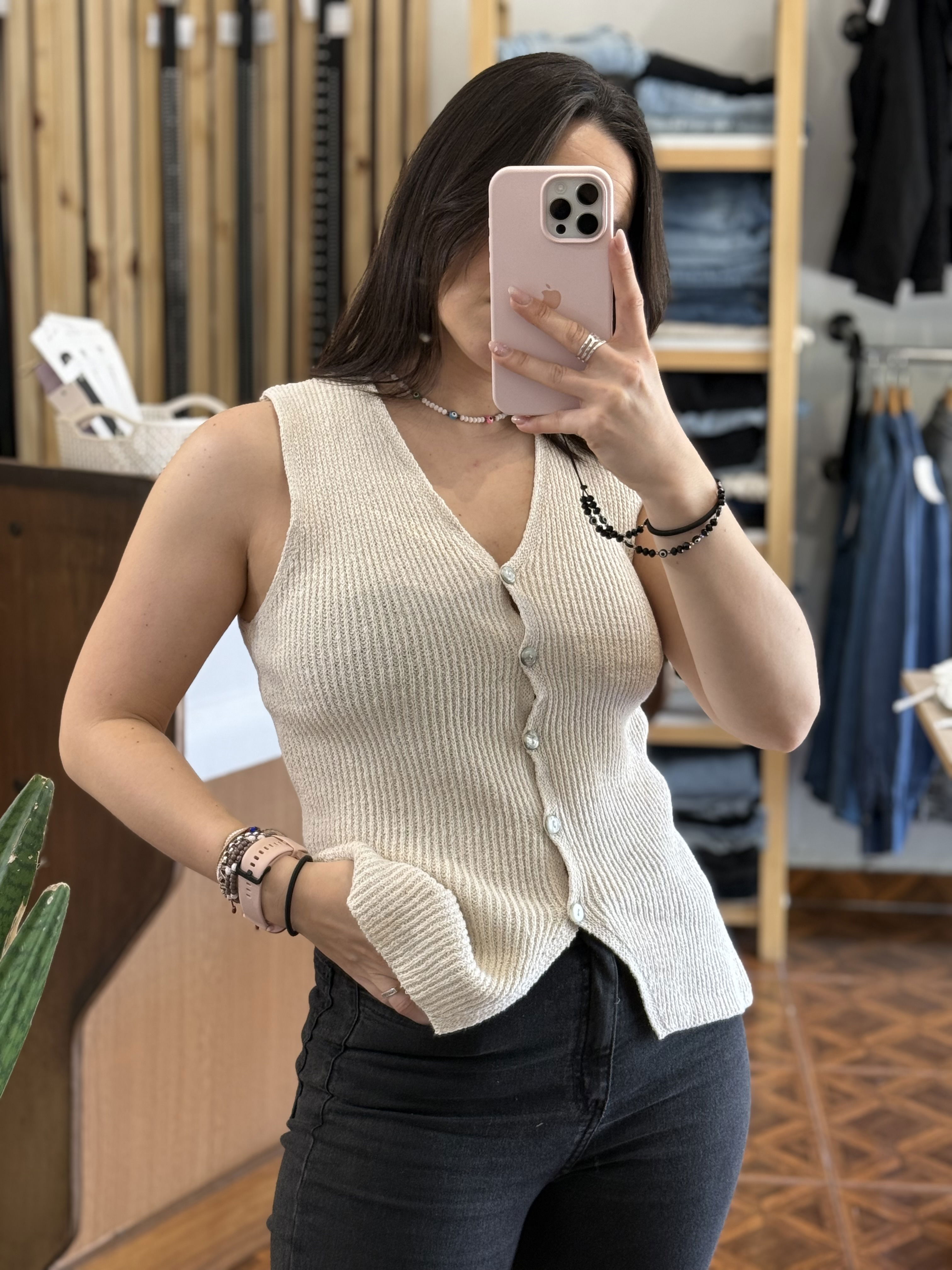 Musculosa de tejida gruesita, con botoncitos al frente tipo chaleco. Mega clásica y divina!