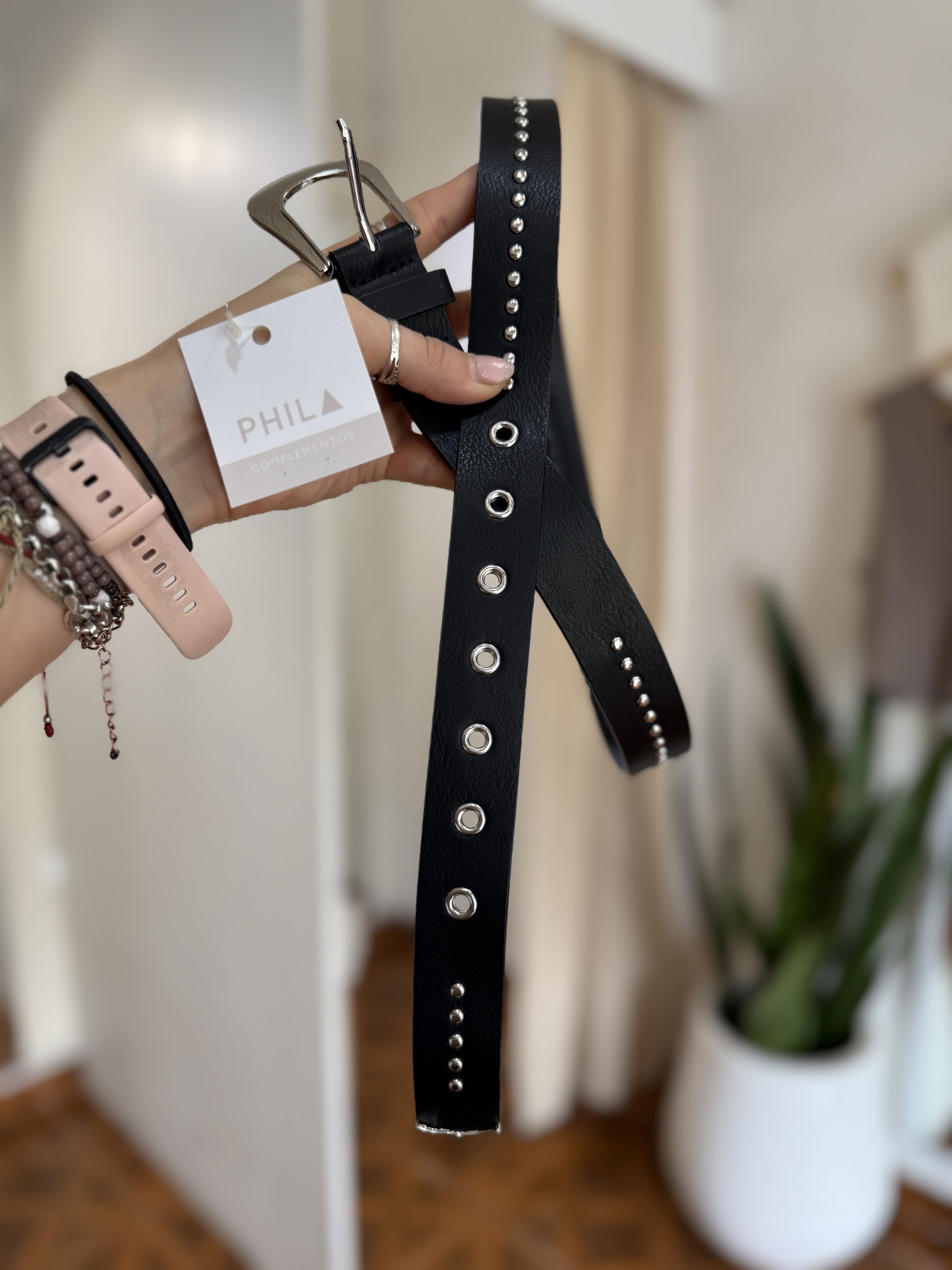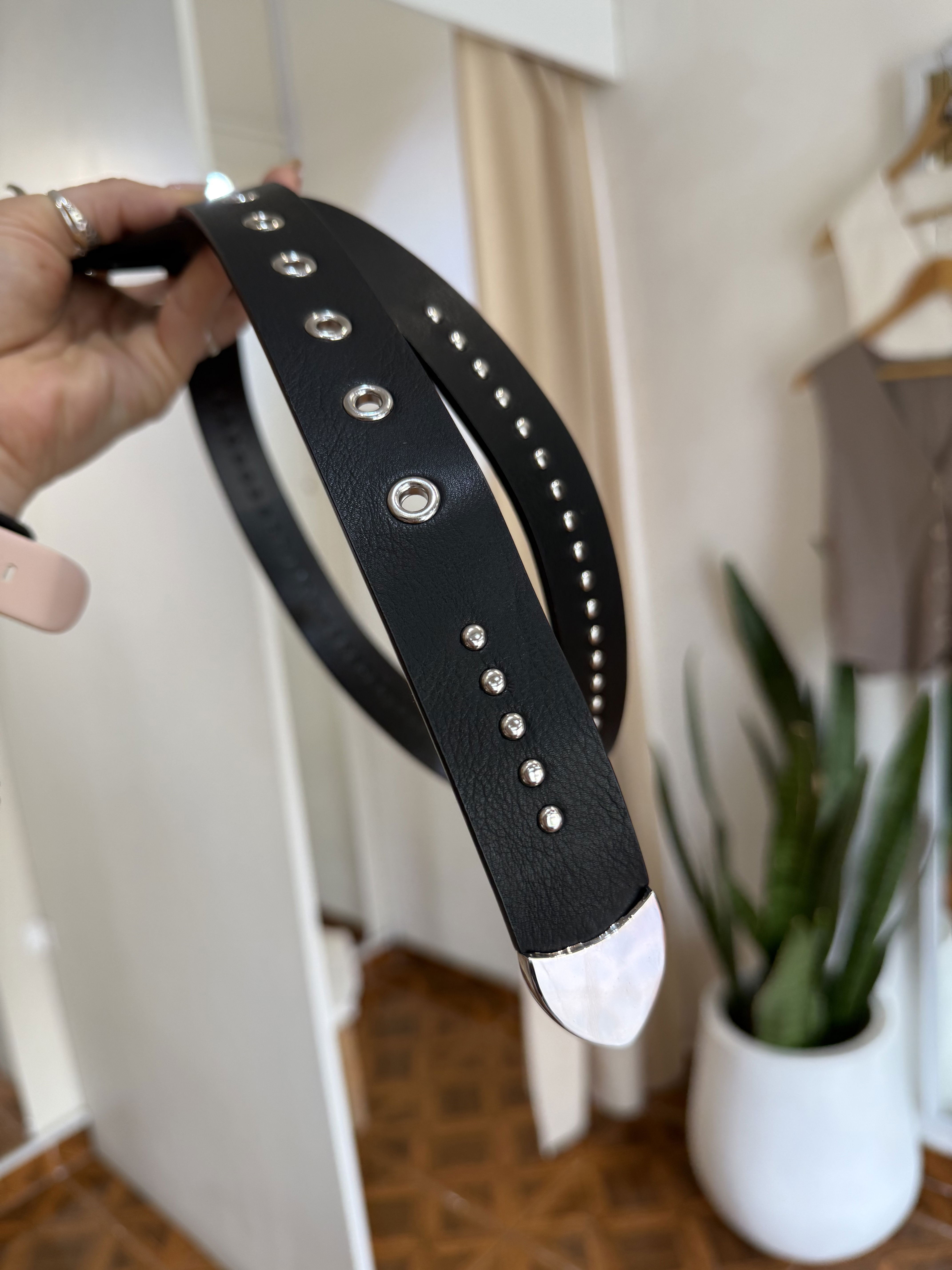 Cinto con una linea de tachas, divino. Clásico con el toque que necesitas
