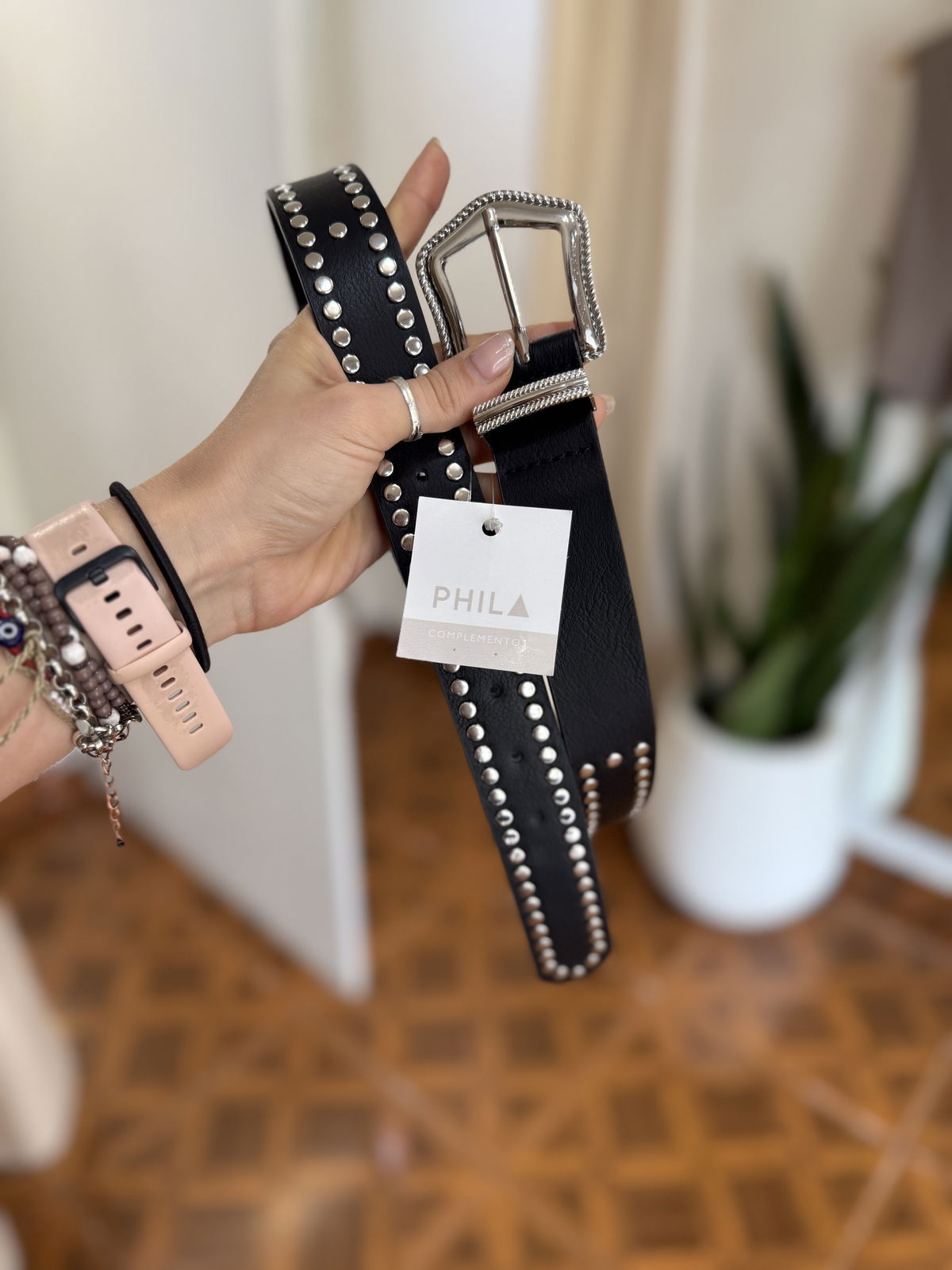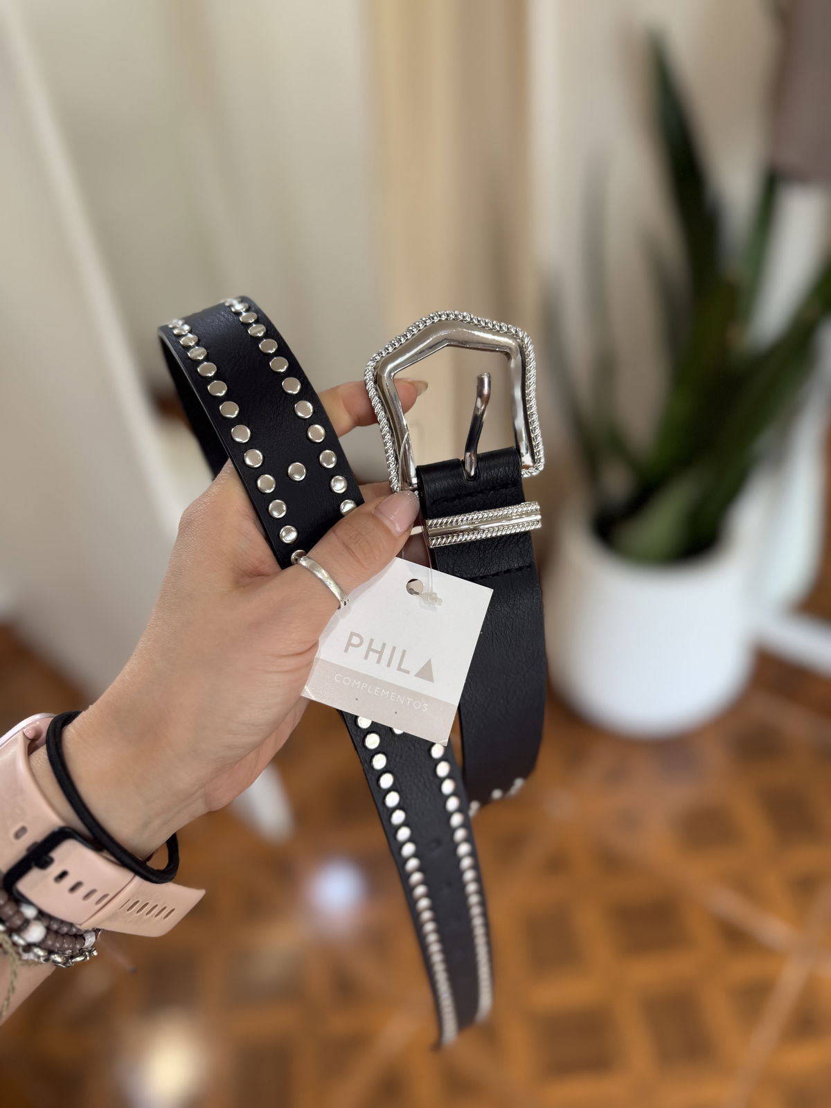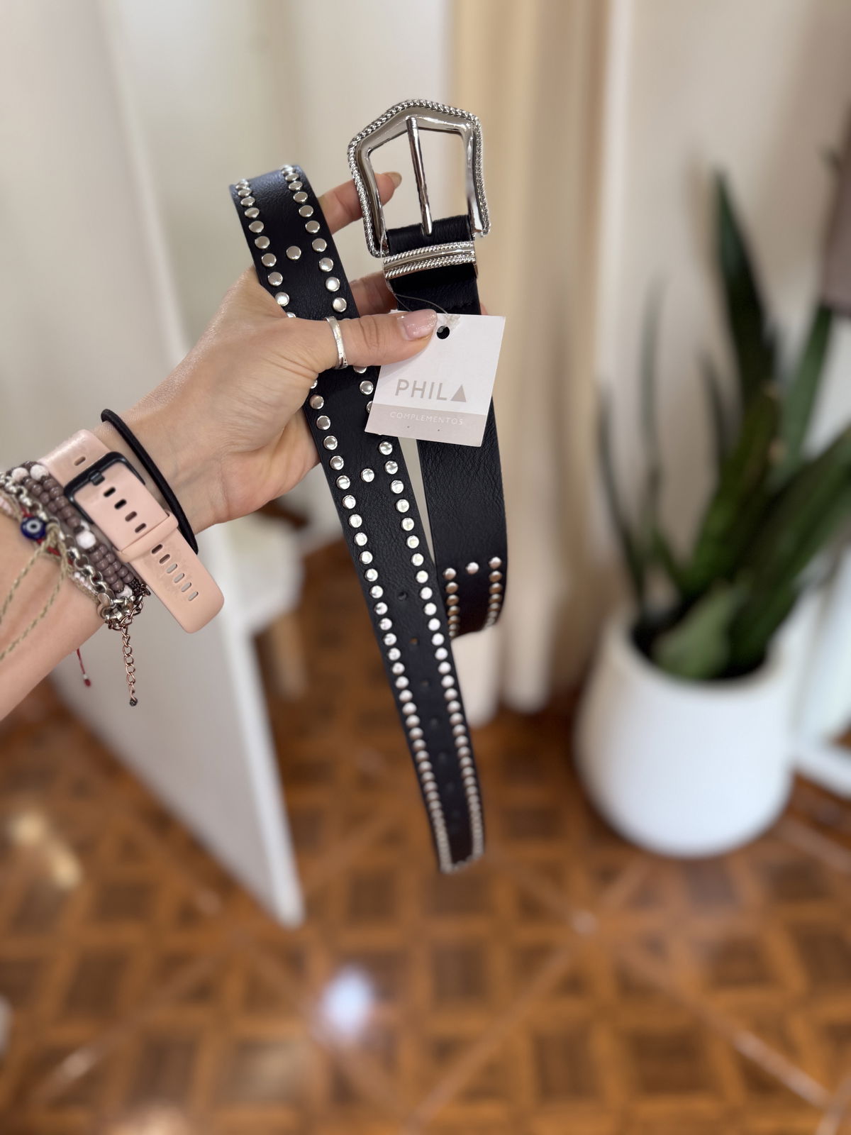 Cinto con doble linea de tachas, divino. Clásico con el toque que necesitas