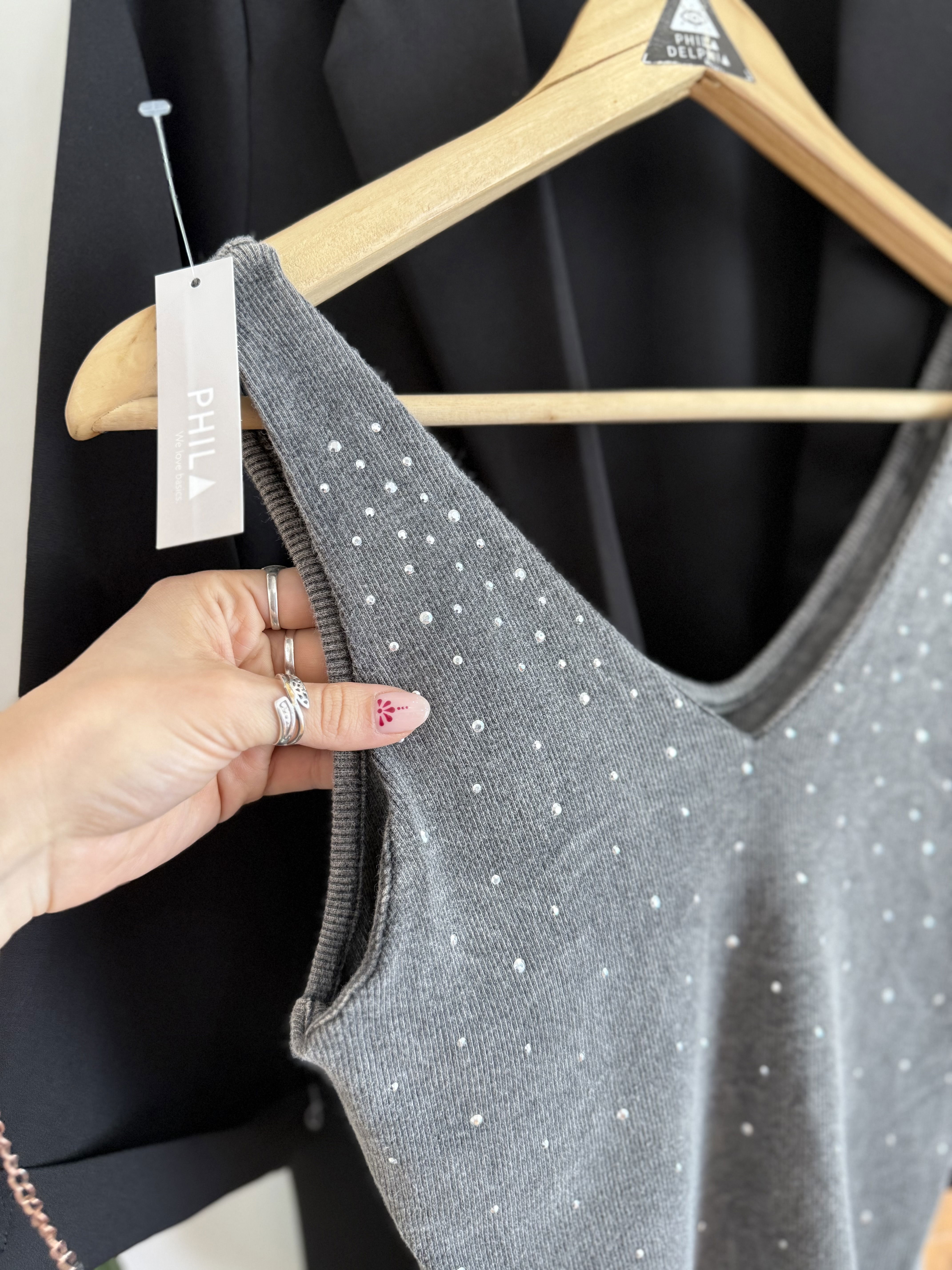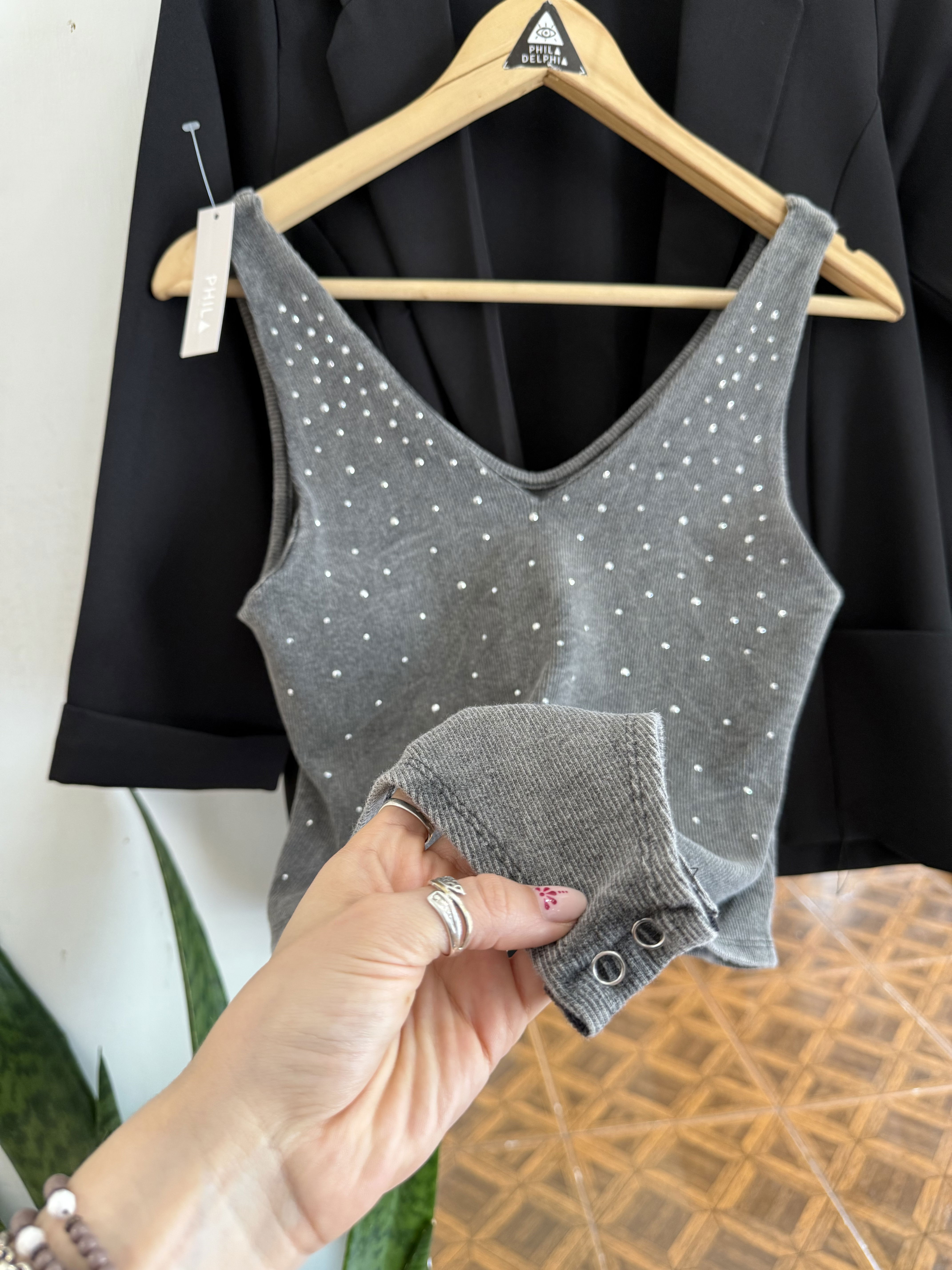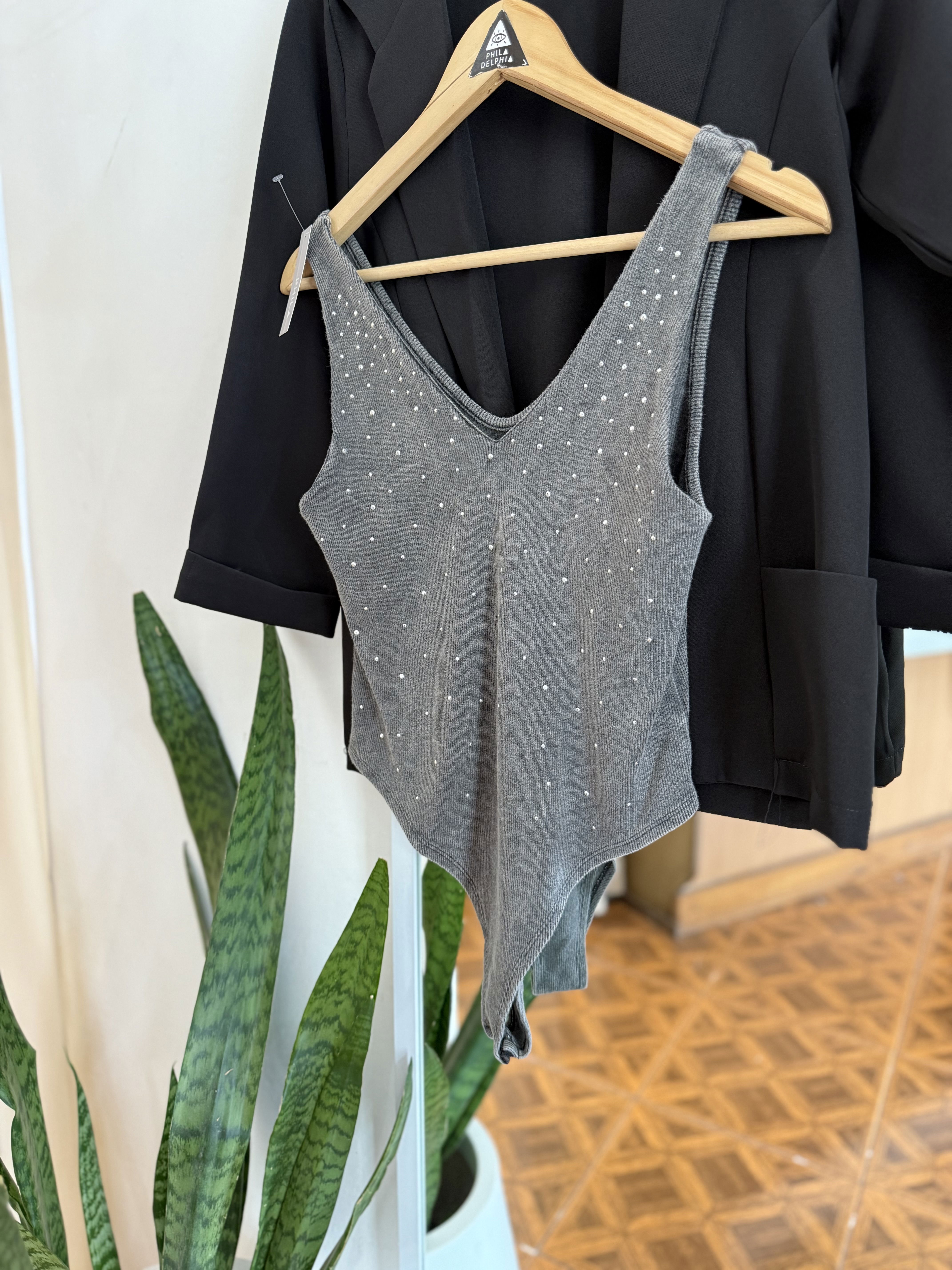 Body de morley ribb gruesito, escote V con detalles de estras al frente que le dan un toque nochero expectacular