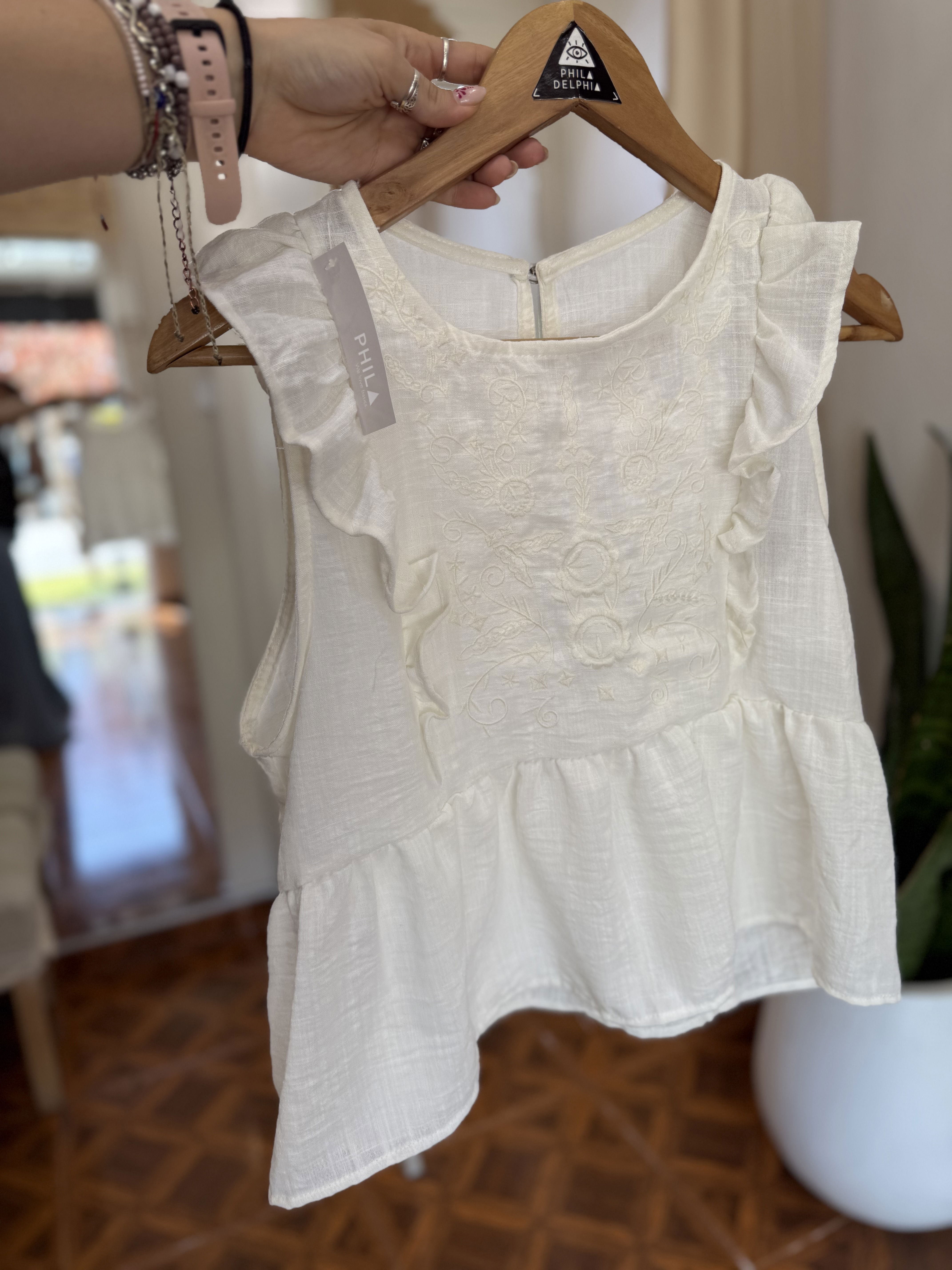 Hermoso modelo de blusa con bordado en el pecho, al mismo tono que la tela. DIVINO
