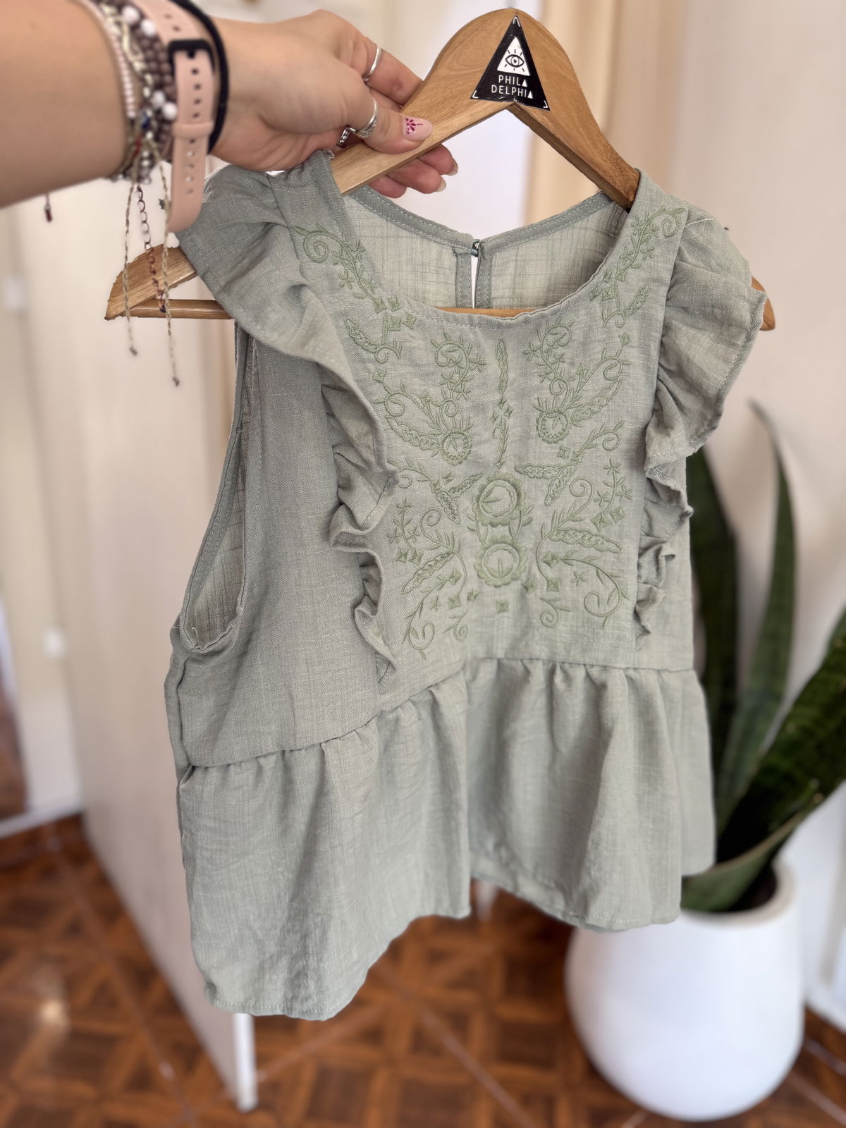 Hermoso modelo de blusa con bordado en el pecho, al mismo tono que la tela. DIVINO