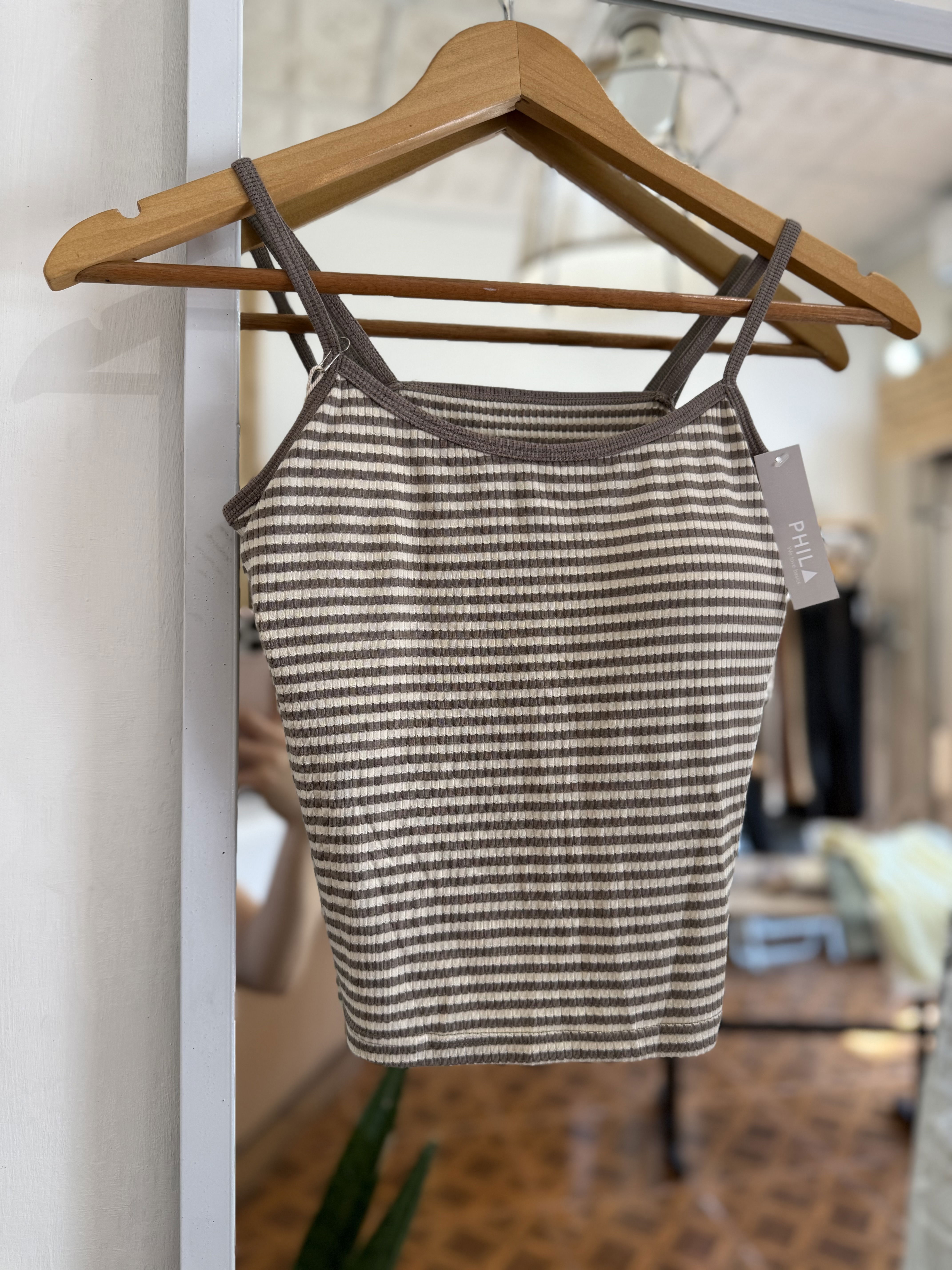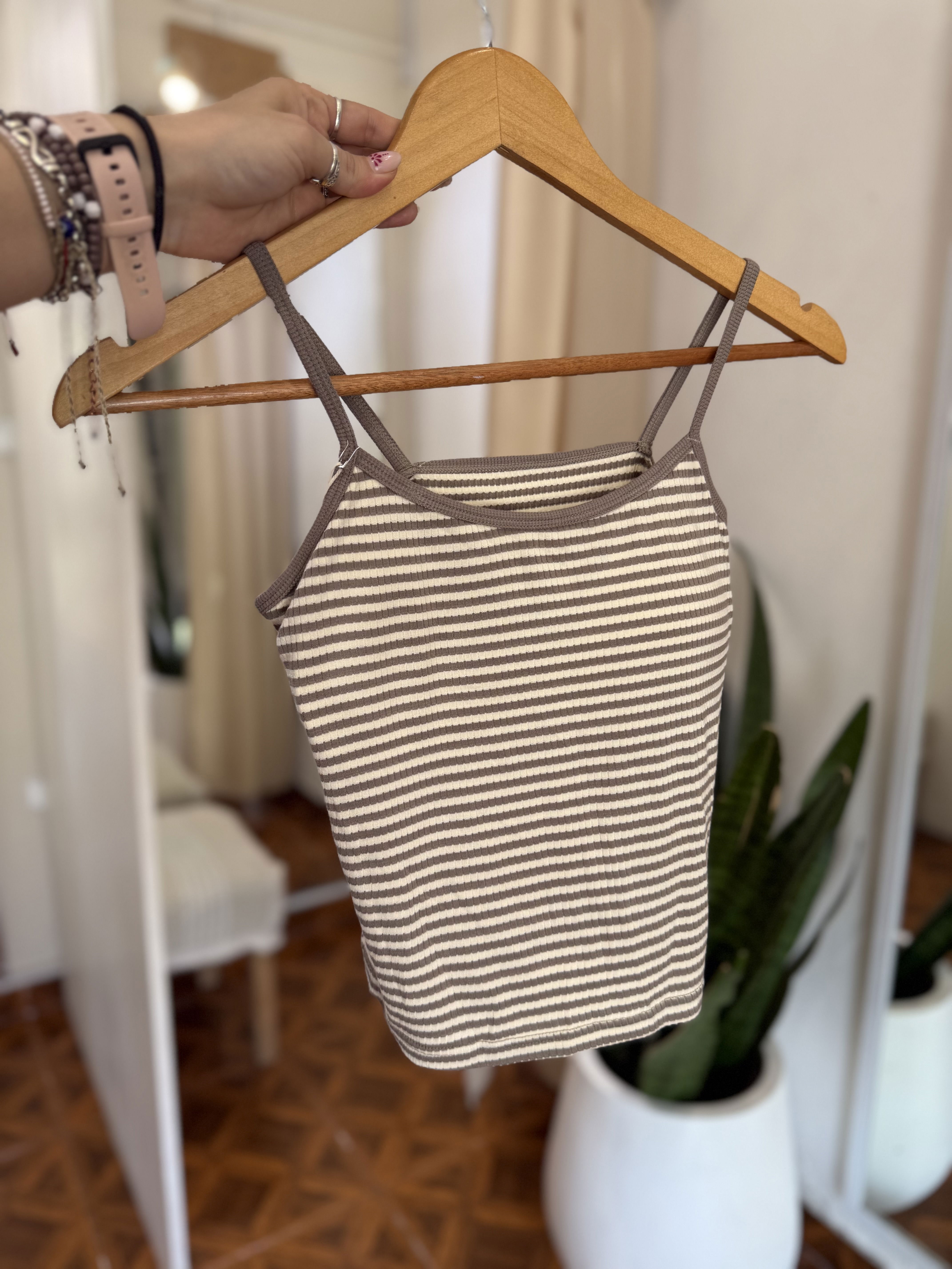 Remerita con tiras elastizadas, rayada de morley elastizado con tazas incorporada. Hermosa opcion para todo andar.