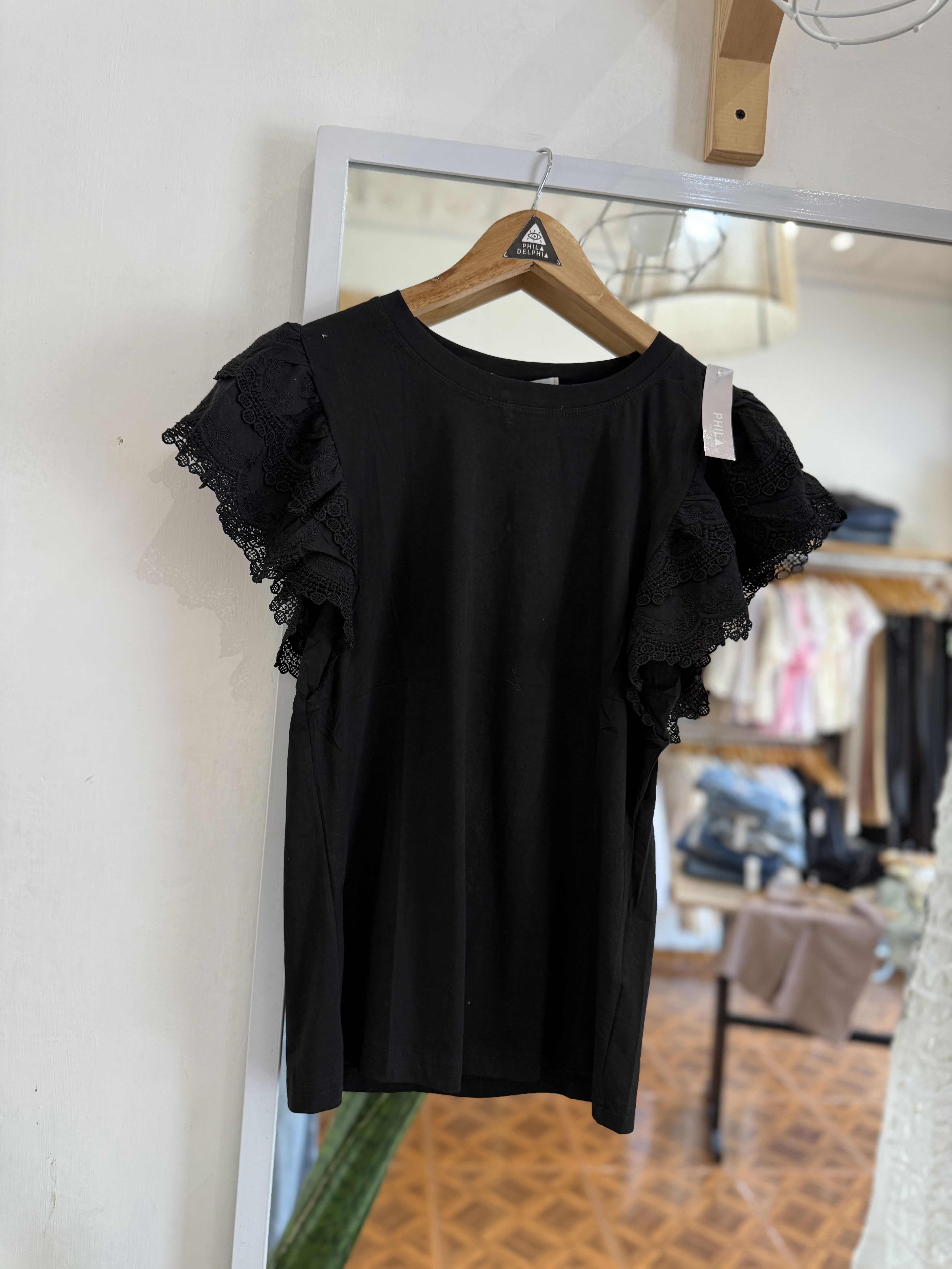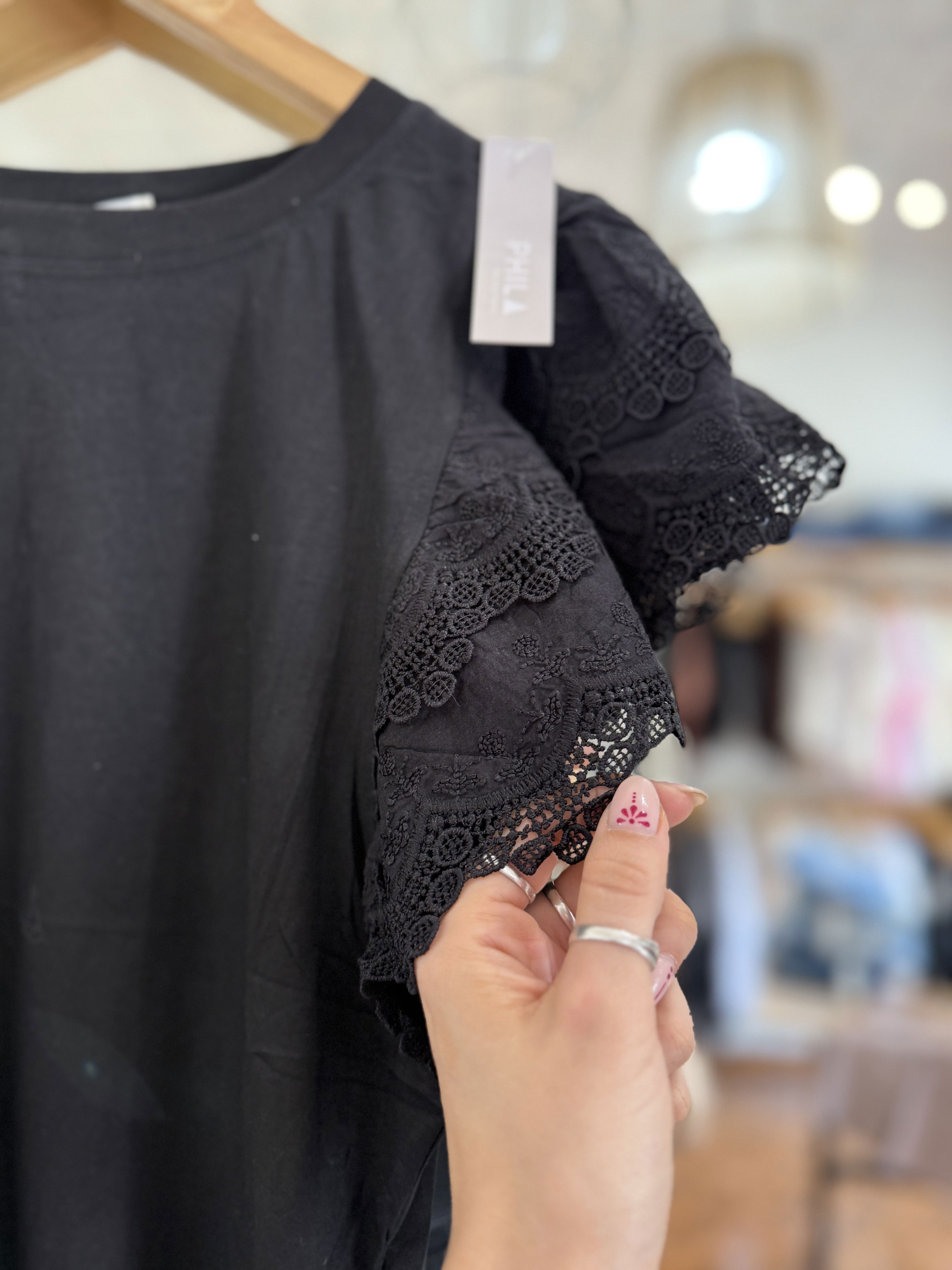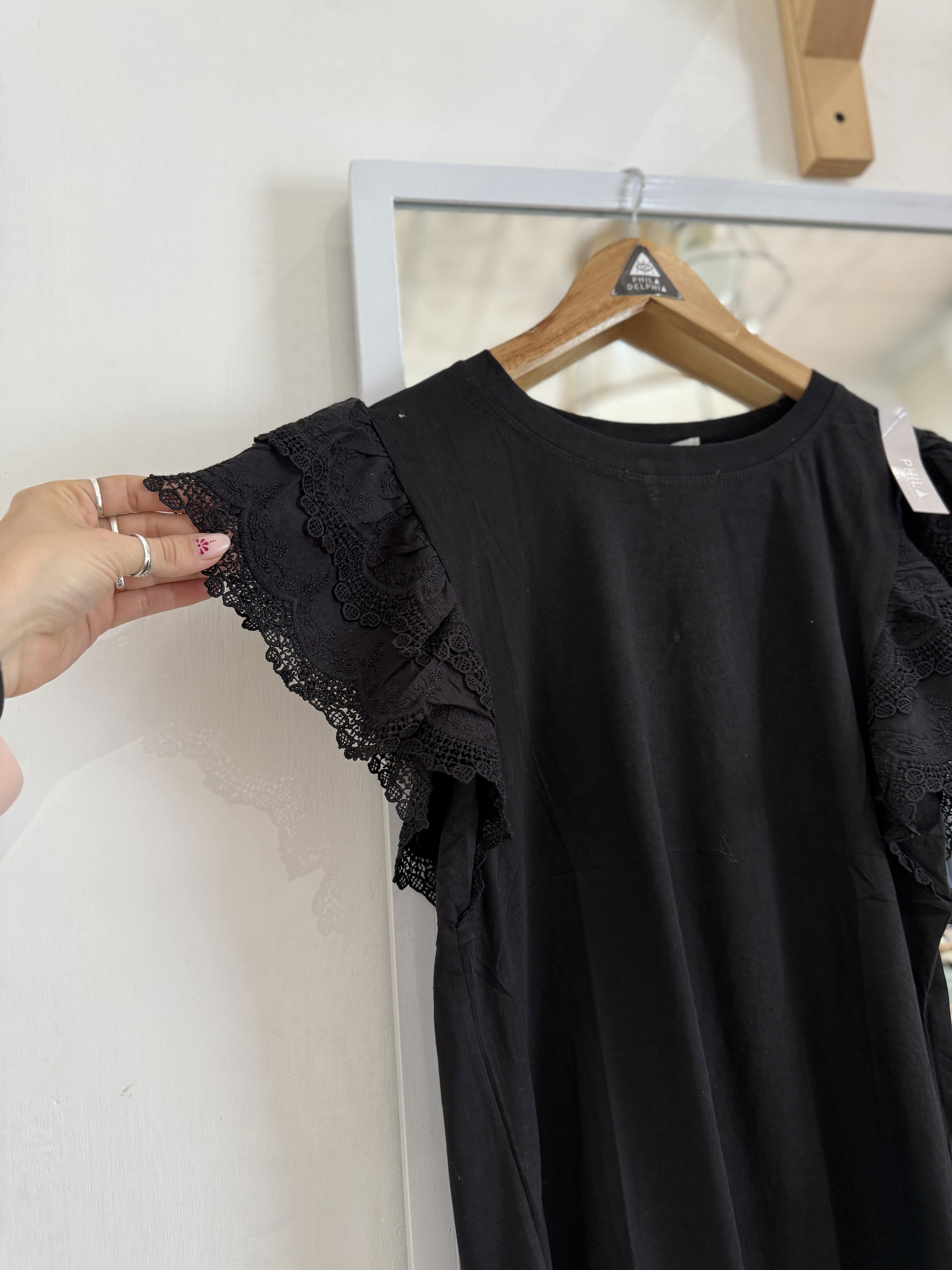 Hermosa remera de algodón premium, con manguitas princesa de encaje que le dan ese toque romántico que necesitas para un look básico con una vuelta diferente ♥