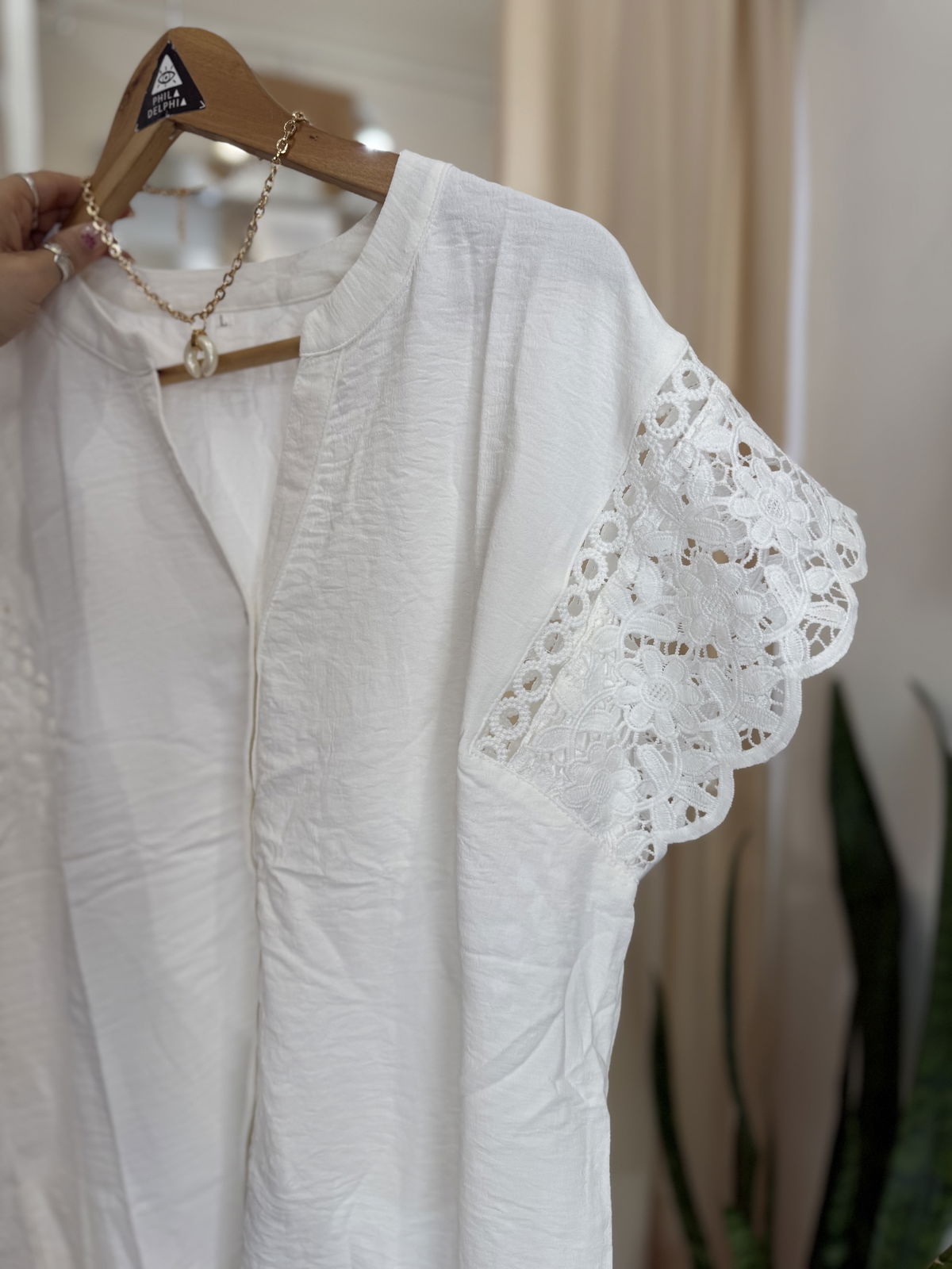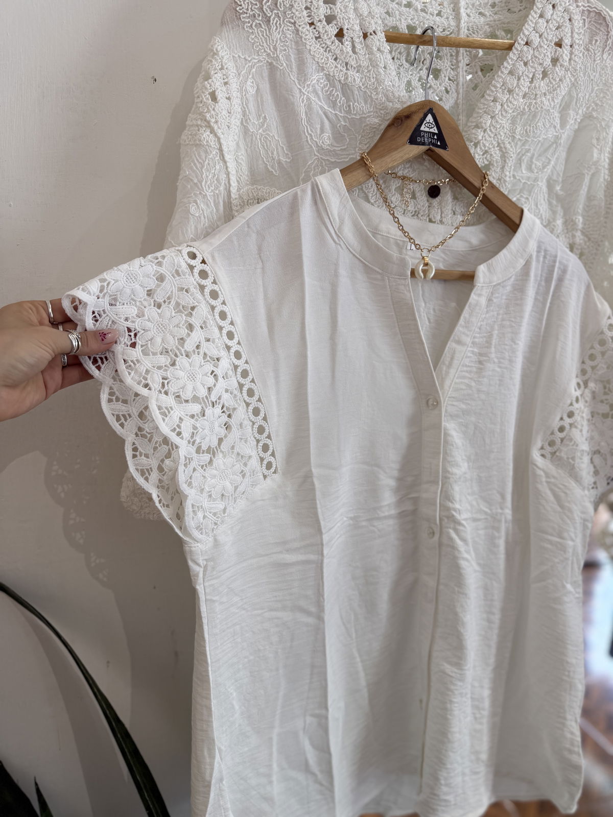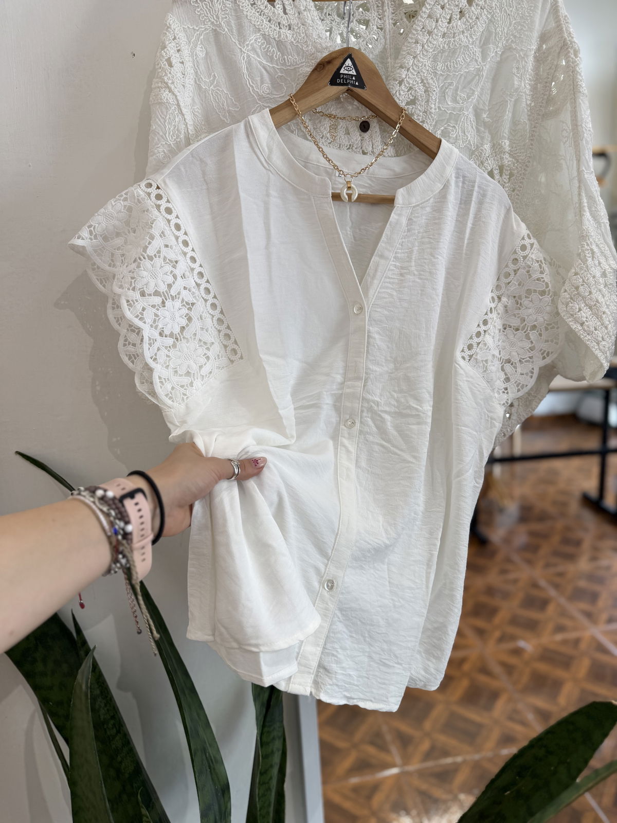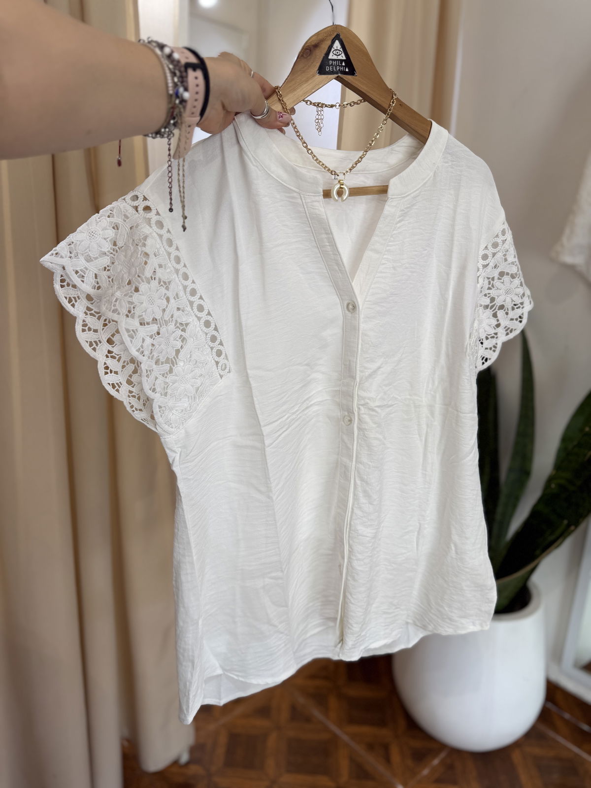 Hermosa blusa con botoncitos, base de crep y manguitas en broderie mega delicada!
