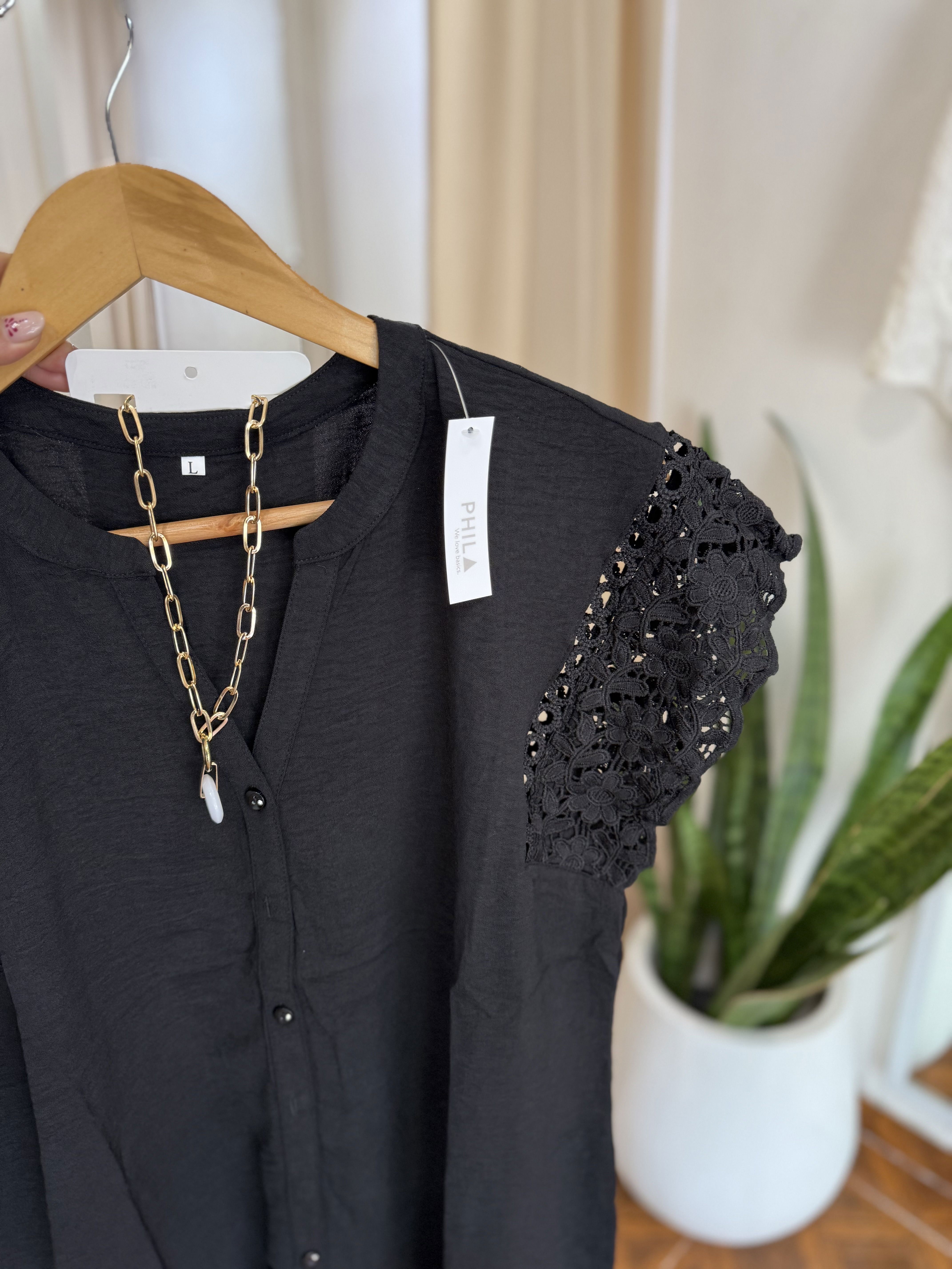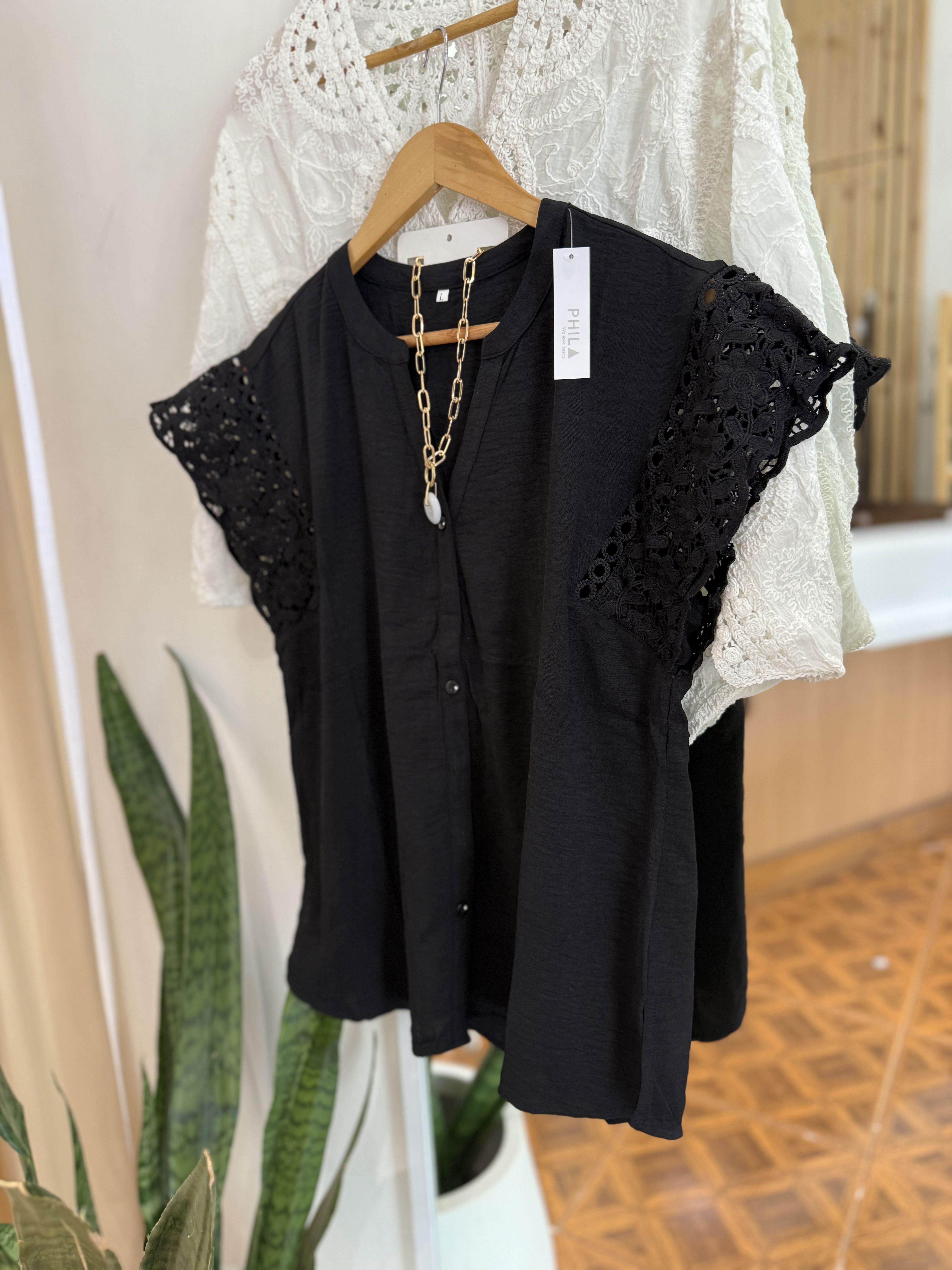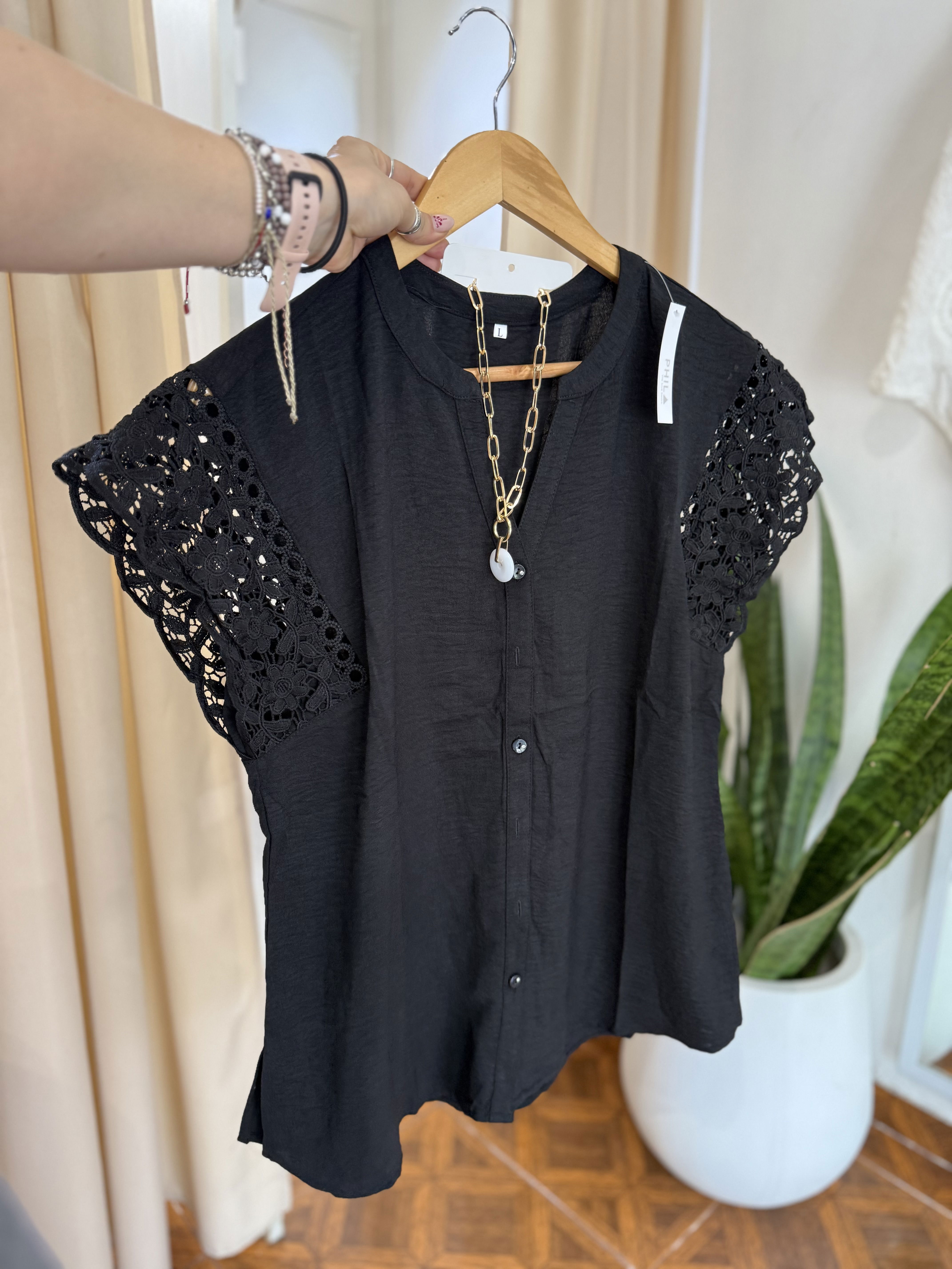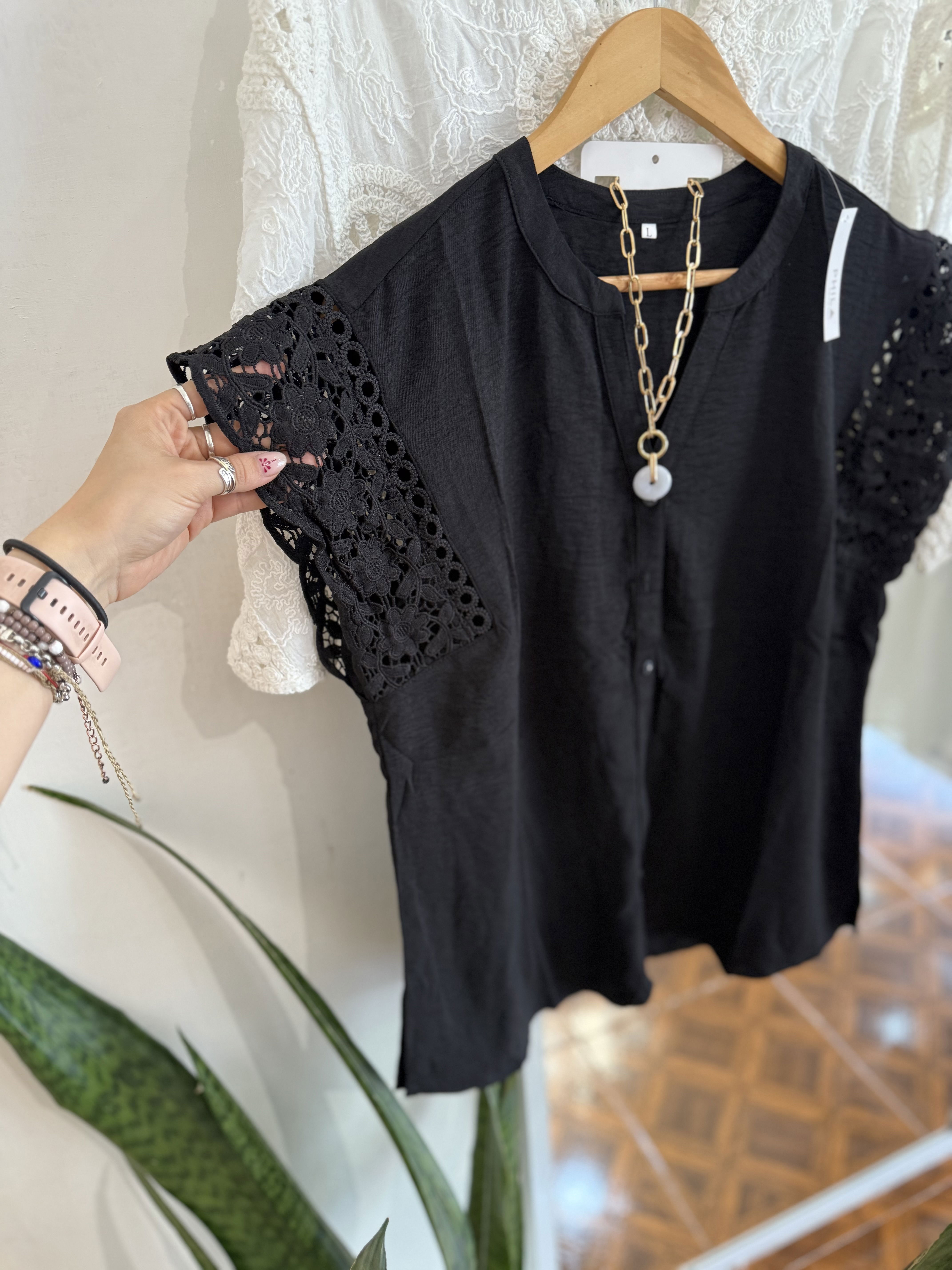 Hermosa blusa con botoncitos, base de crep y manguitas en broderie mega delicada!