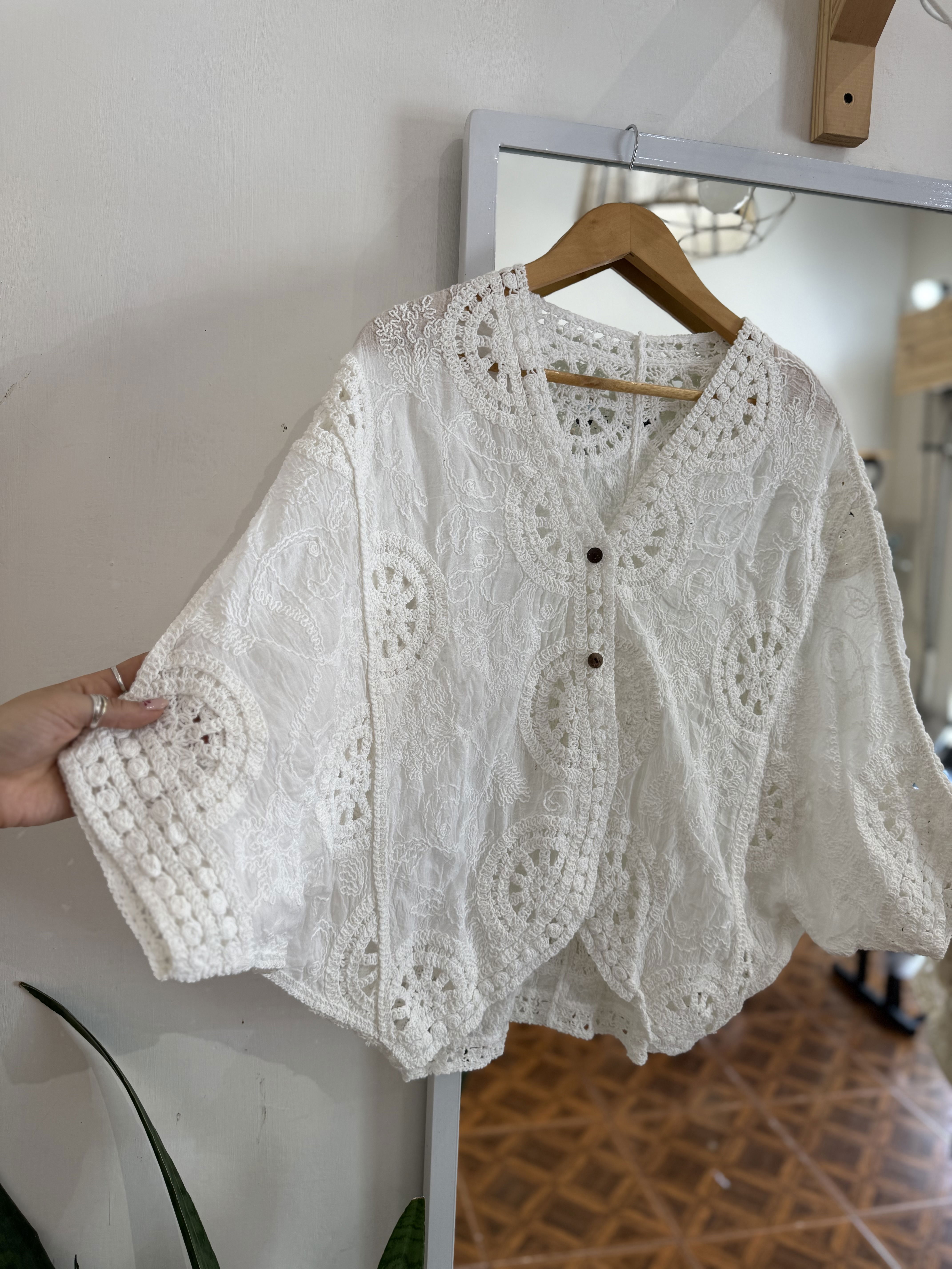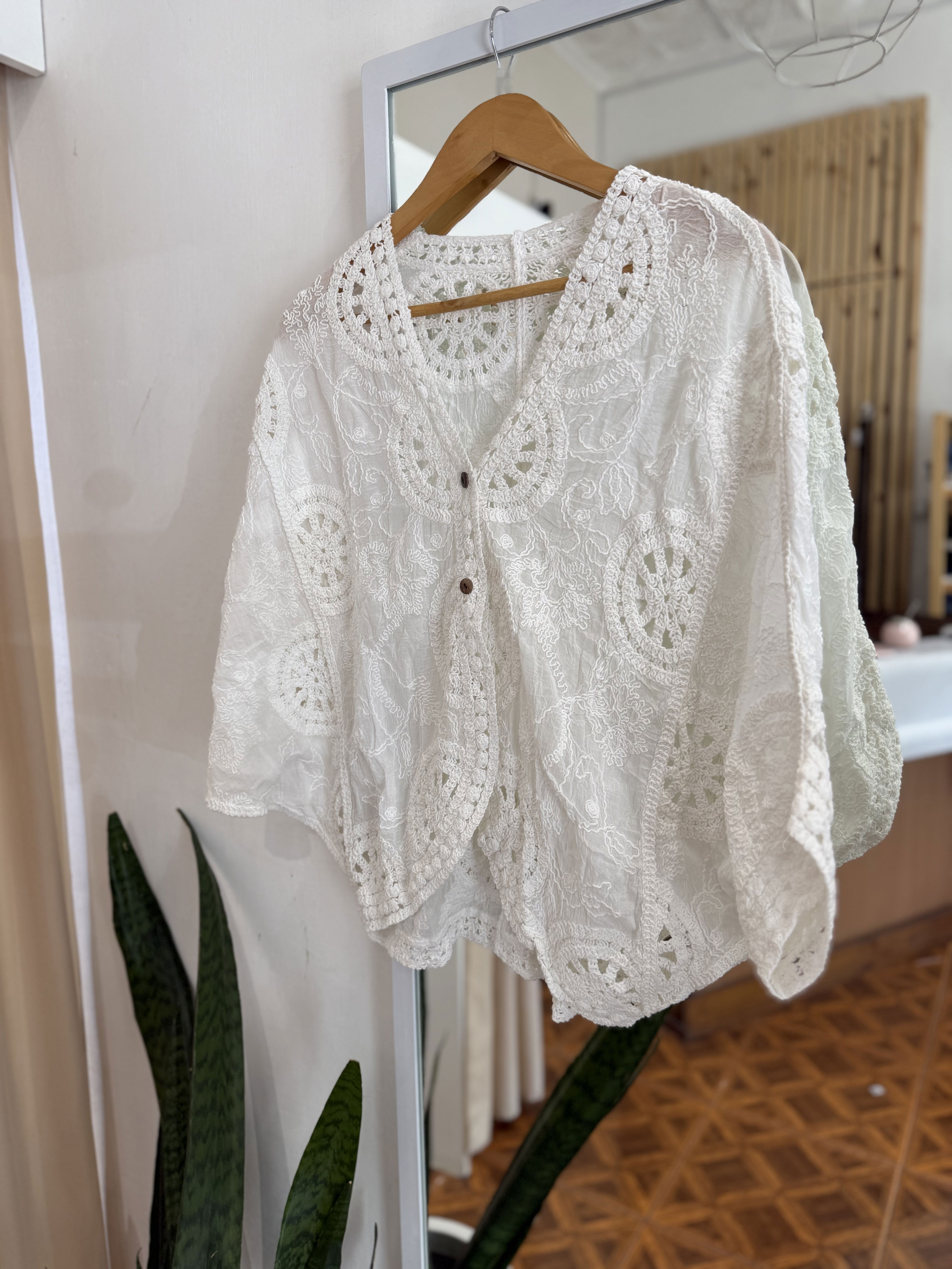 Hermoso modelo de capita, con mangas tipo murcielágo, ideal para ponerle ese toque romantico a un look básico.
