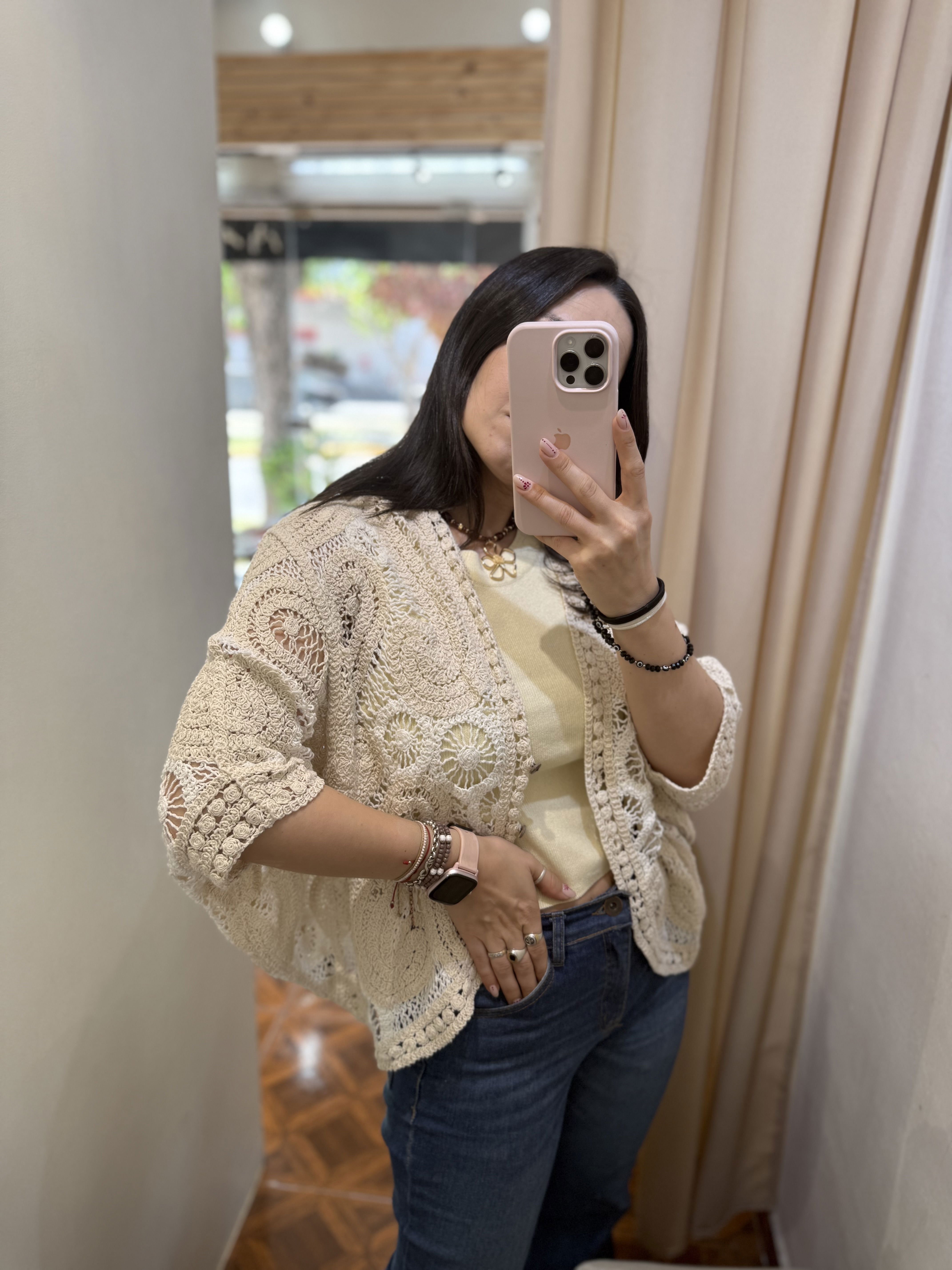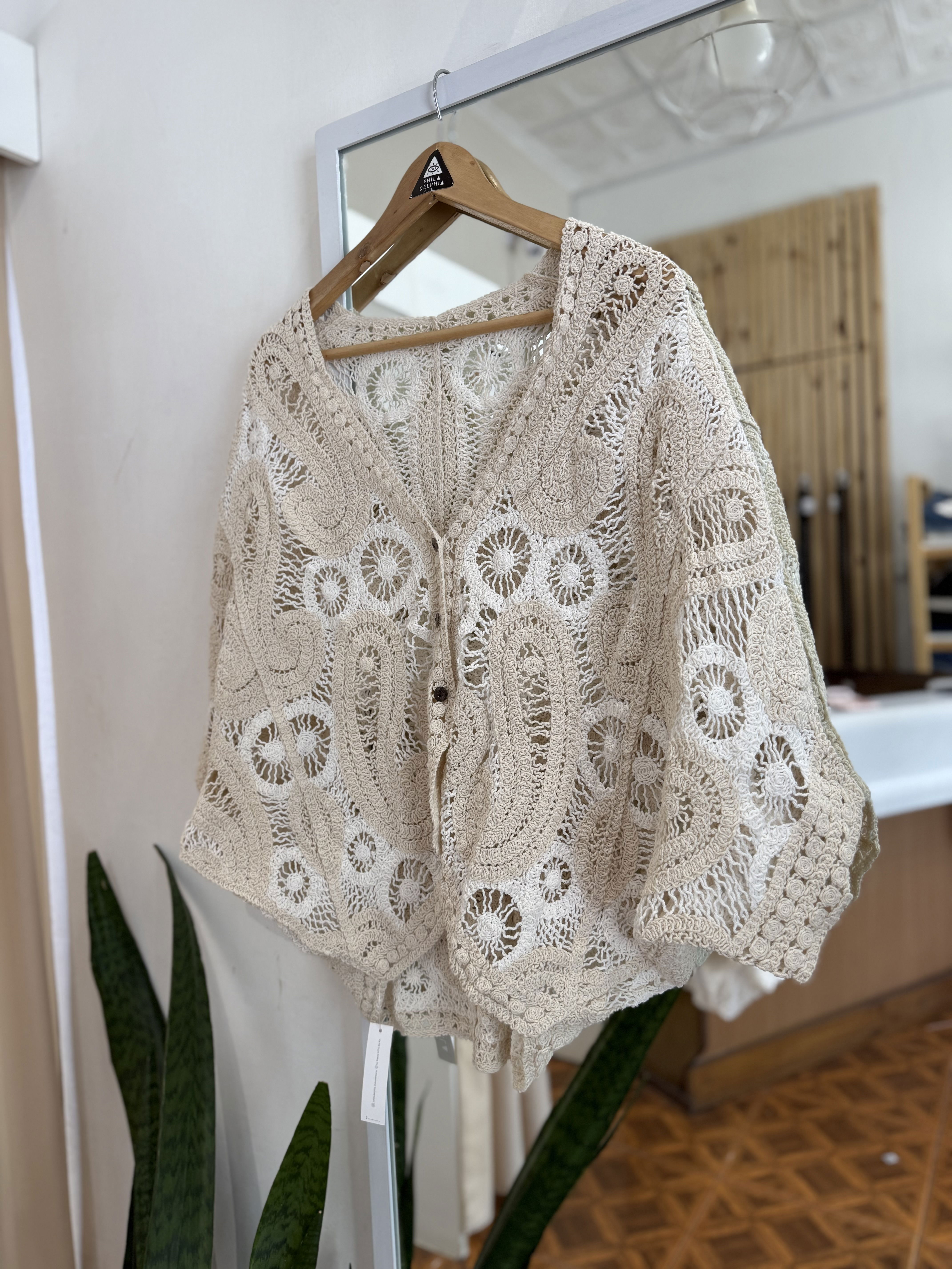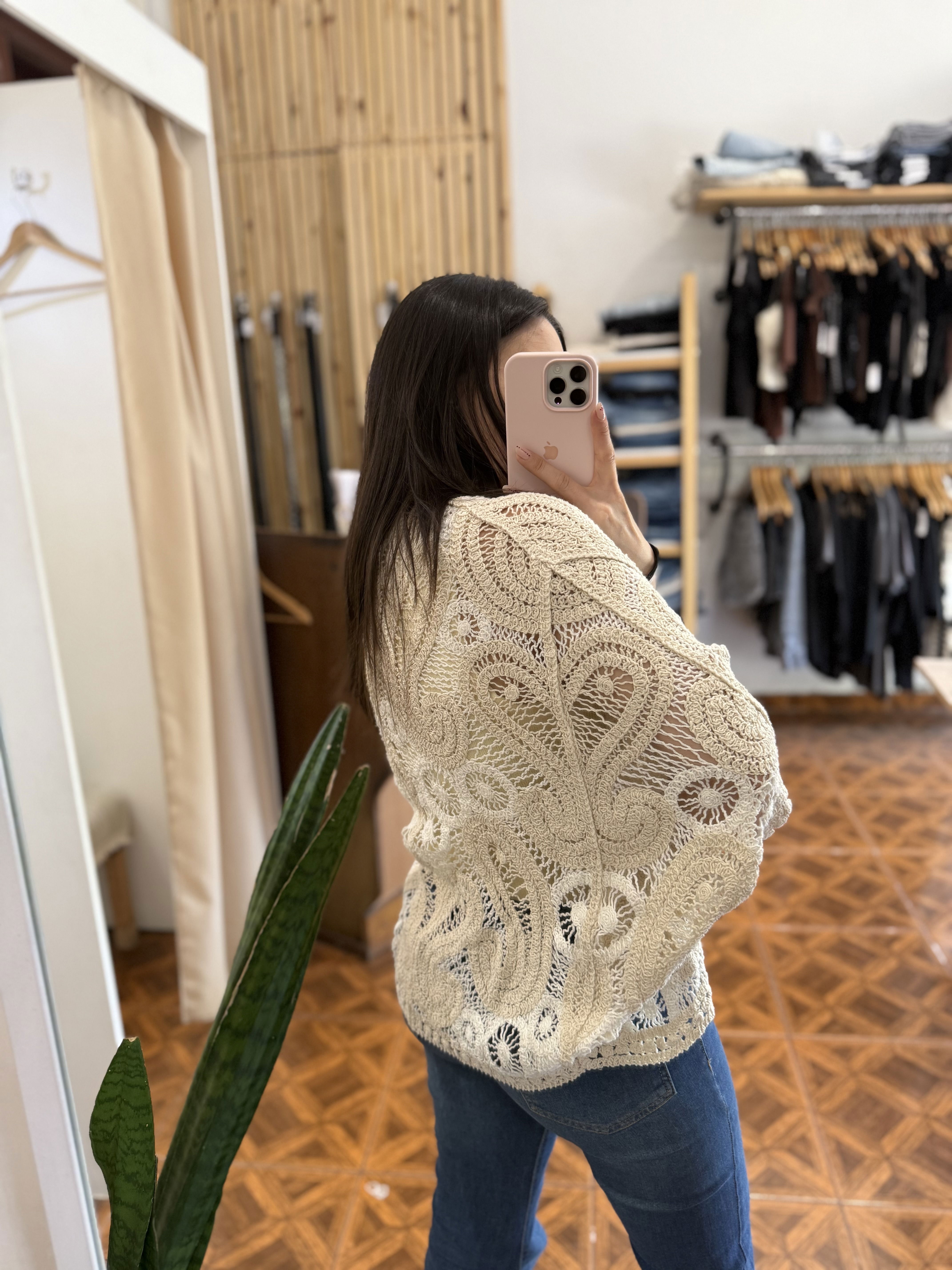 Hermoso modelo de capita a crochet tejido, con mangas tipo murcielágo, ideal para ponerle ese toque romantico a un look básico.