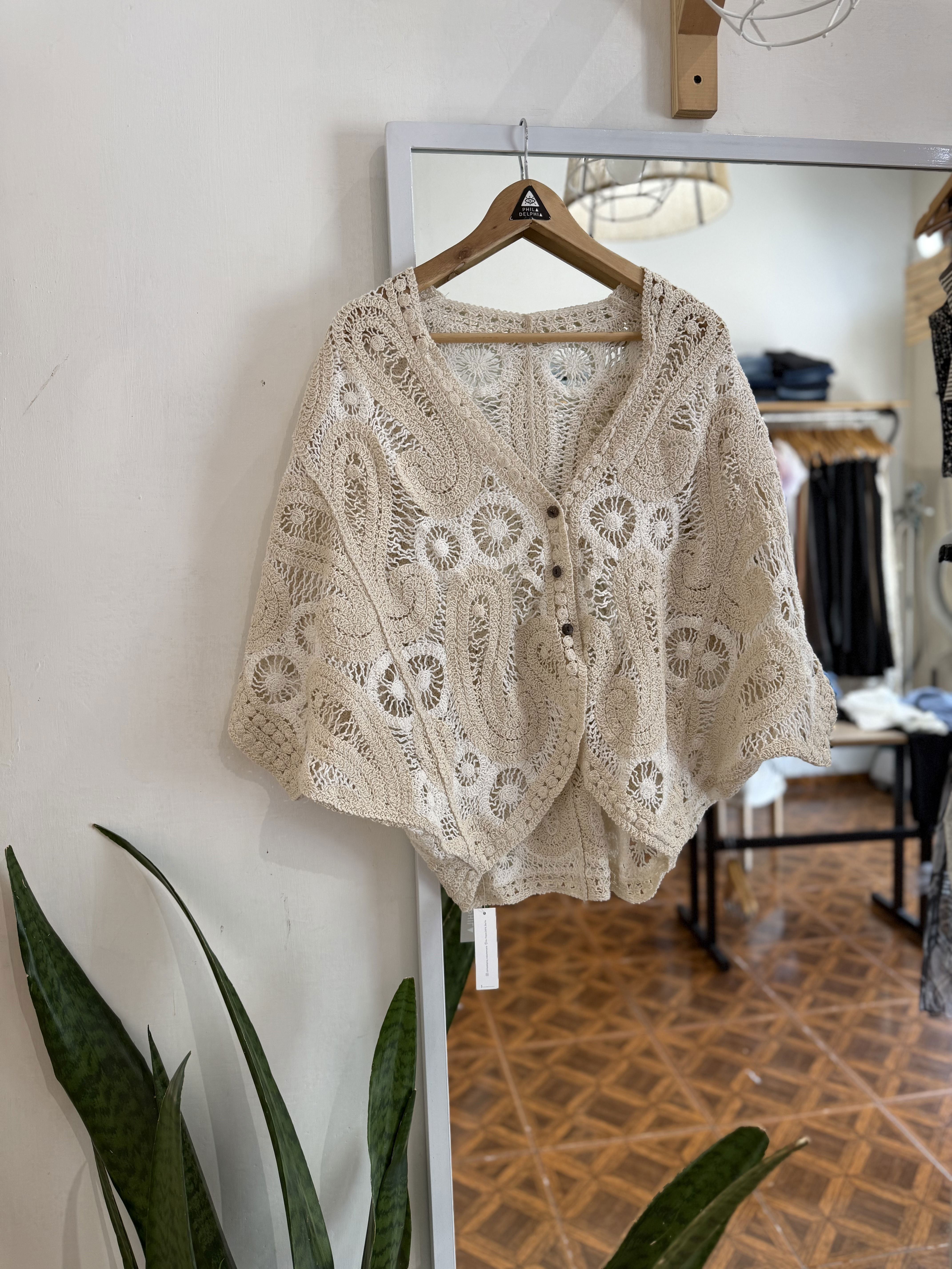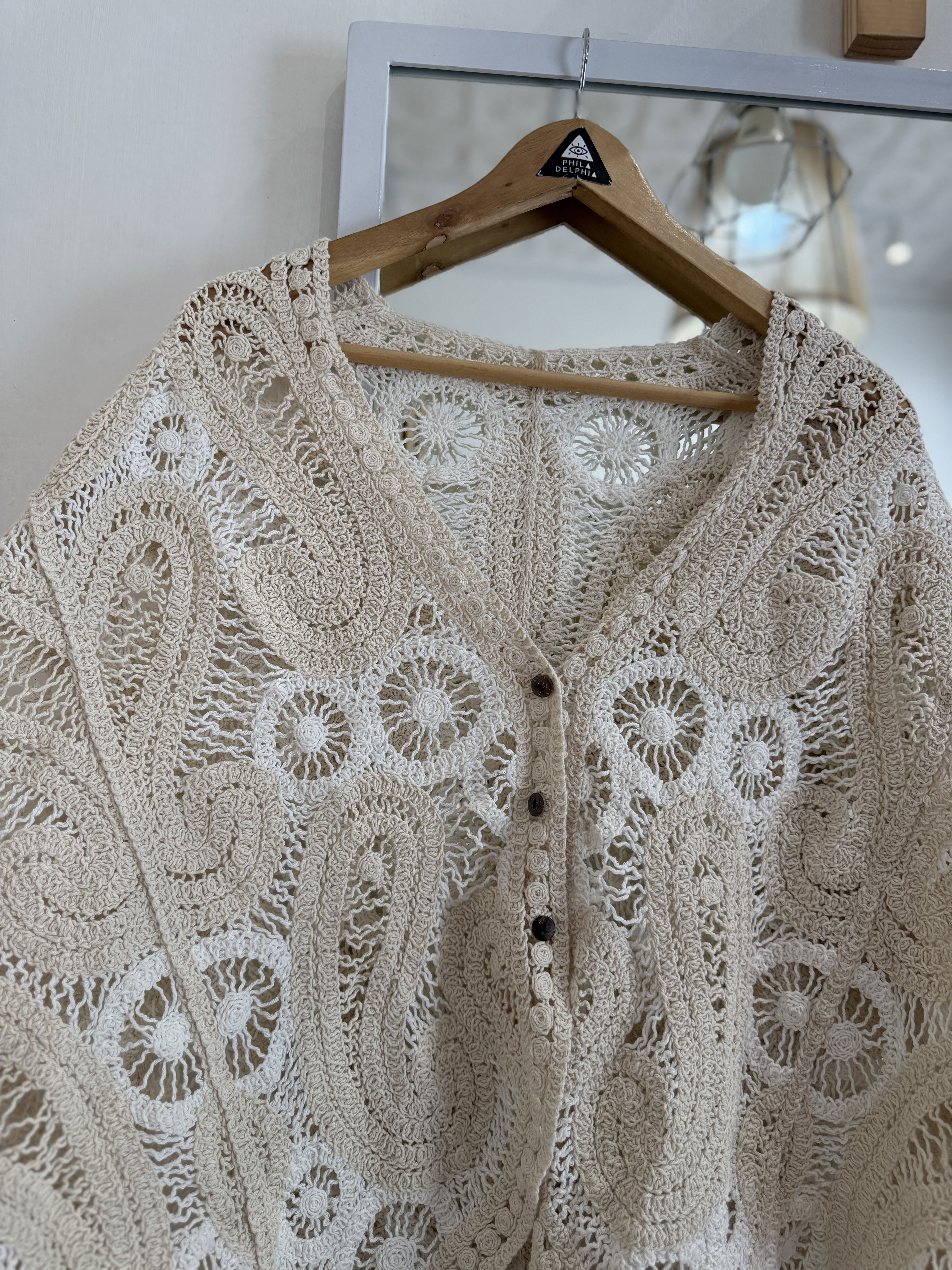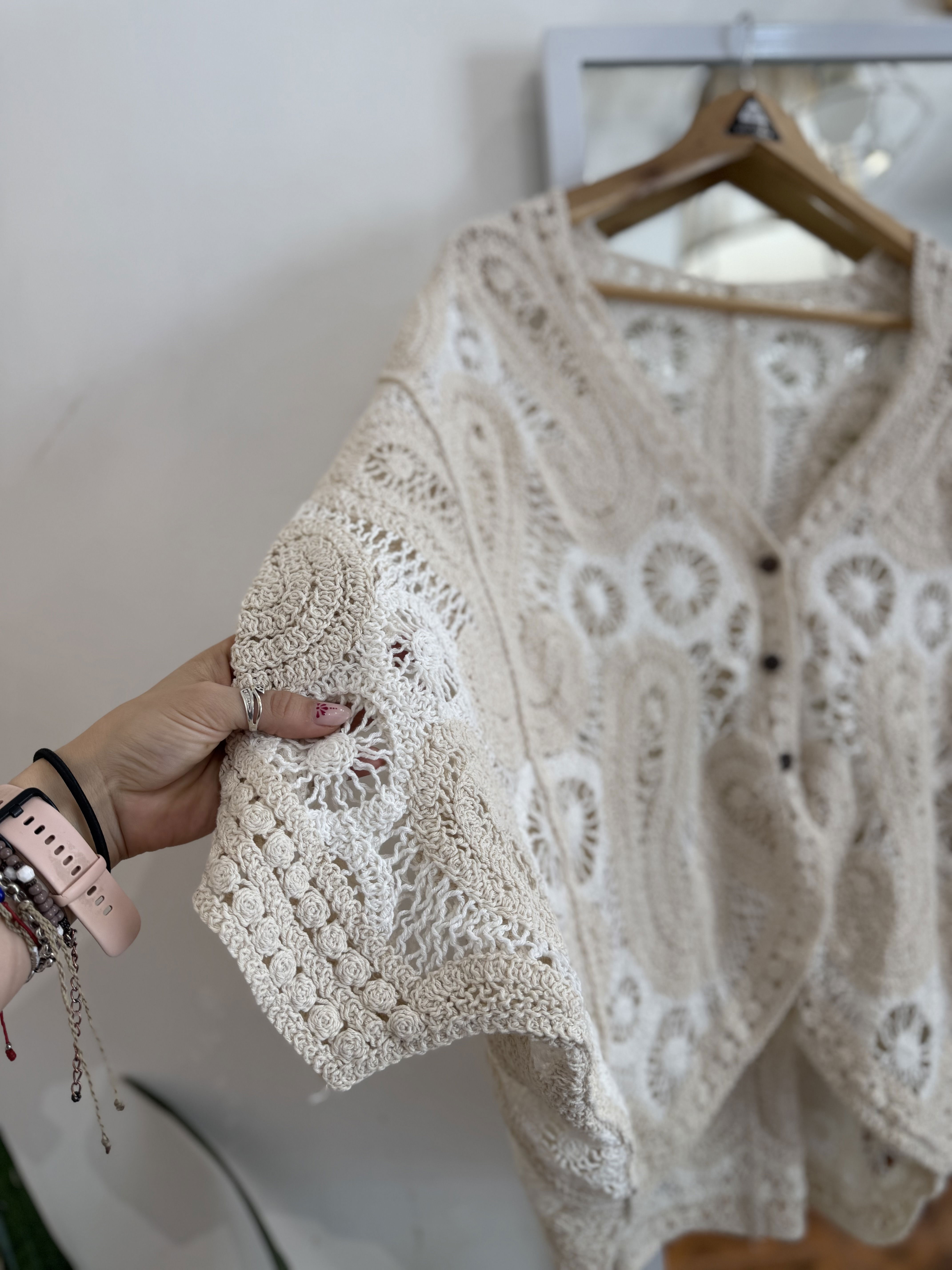 Hermoso modelo de capita a crochet tejido, con mangas tipo murcielágo, ideal para ponerle ese toque romantico a un look básico.