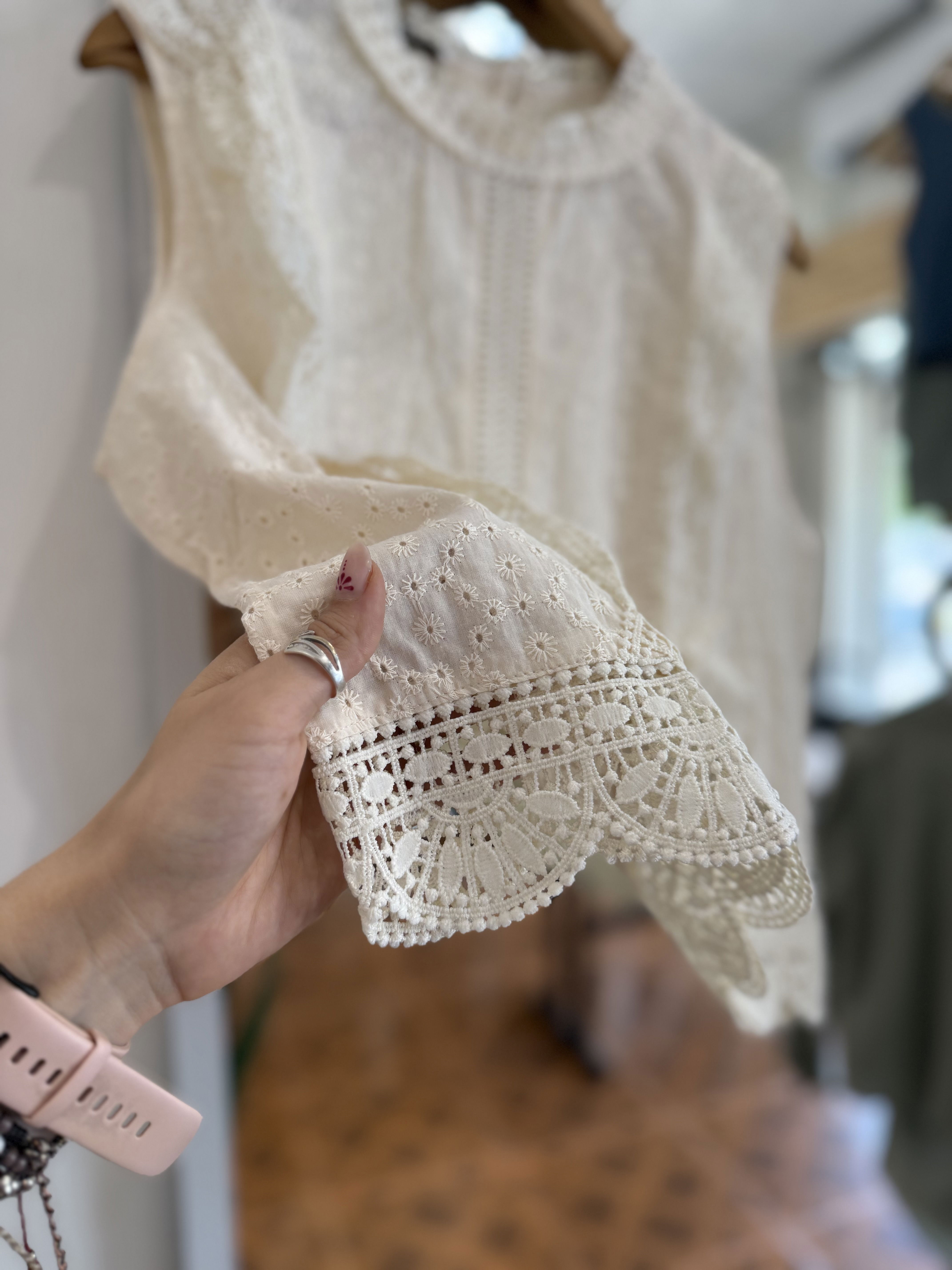 Hermosa blusa de broderie, romantica con detalles de broderie mega delicados.