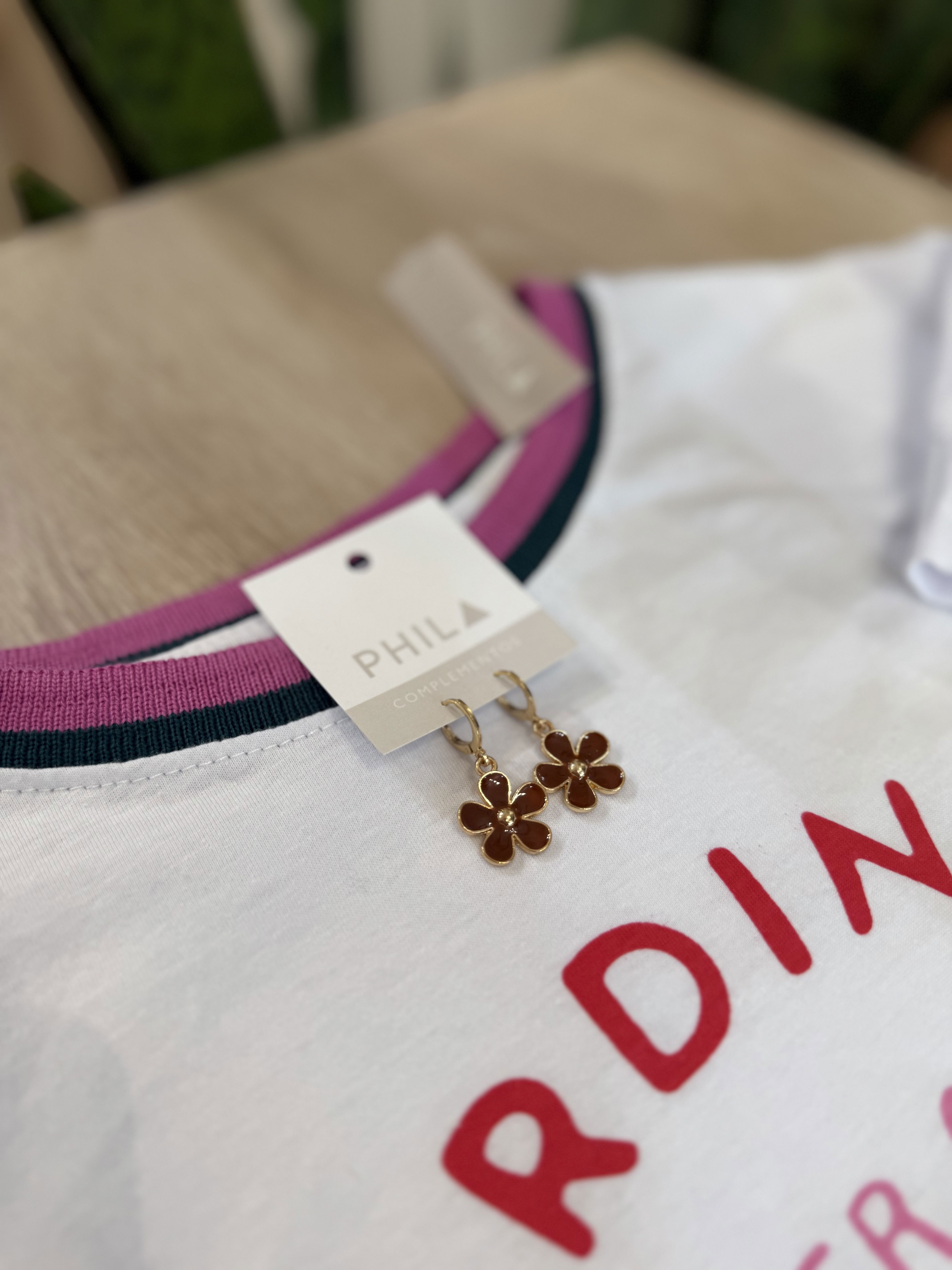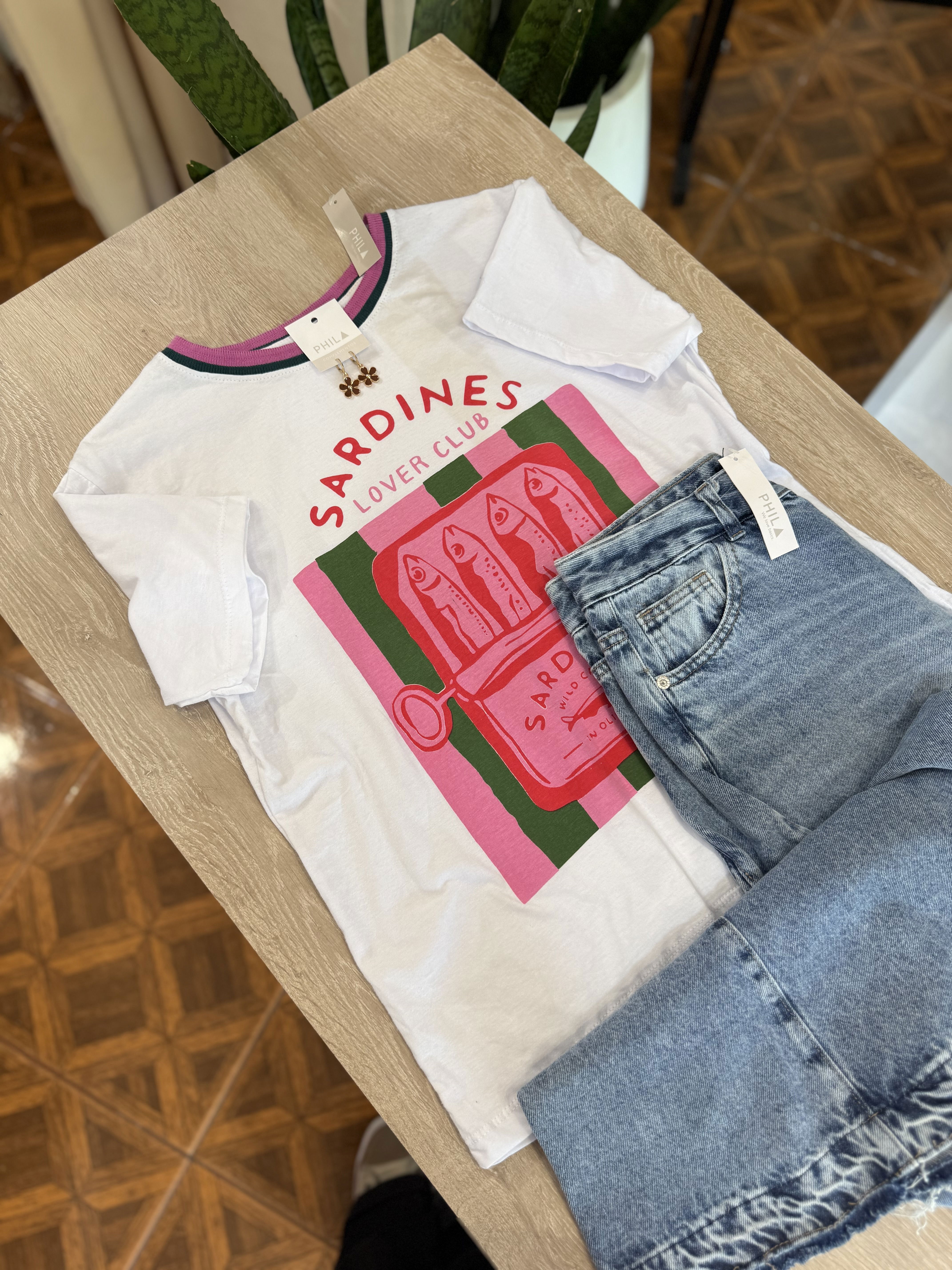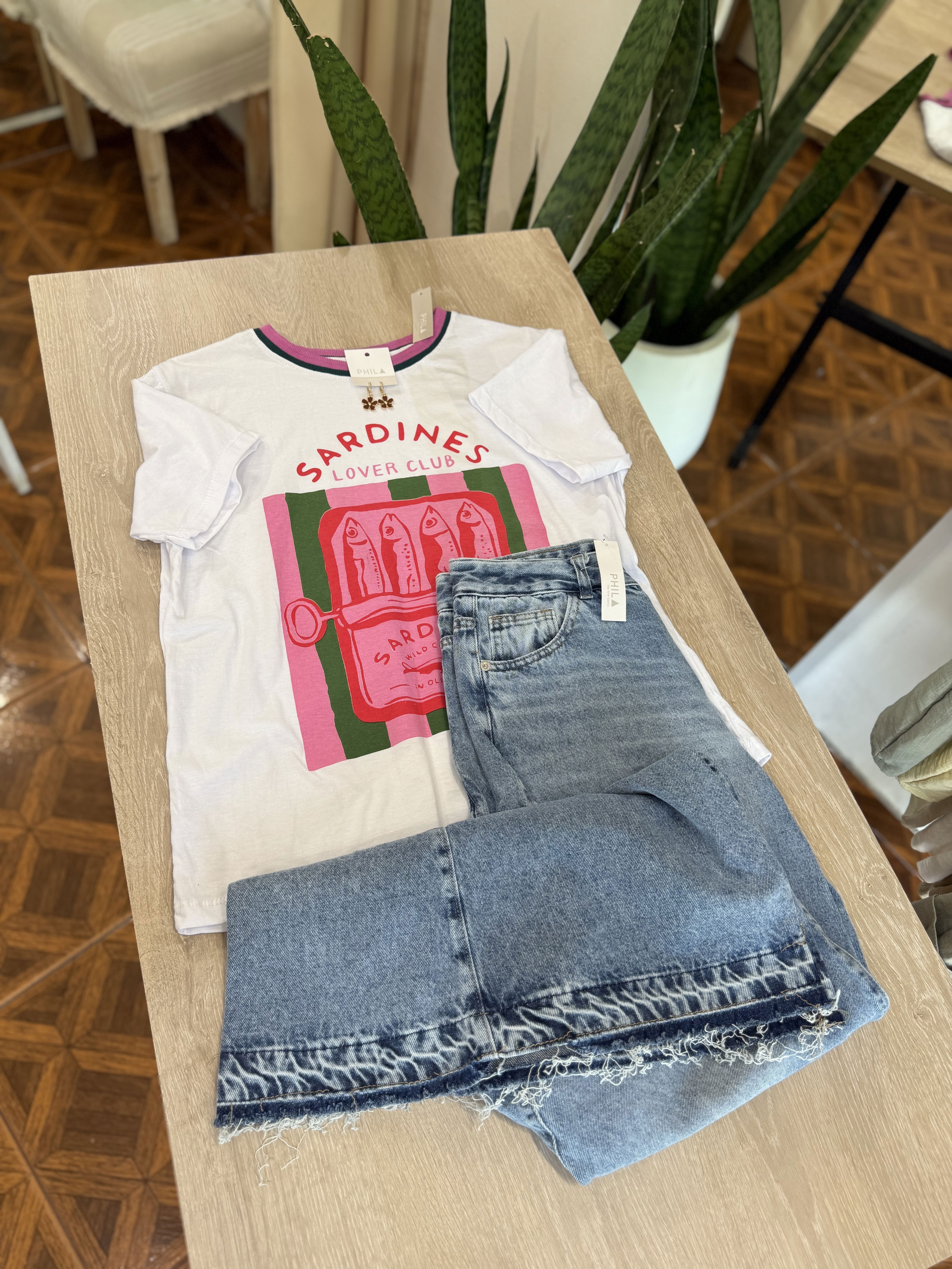 Remera de algodón con estampa al frente, y cuello combinado, divinas !