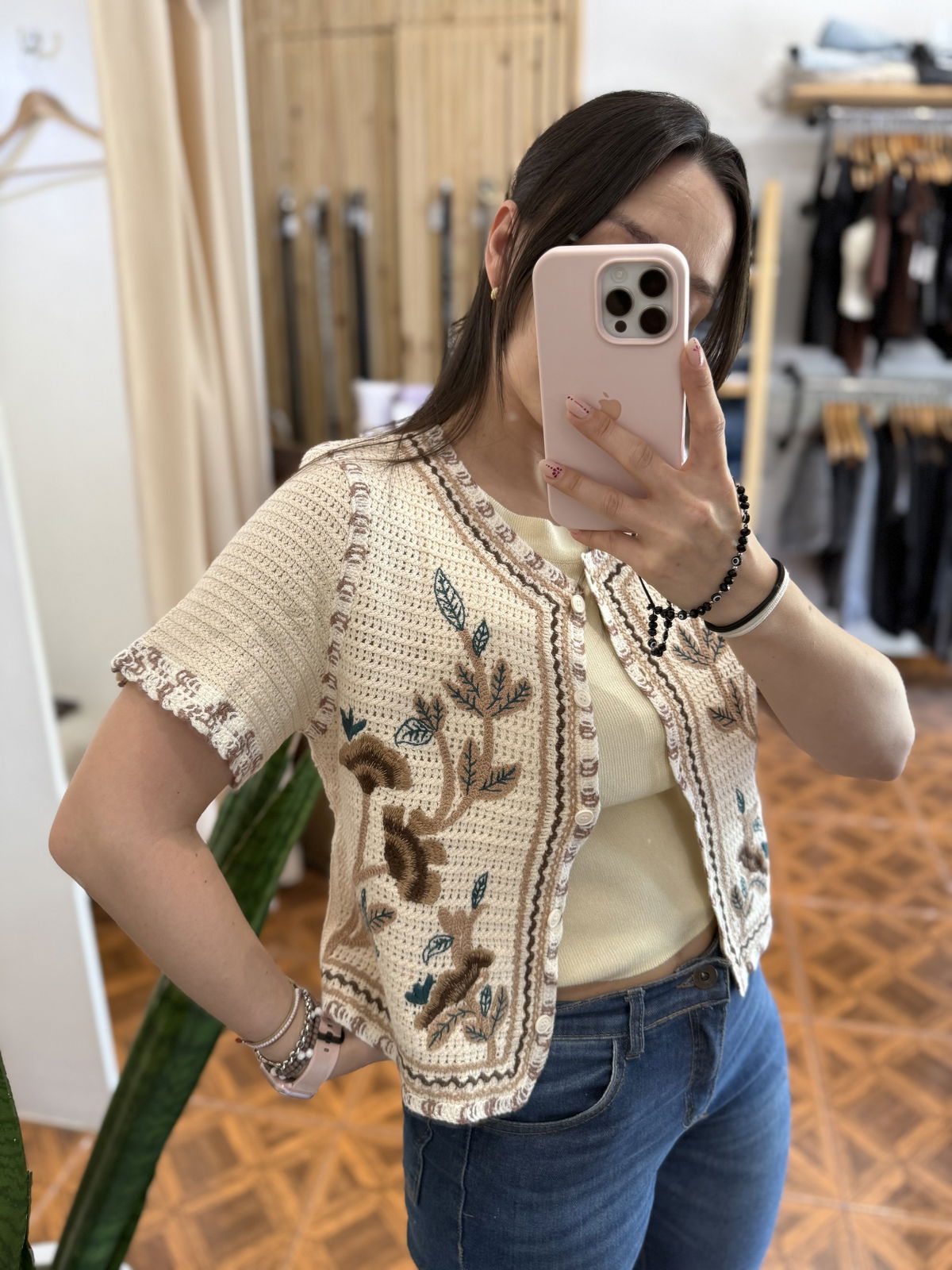Hermoso chalequito tejido, con botones. Podes usarlo abierto o cerrado.