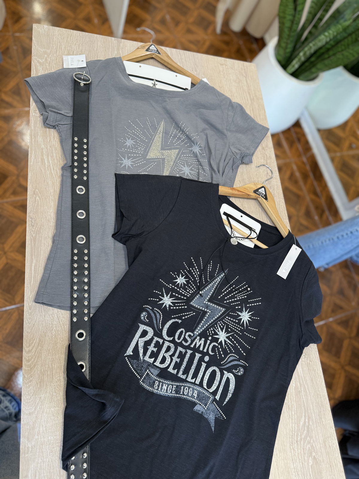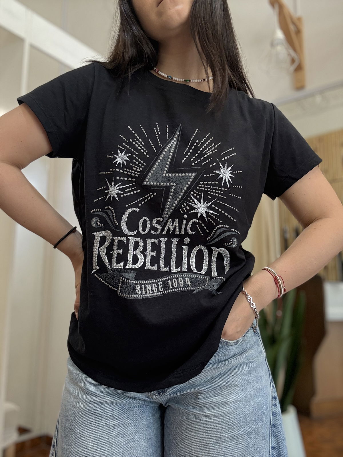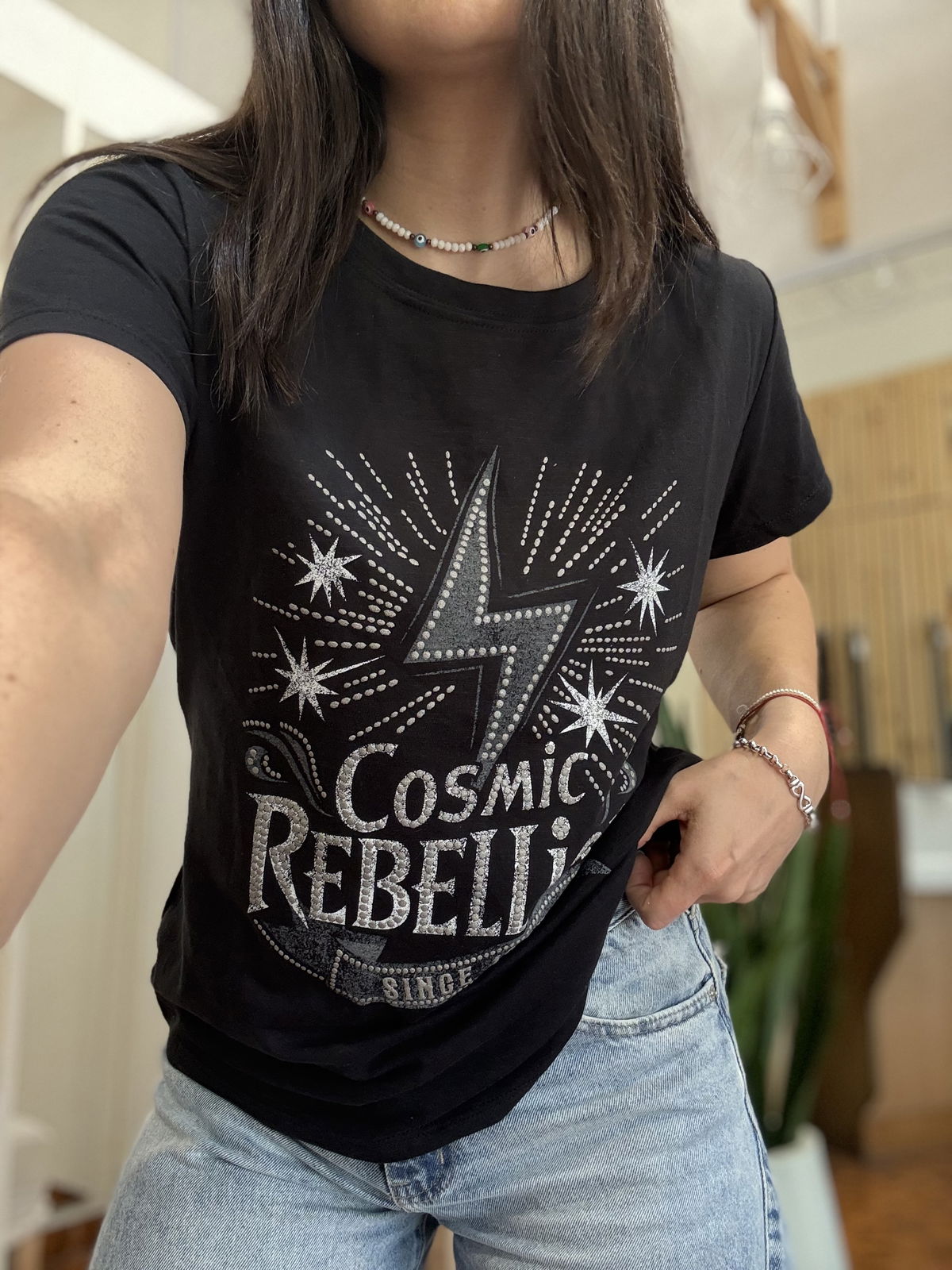 Hermosa reme con estampa al frente y unos detalles mega delicados en relieve y brillos.