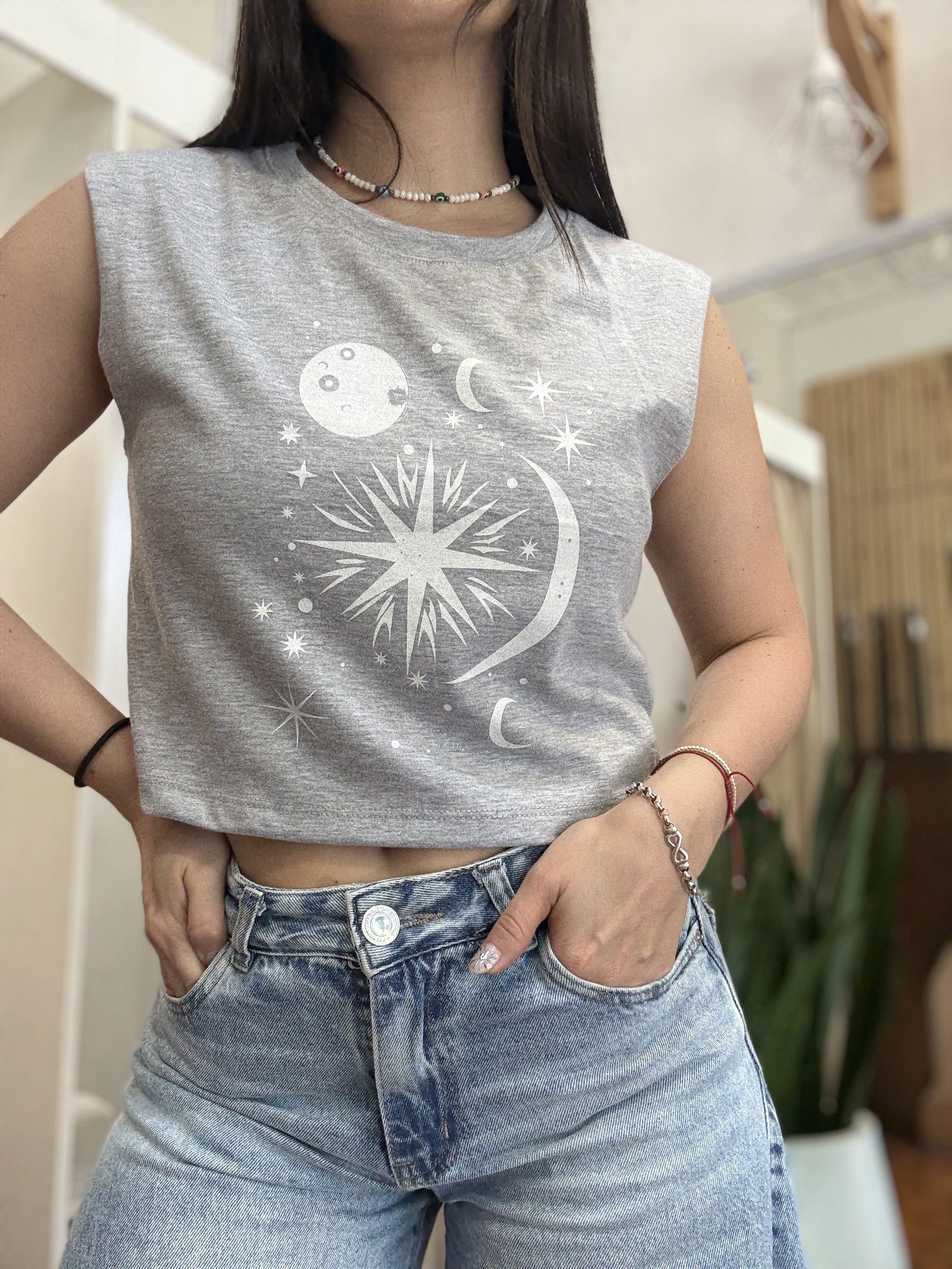 Muscu corte sudadera, talle unico, corte crop con estampa al frente.