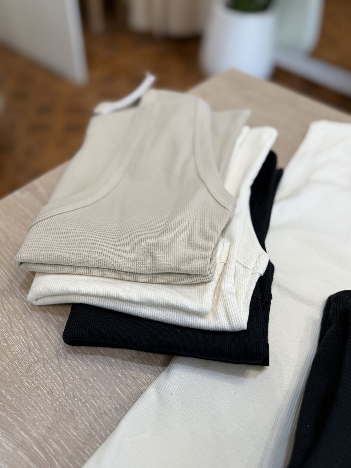Musculosas de morley con escote V, divinas! elastizadas