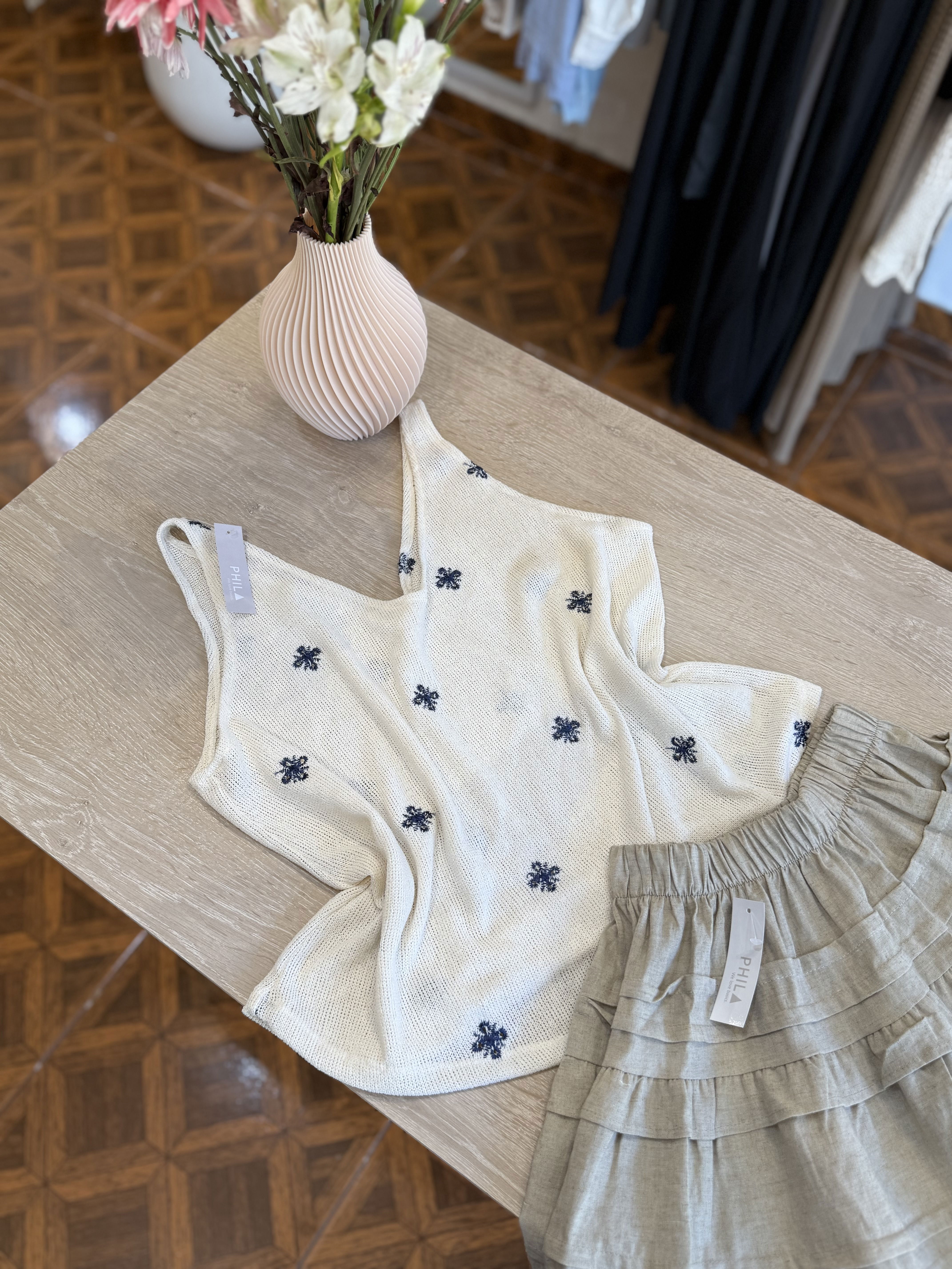 Hermosa musculosa tejida con bordadito de florcita mega delicada