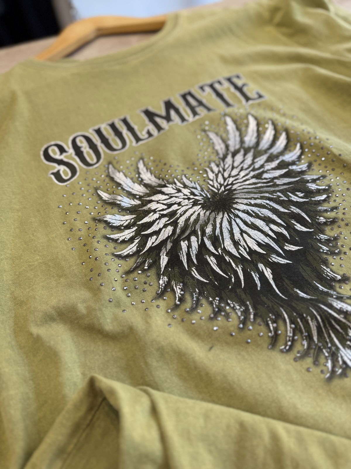 Hermosa reme batik con estampa al frente y unos detalles mega delicados en relieve y brillos.