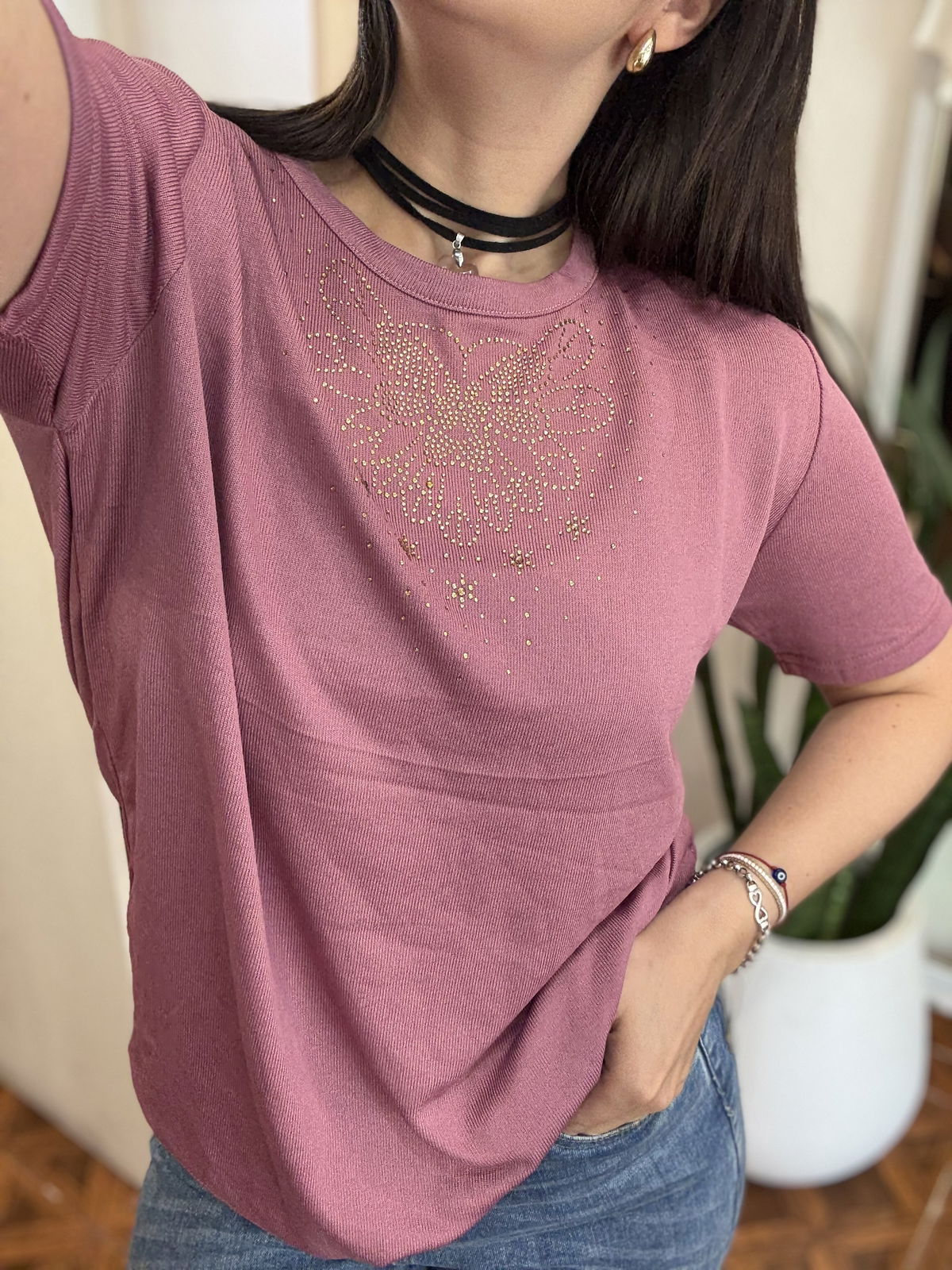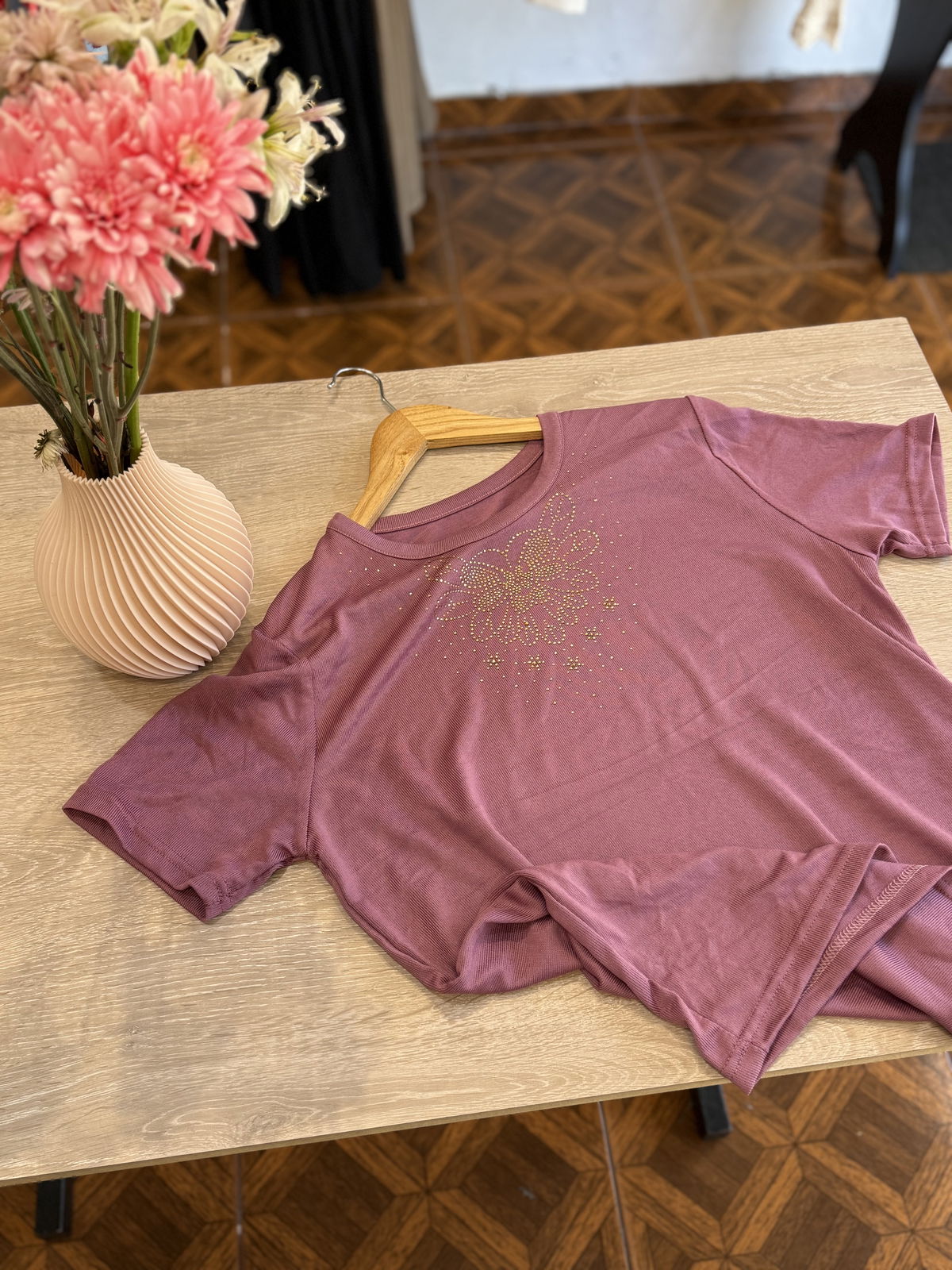Remerita de crep elastizado hermoso y detalles de diseño con estrás al frente.