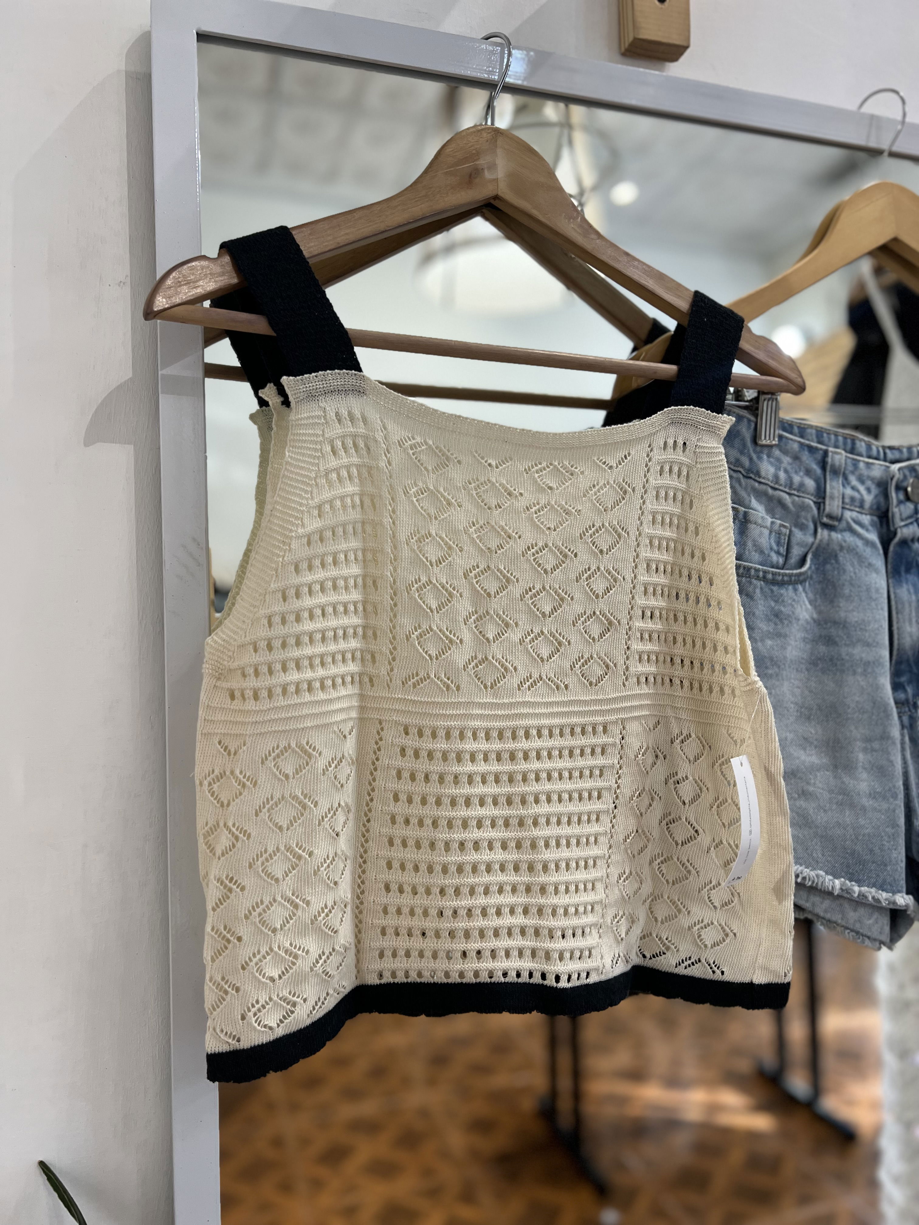 Muscu de hilo liviano, divina para la temporada de verano. Con las tiras combinadas en color negro, una divinura!
