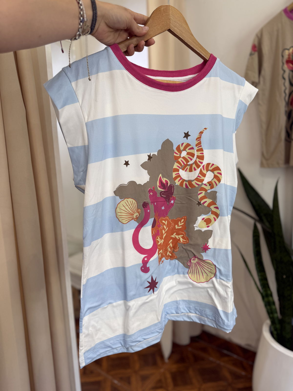 Muscu de modal soft premium con estampa al frente, y cuello combinado, divinas !