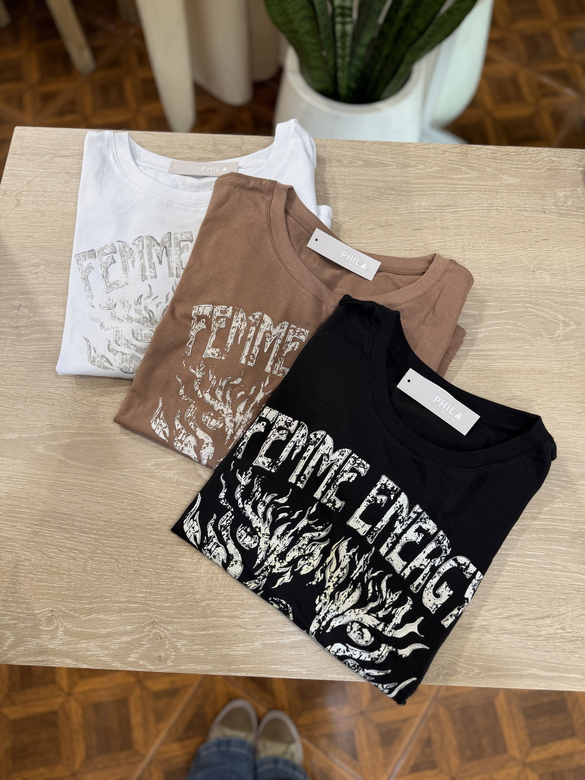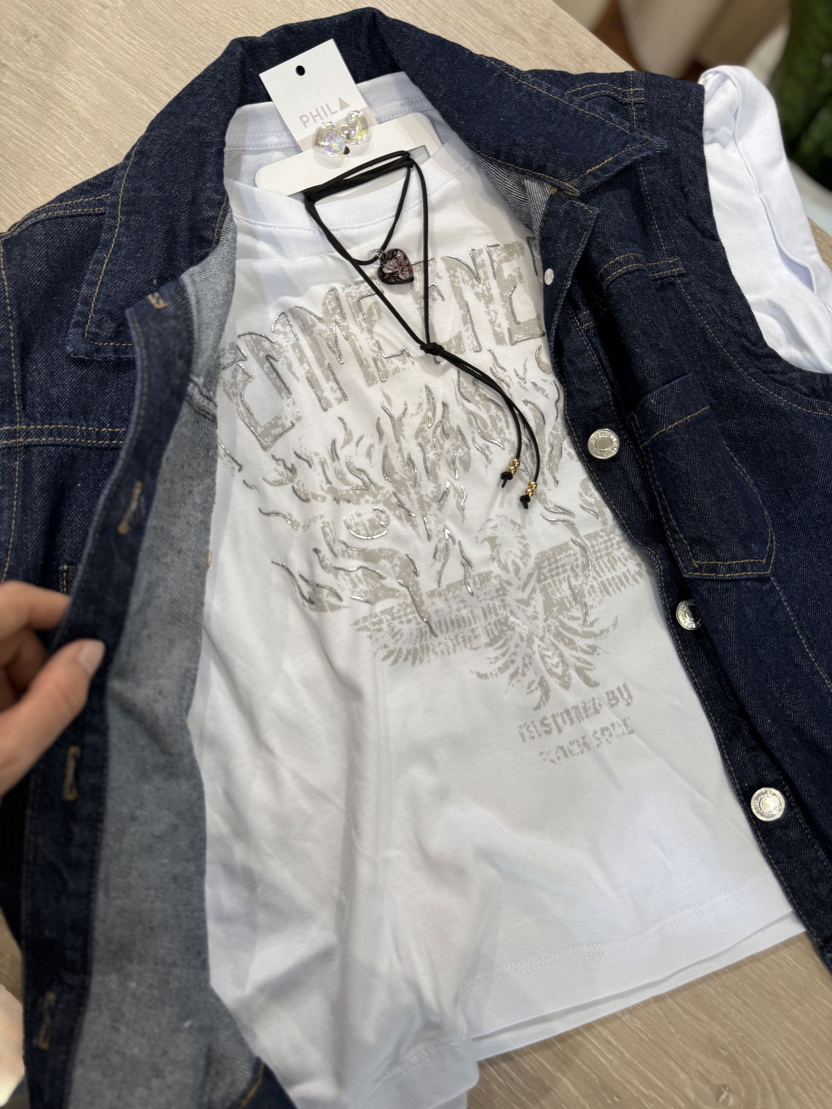 Hermosa Muscu de algodon con estampa al frente y detalles en plateado.