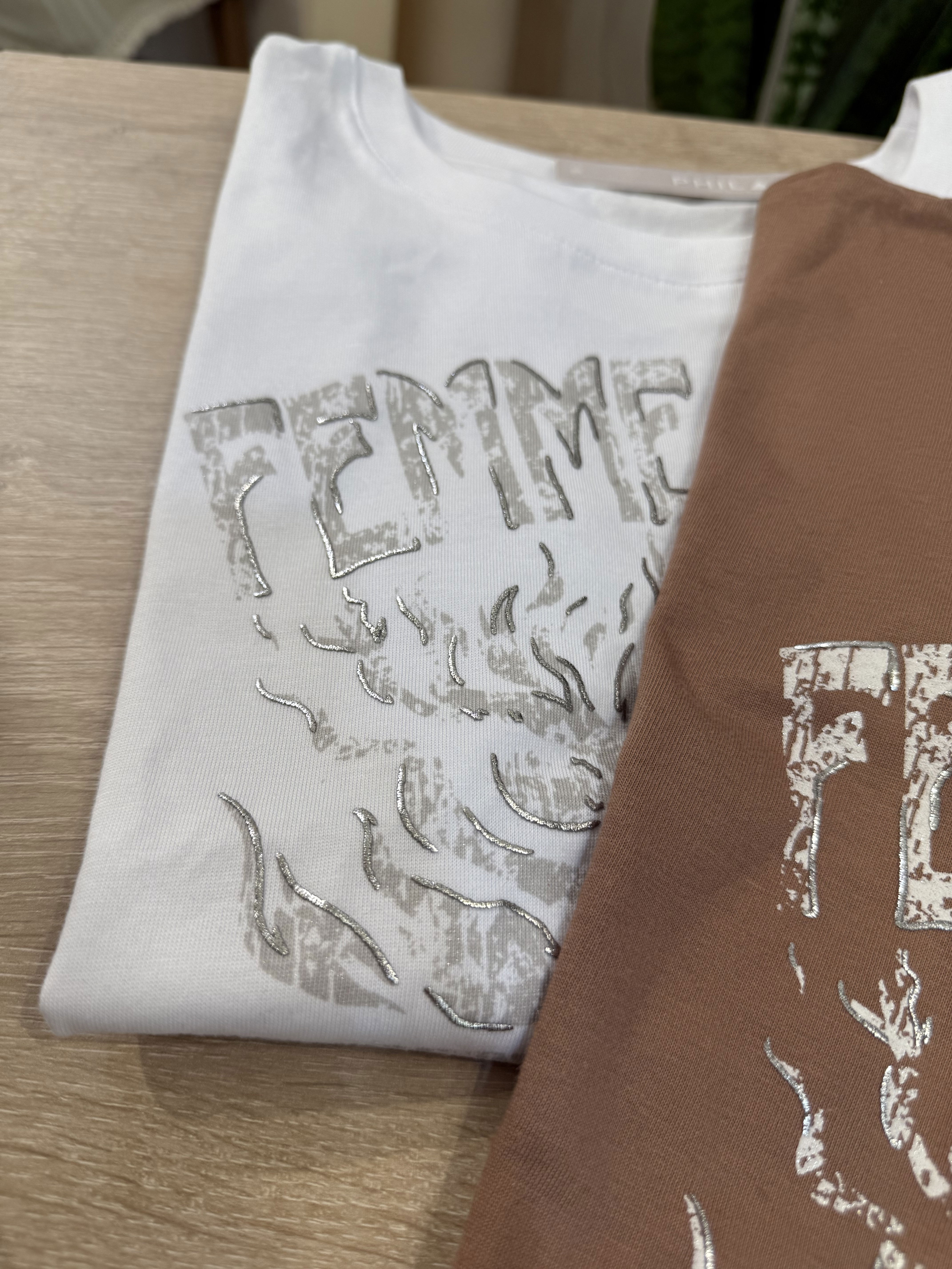 Hermosa Muscu de algodon con estampa al frente y detalles en plateado.