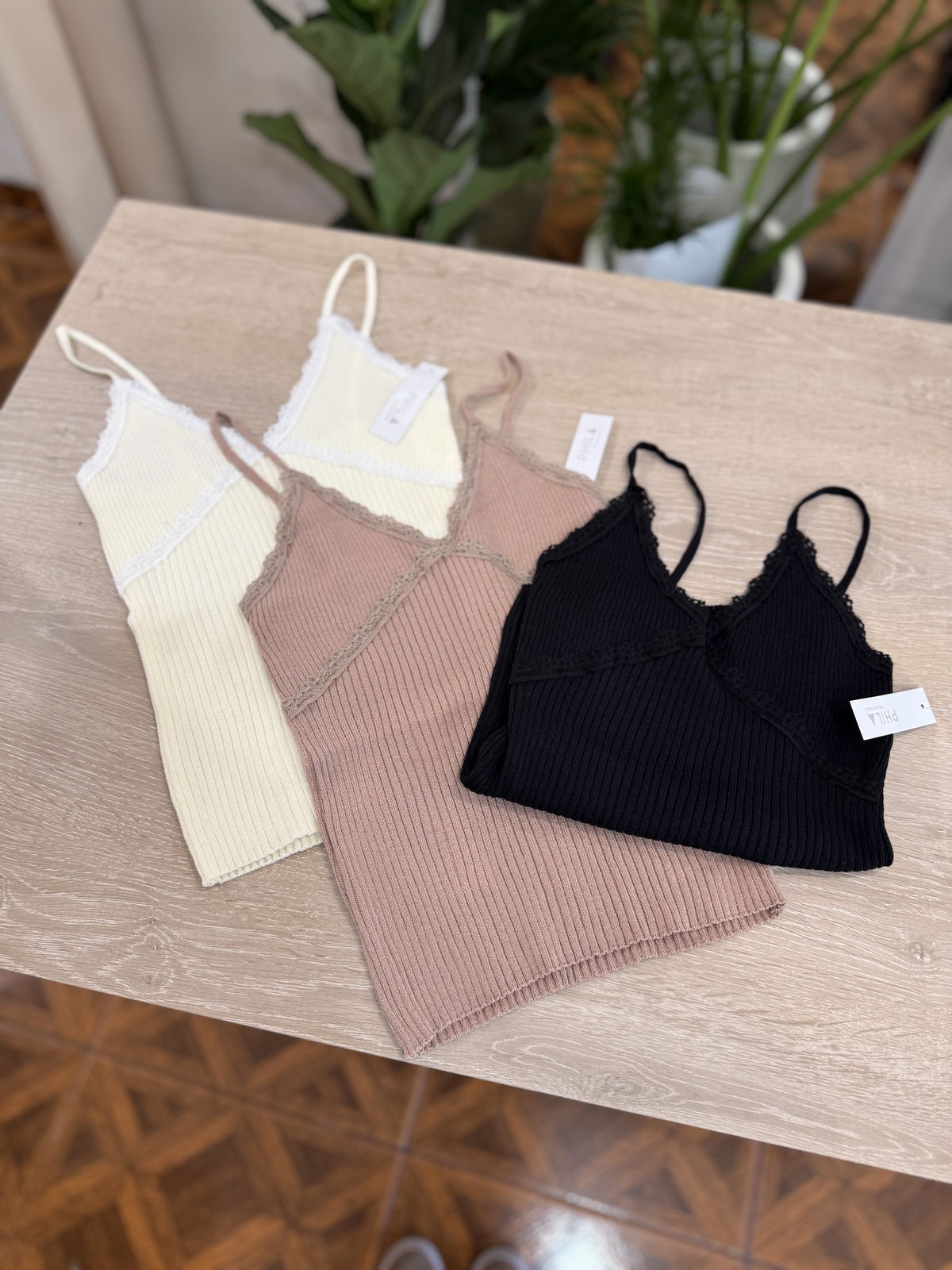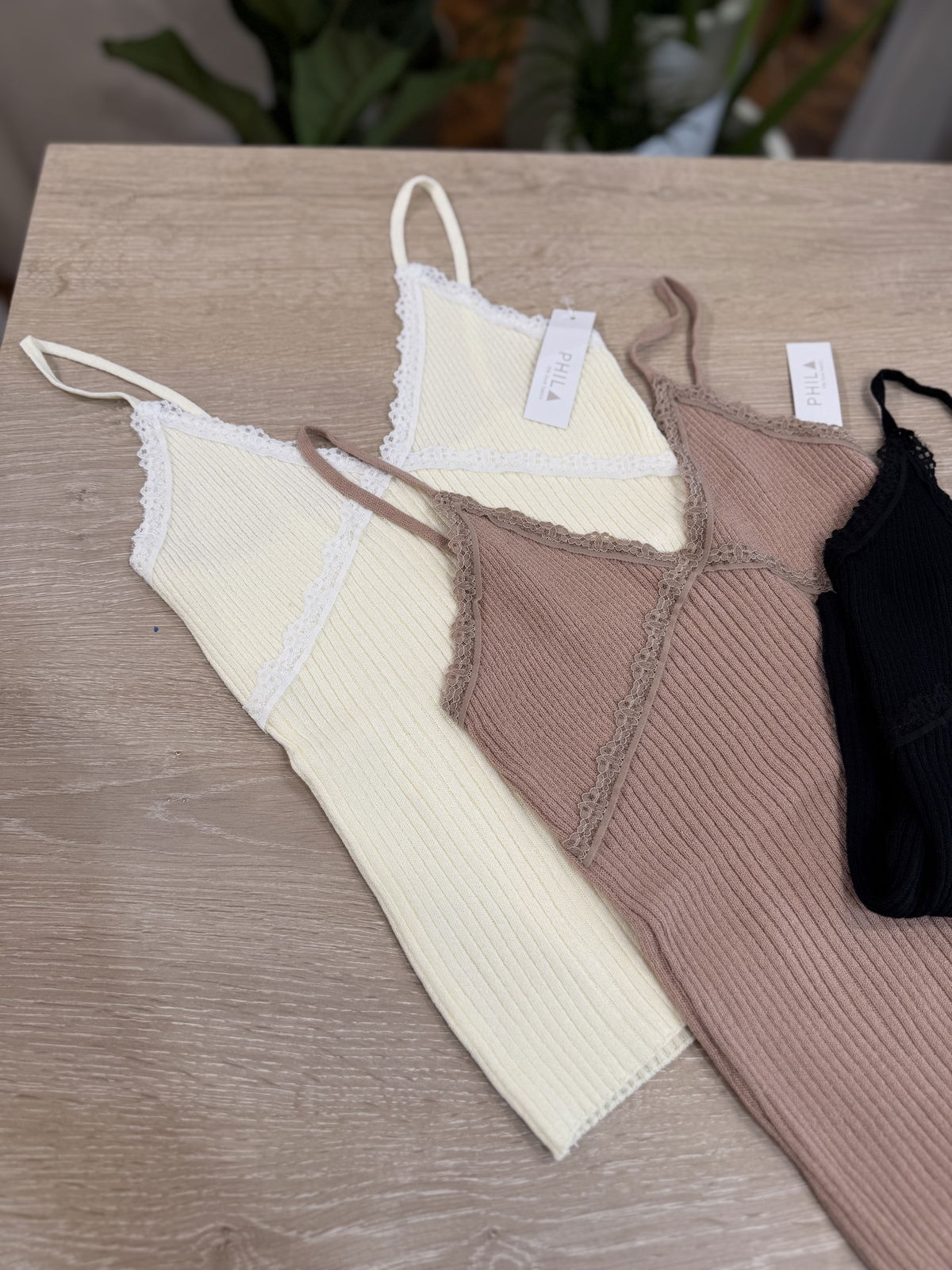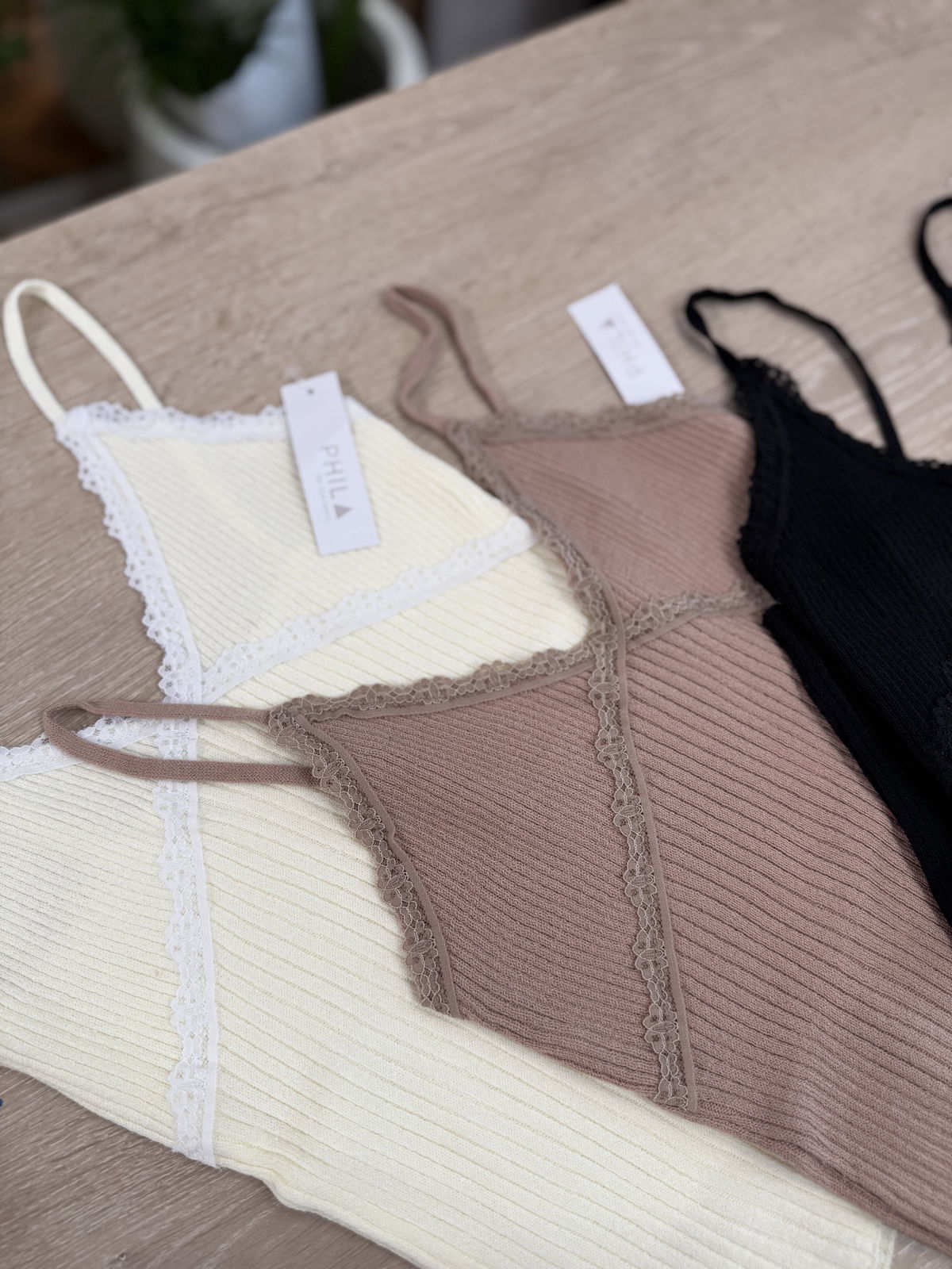 Remerita de hilo con detalles lenceros. Al cuerpo.
