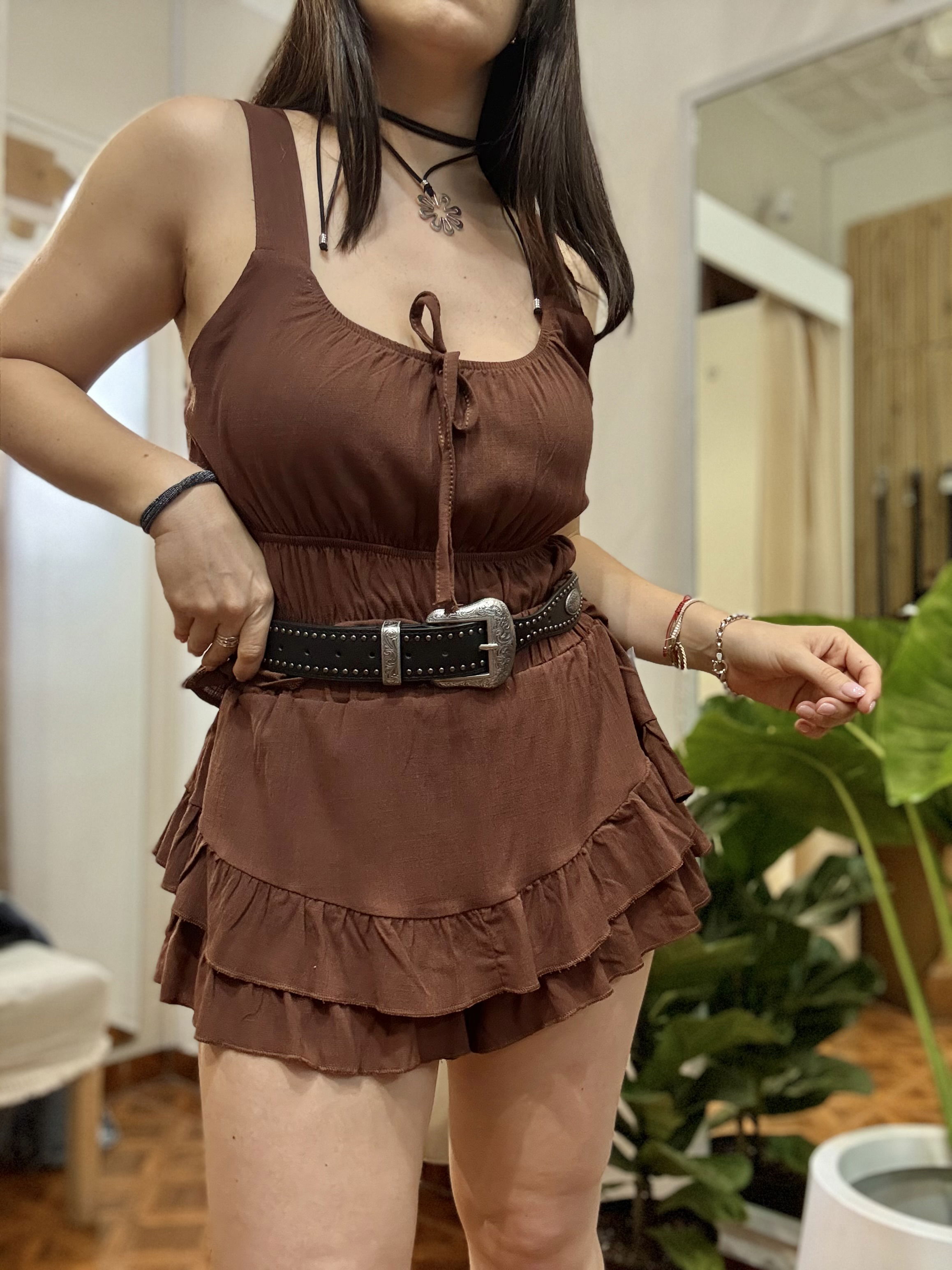 Hermoso conjunto de lino, Muscu + Pollera short de lino con volados y elastico en cintura. SOÑADO!