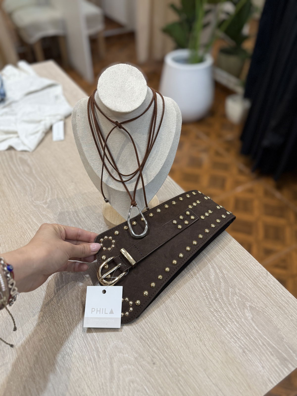 hermoso modelo con elastico , que lo hace ideal. Detalles en tachas color dorado.