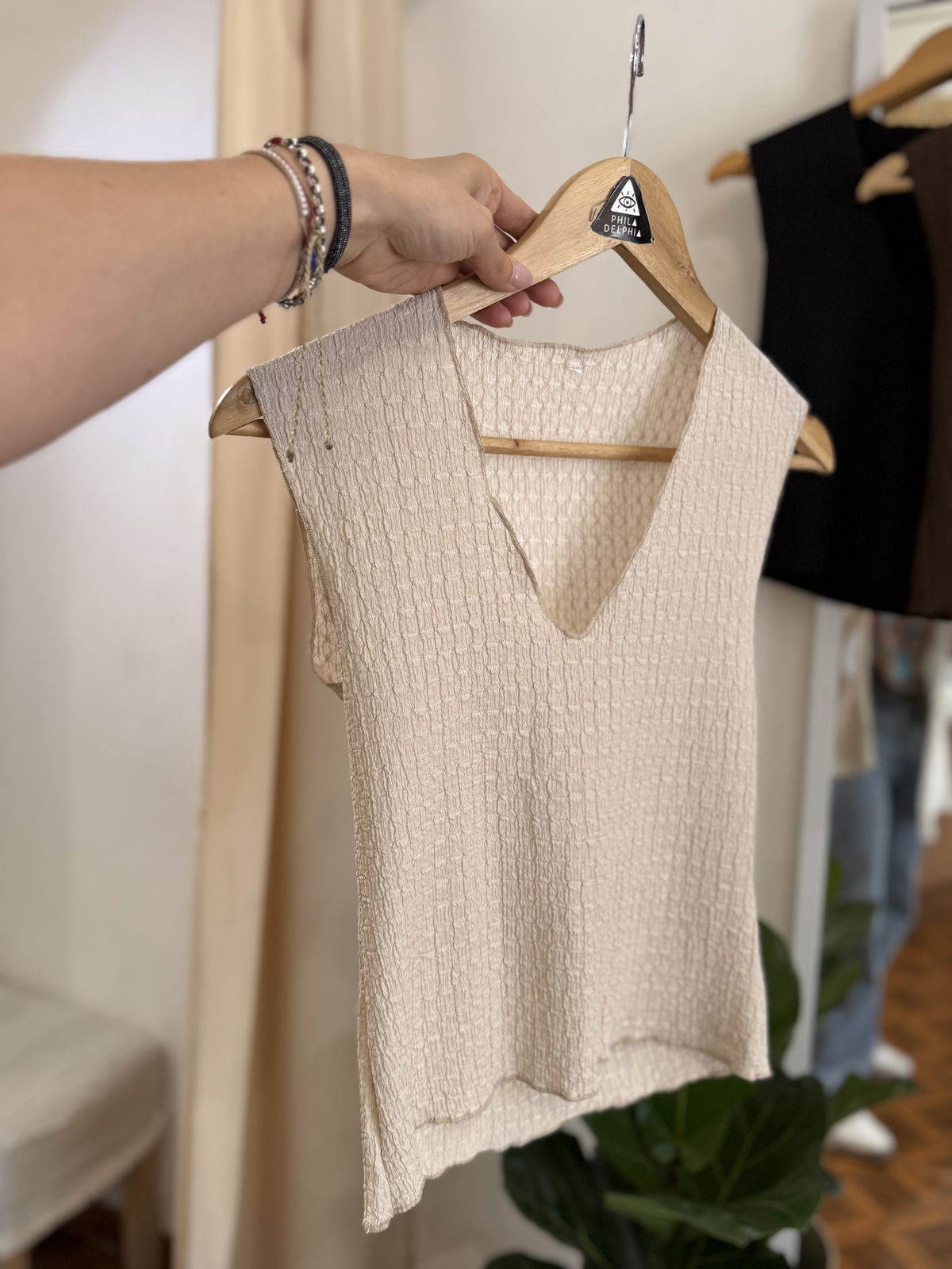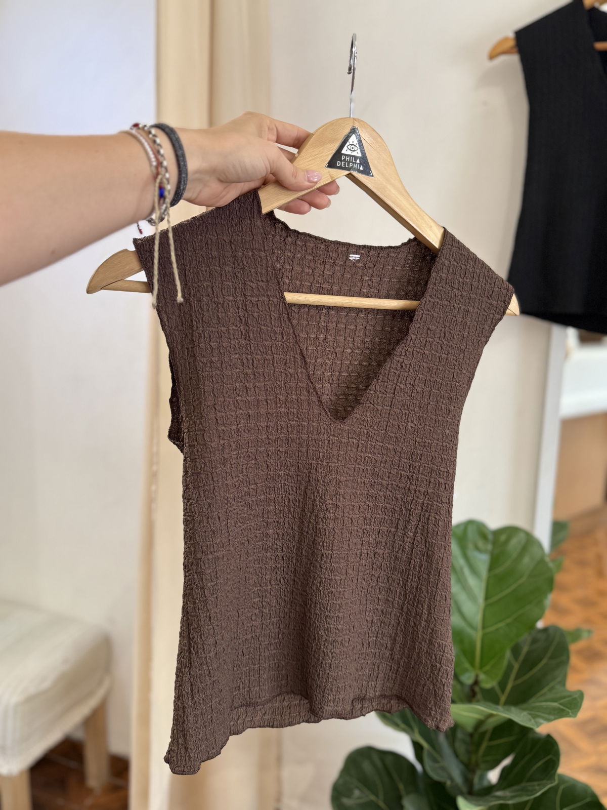 Musculosa texturada con Escote V, divina y mega liviana.