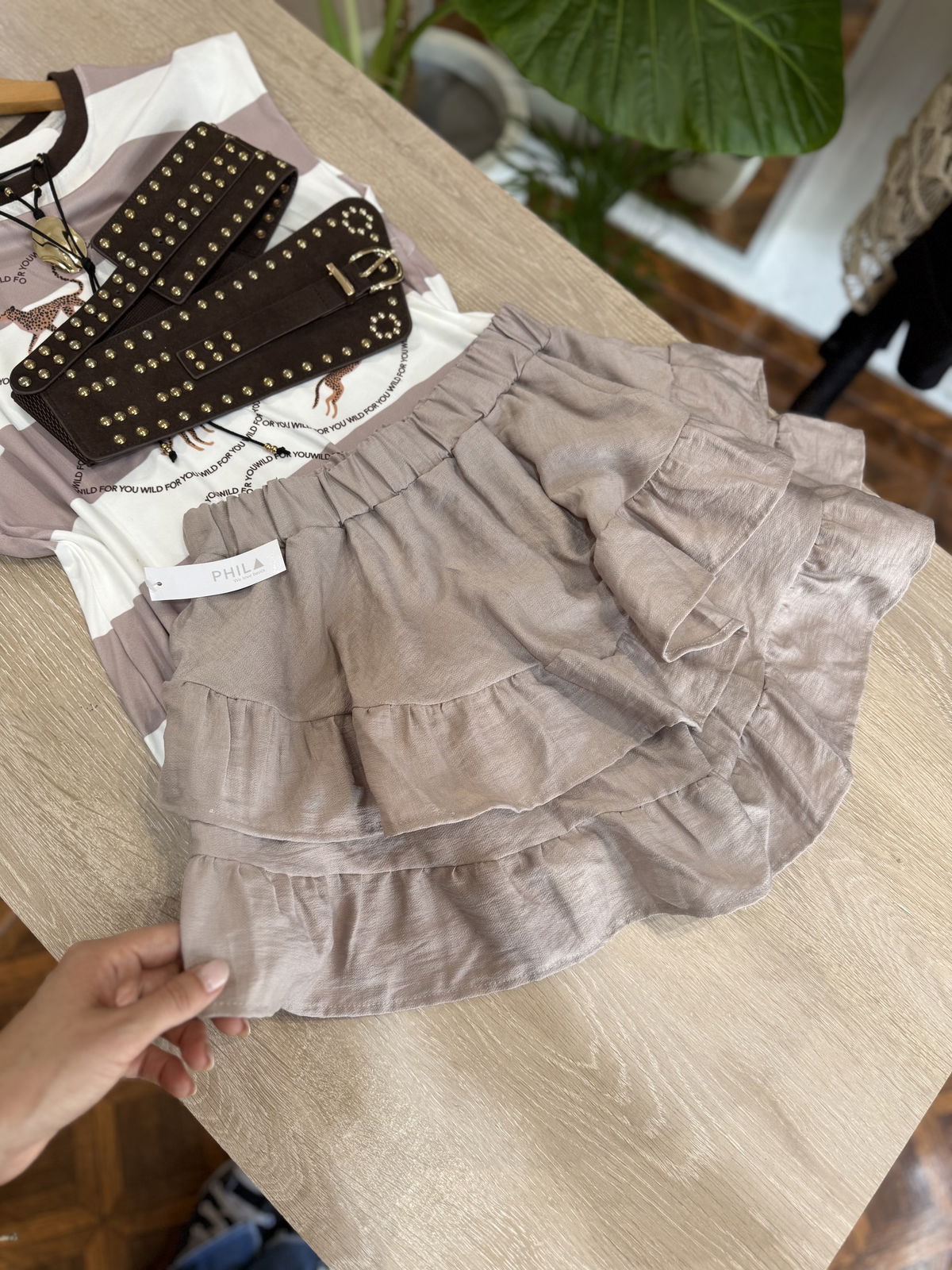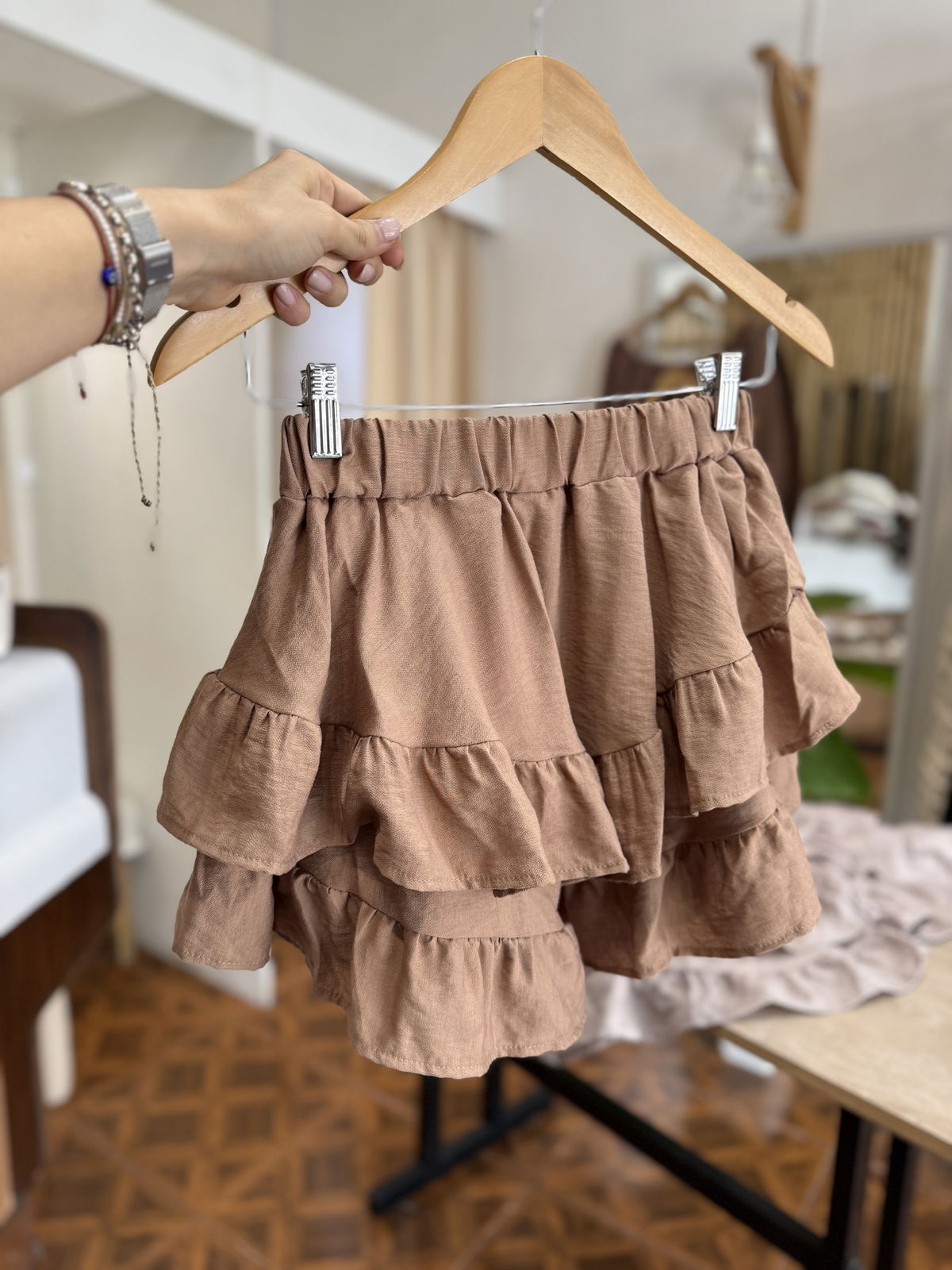 Hermoso modelo de POLLERA SHORT de Lino, con volados y elastico en la cintura.