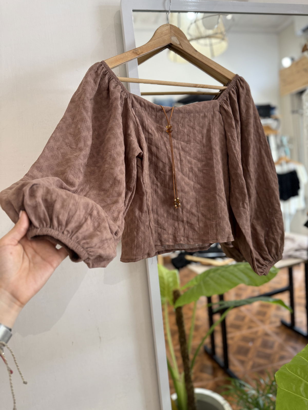 Blusa con corte romantico, manguita globo y elastico en las muñecas, corte cuadrado