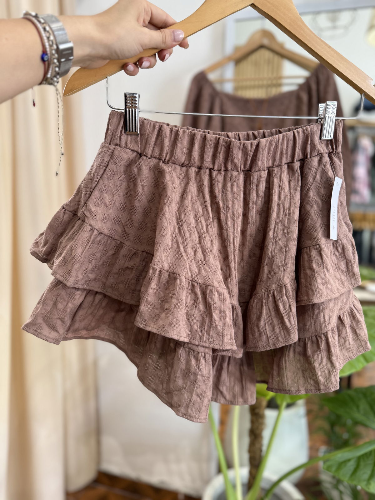 Skort - pollera short - DE LINO texturado con elastico en la cintura.
