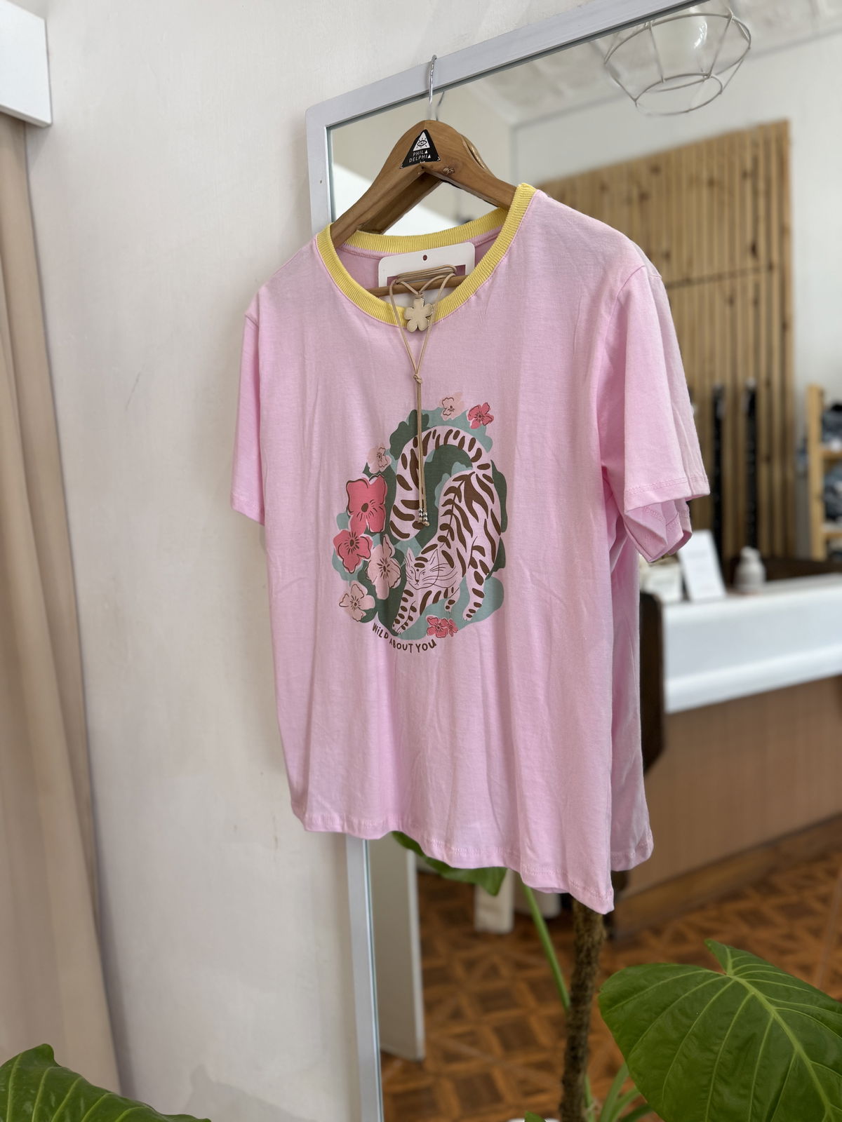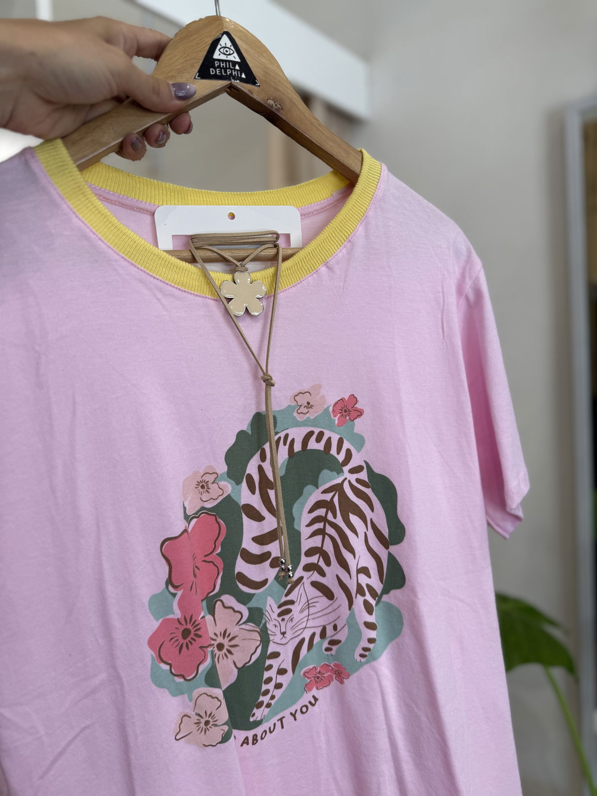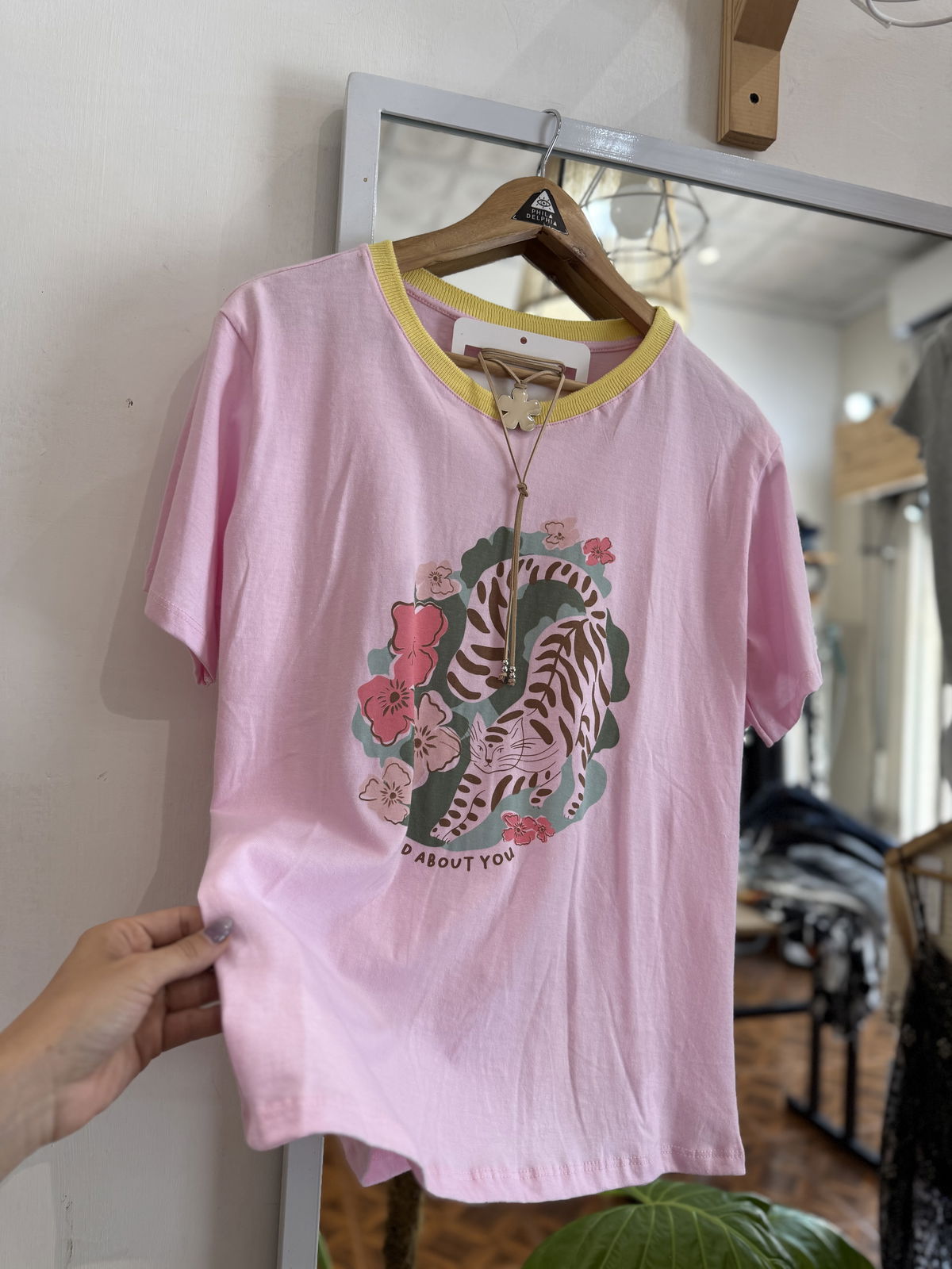 Remera de algodón estampa al frente, cuello combinado, divinas !