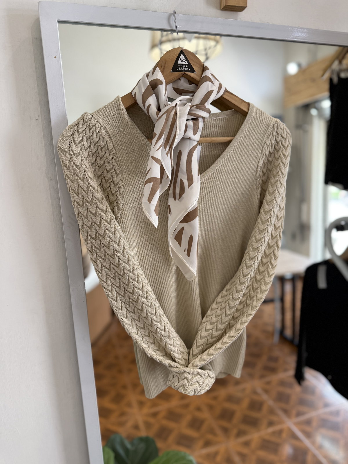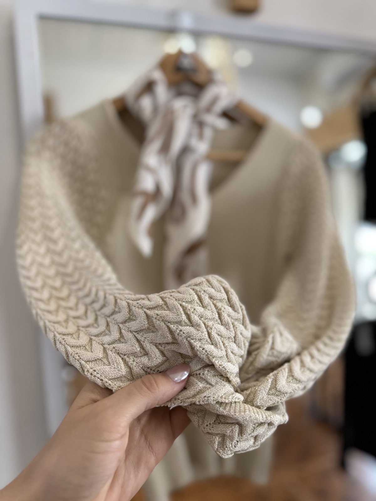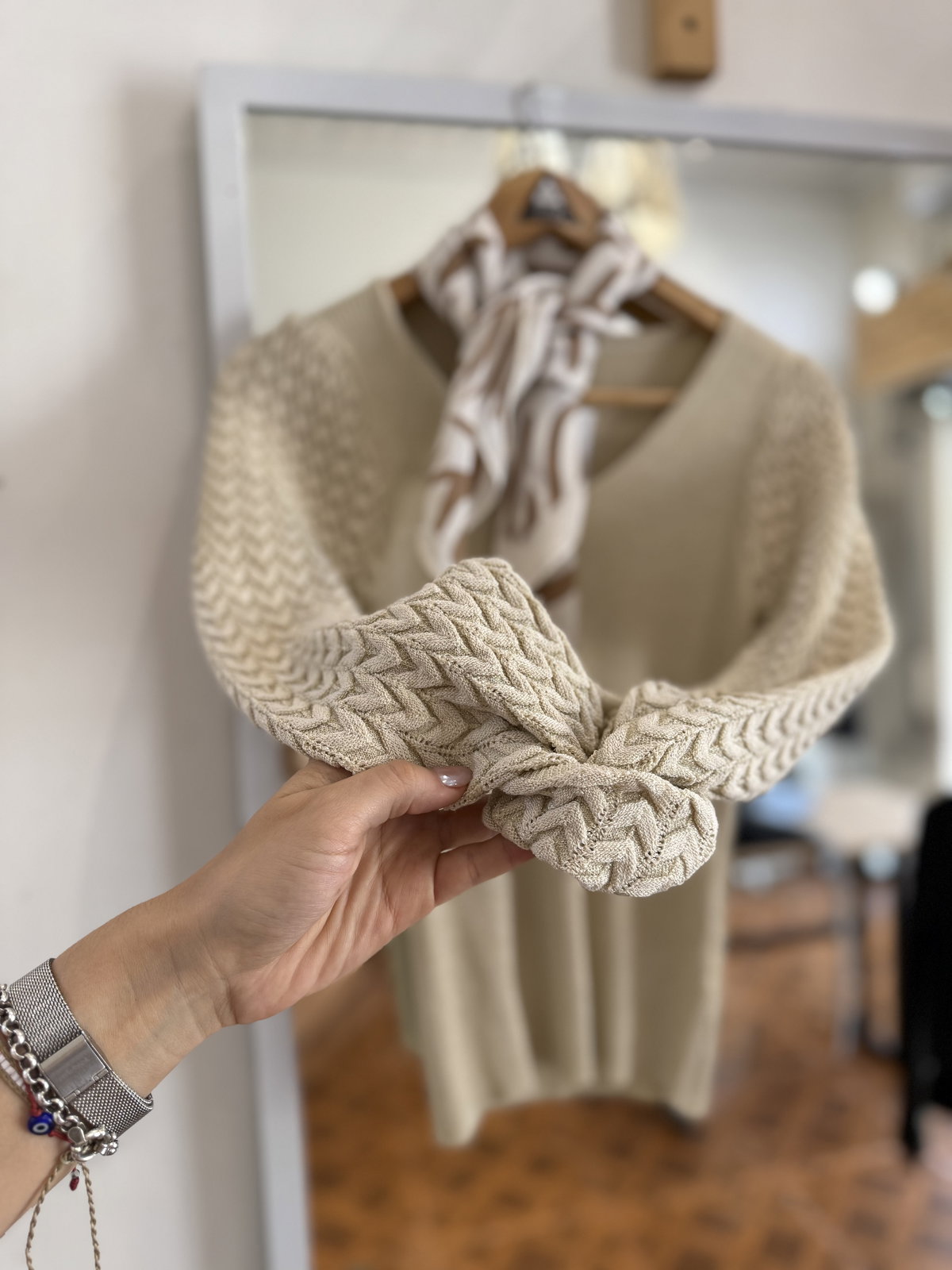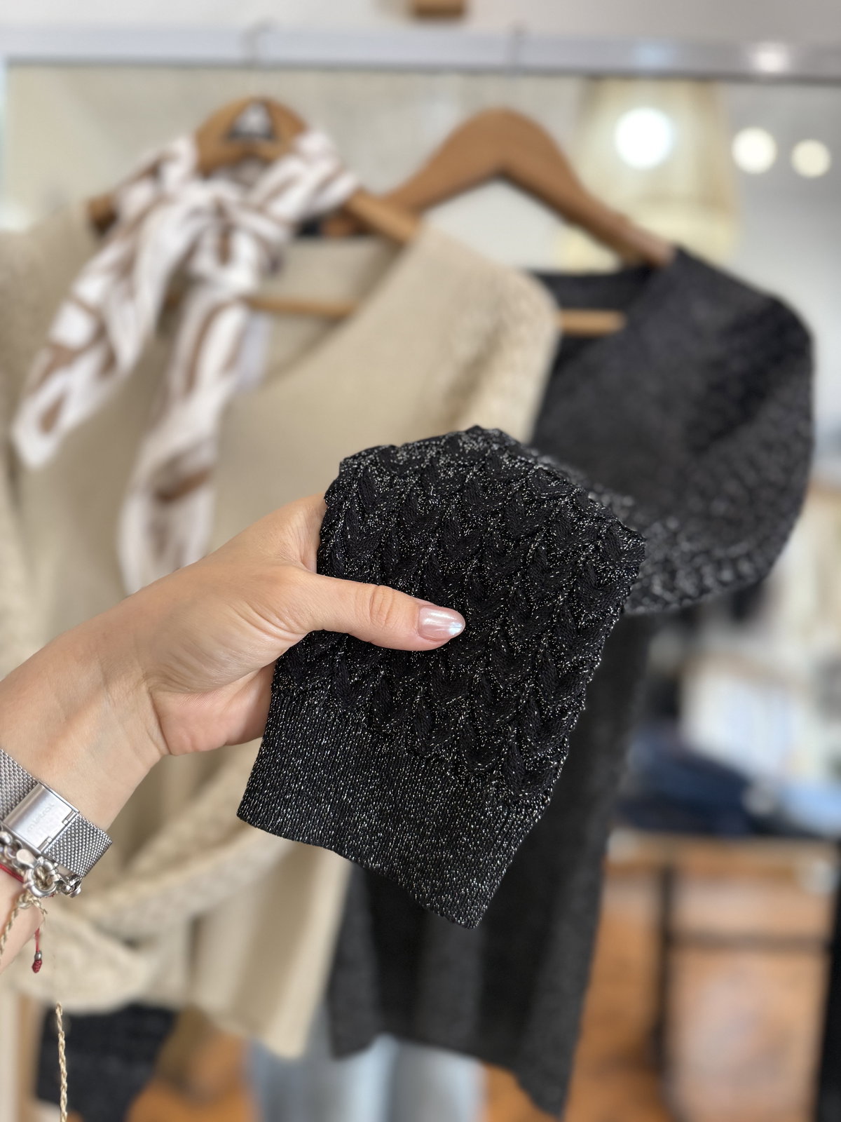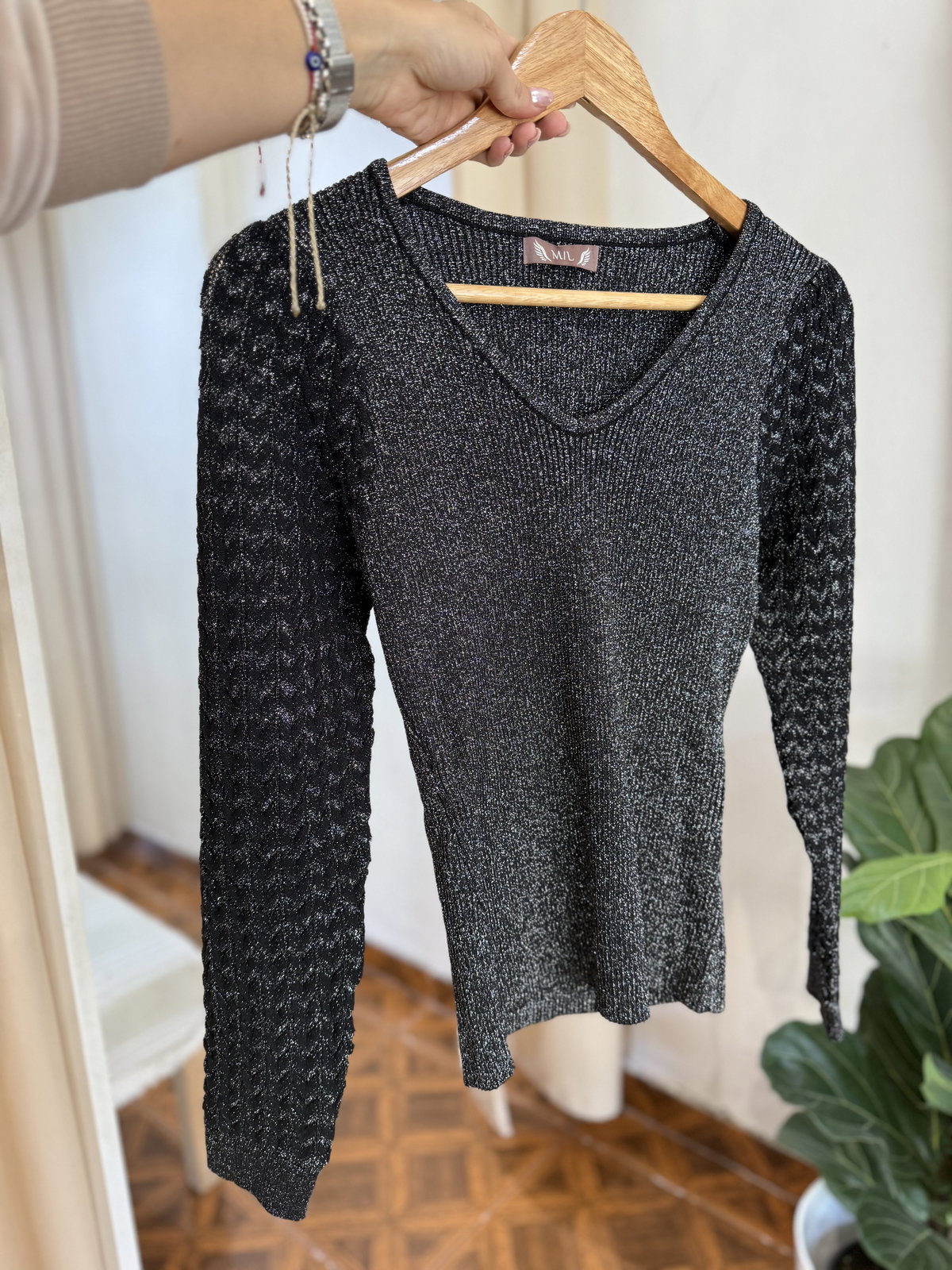 Sweater confeccionado en hilo lurex, calidad premium. Escote V.