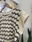 Hermoso modelo en manga corta rayada de hilo, con mangas con volado, combinacion en color natural y negro.